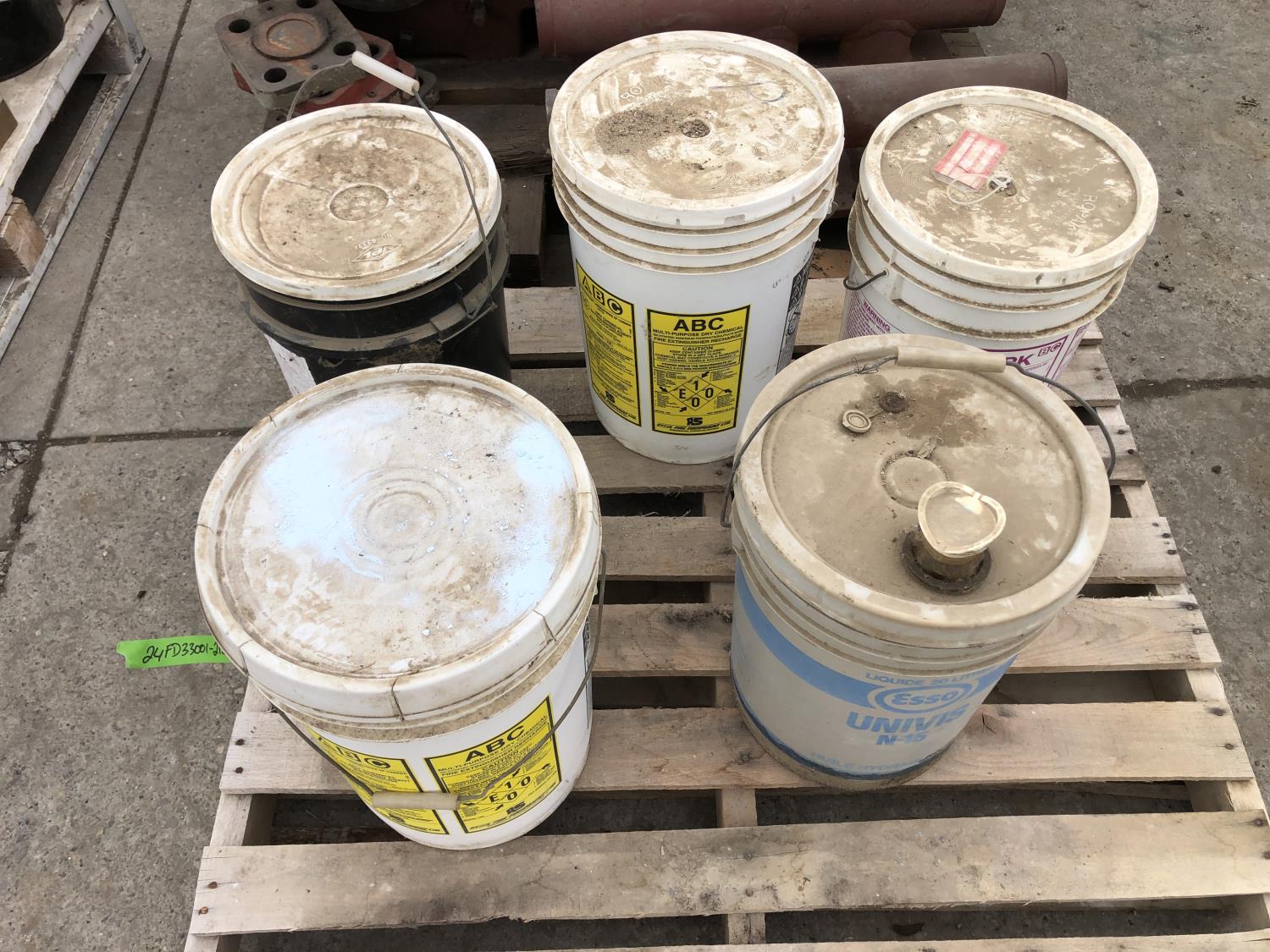 (2) 5 gallon pail of ABC Multi purpose dry chemical, (2) 5 gallon pails of Purpek dry chemical, (1) part pail of Univis N15
