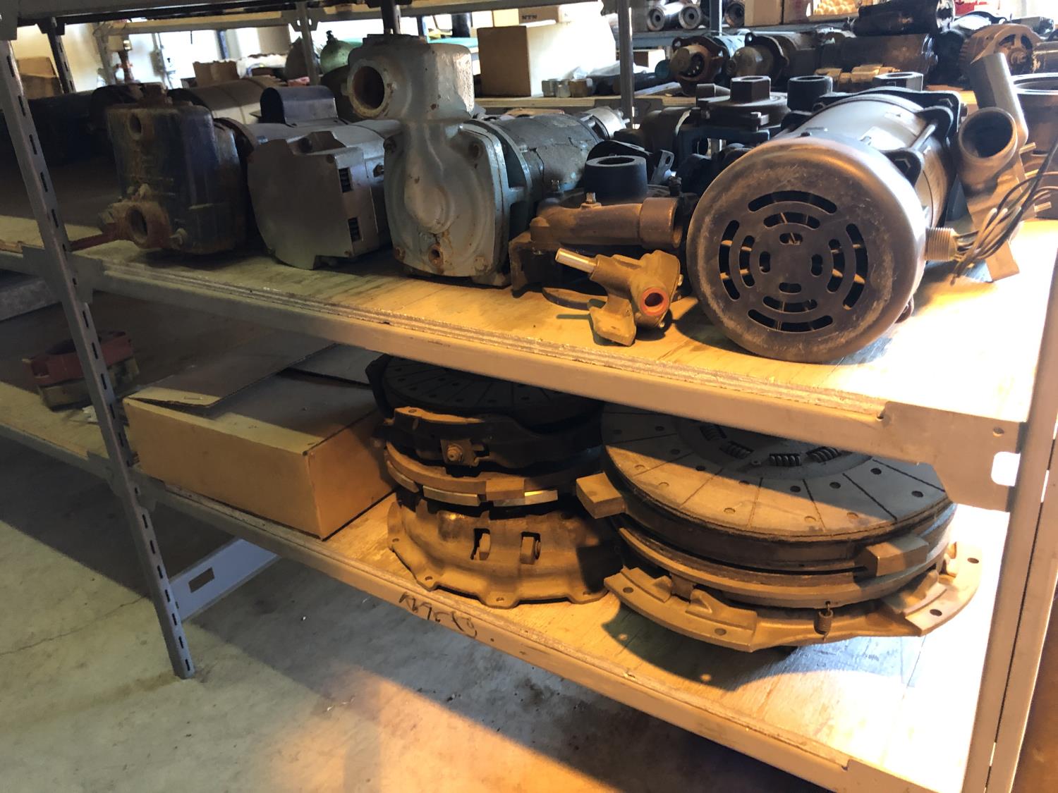 U-clamps, motors, valves, valve ends, belts, control panels, mis hardware, clutch plates (shelves not included)