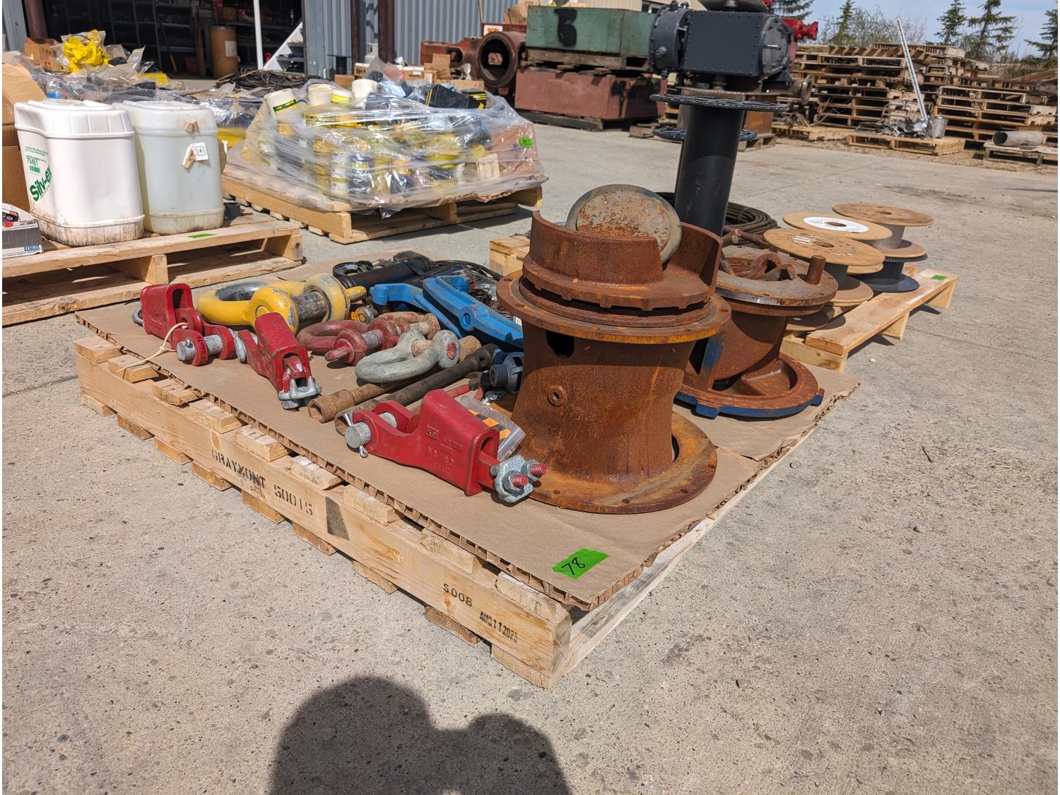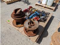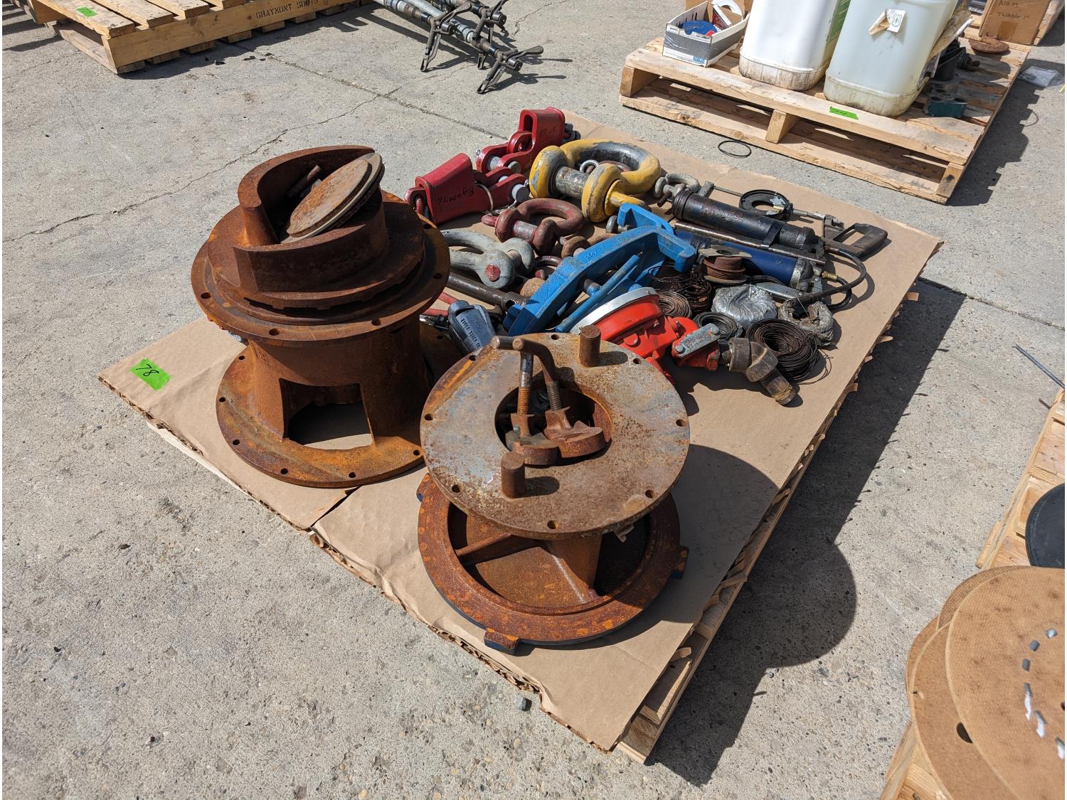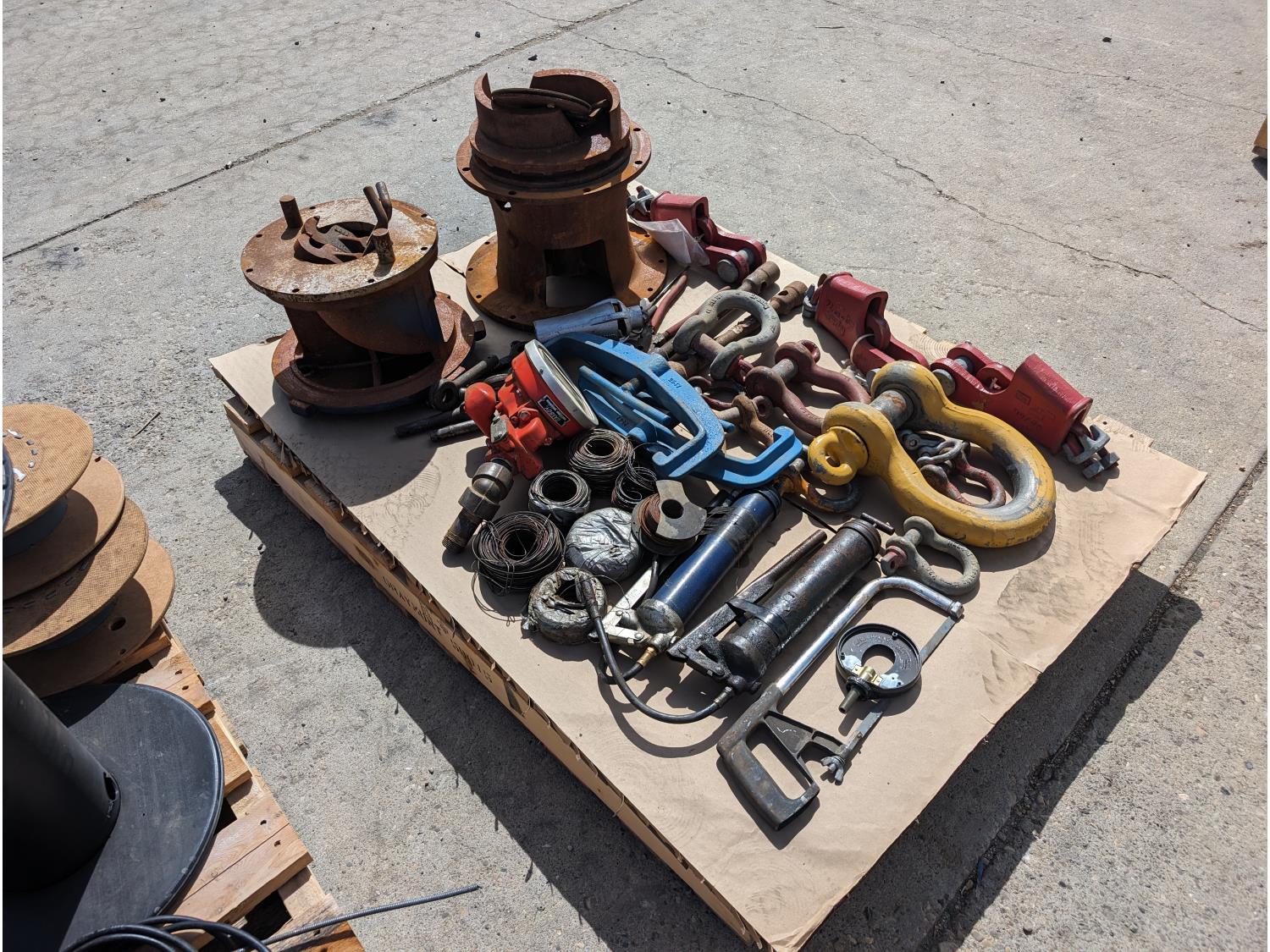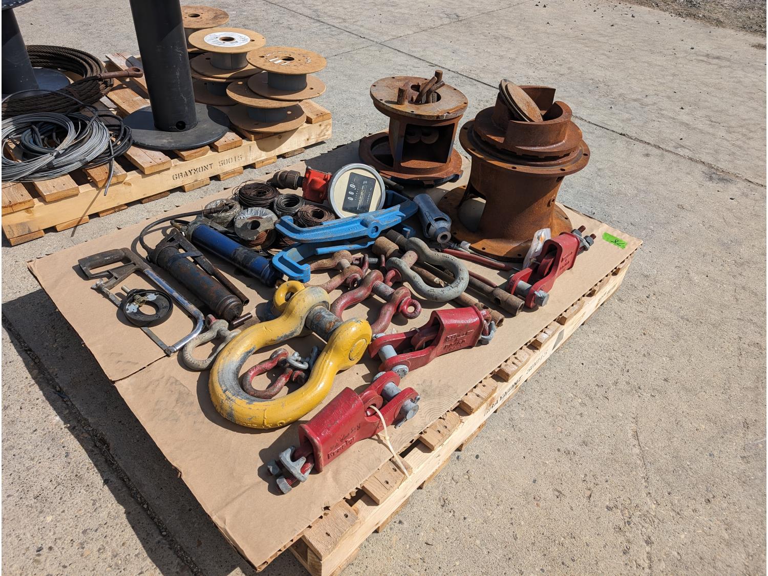 164 Qty of HD Shackles, (2) Grease Guns, Hacksaw, Cable Hitches Misc Items