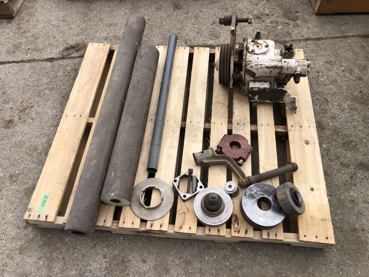 4.5 inch X 52 inch Shaft, 5 inch X 35.5 inch shaft, Sunstrand hydraulic motor, crank handle, miscellaneous parts