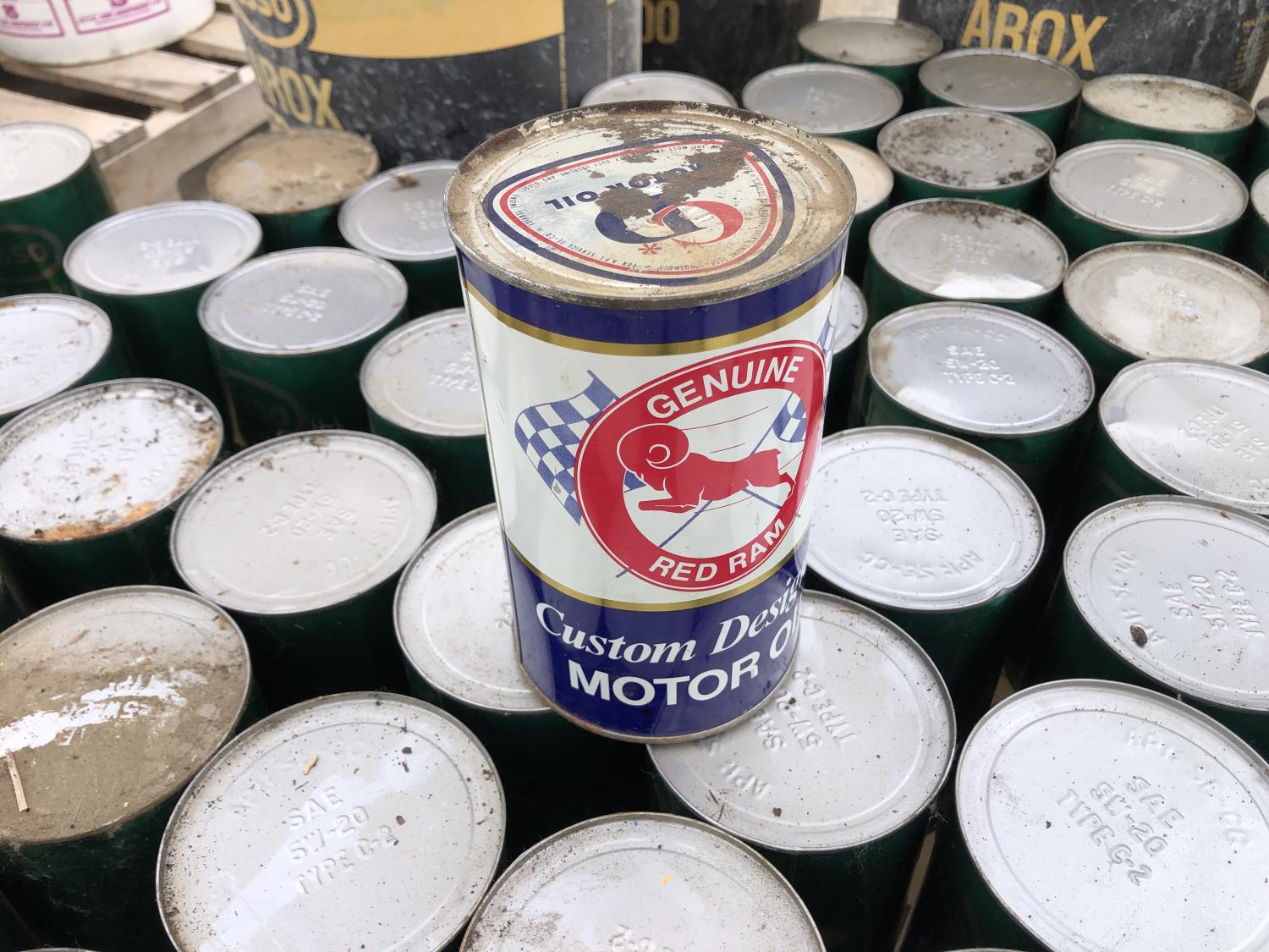 (61) 1.14 liter cans of Esso Lube HDX plus motor oil, (14) quart of red ram motor oil, (4) 20 liter part pails of Esso EP100