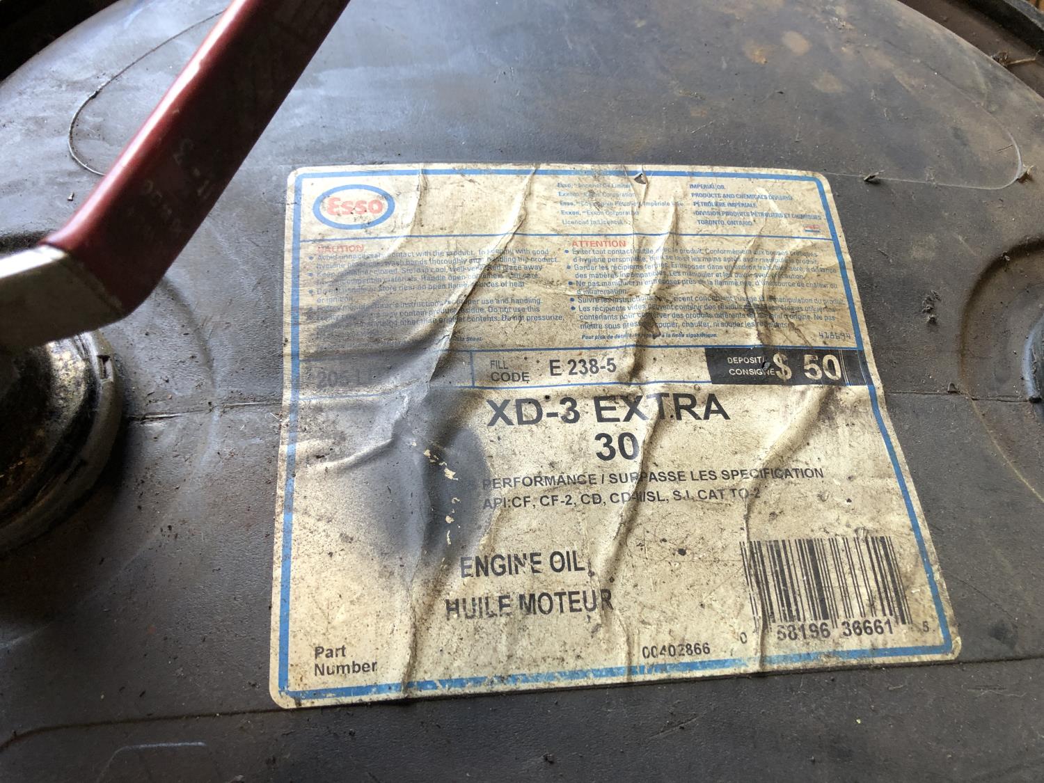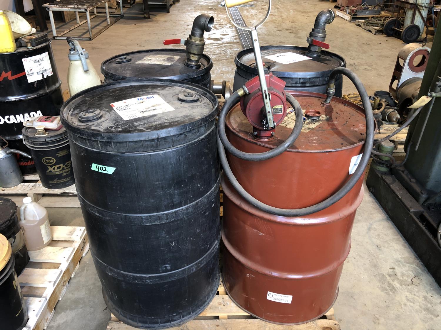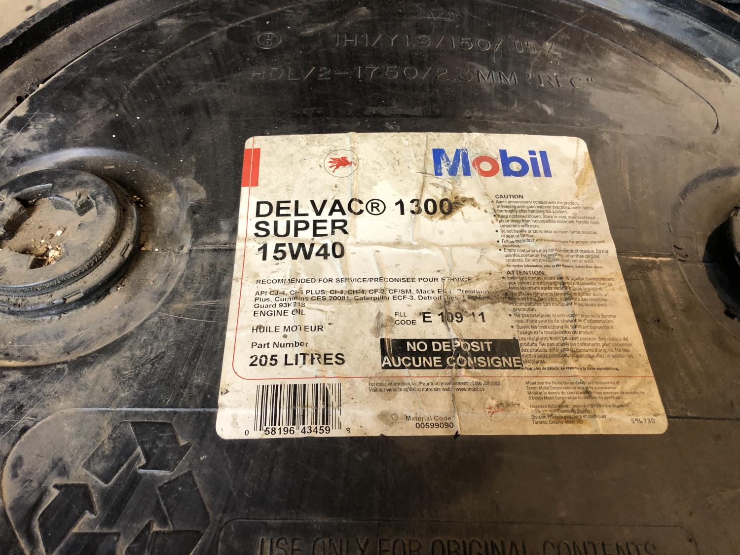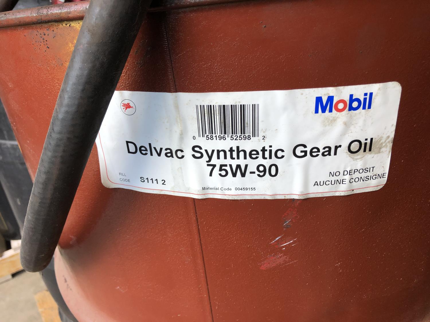 (2) 45 gallon Mobil Delvar 15W40 engine oil, (1) 45 Gallon Delvar synthetic gear oil, (1) 45 gallon barrel Esso XD-3 30 engine oil, all part full
