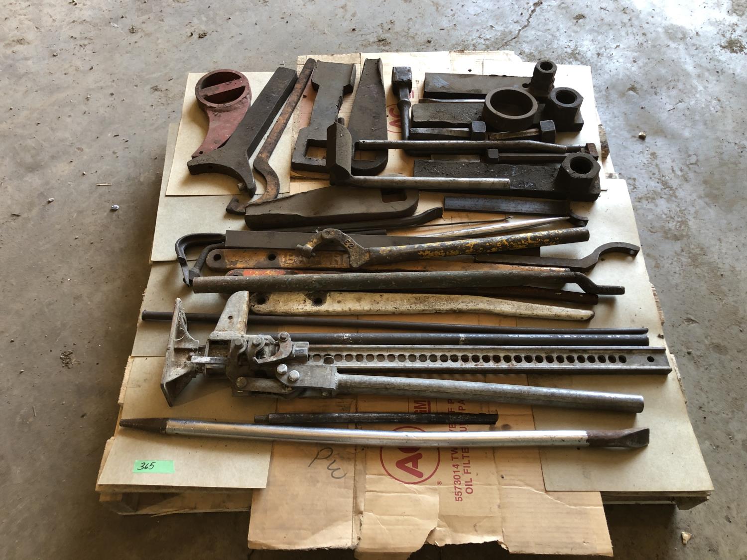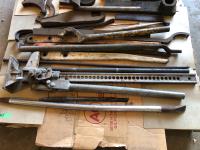Jackall, pry bars, various hammers and wrenches, miscellaneous tools
