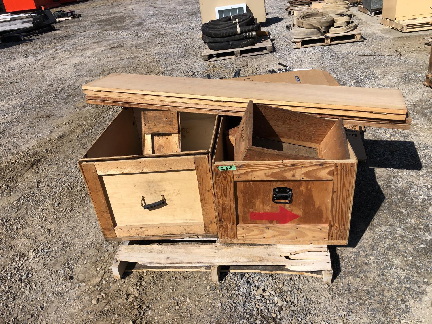 445 Qty of Wood Crates and (2) Folding Closet Doors