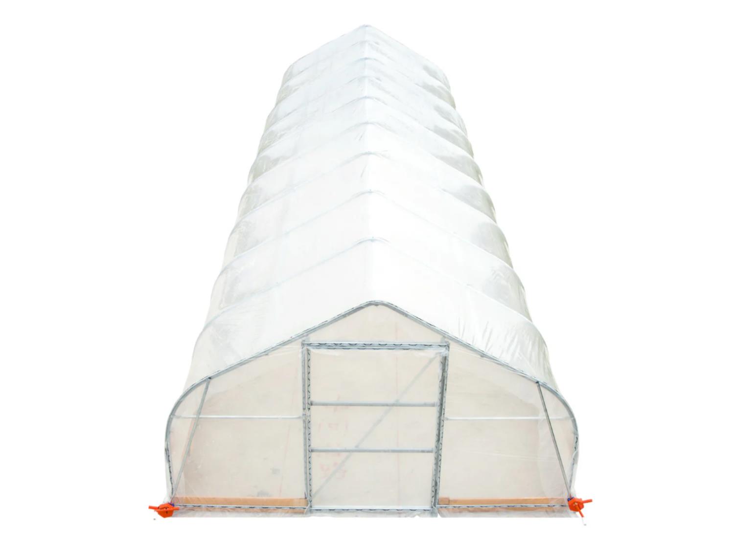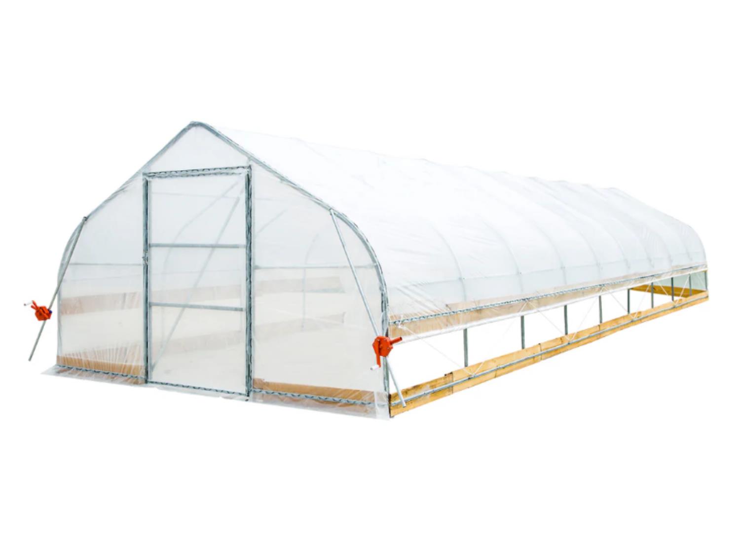 6 mil clear EVA plastic film, cold frame, hand crank roll-up sides, peak ceiling roof