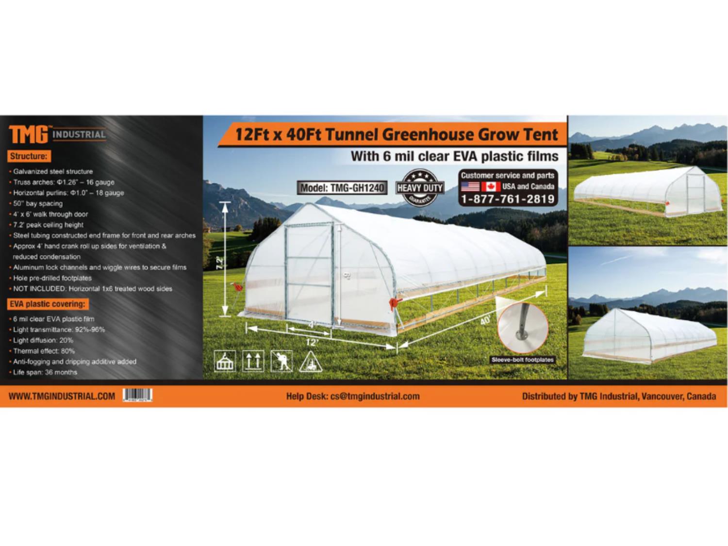 3011 TMG Industrial GH1240 2 Ft X 40 Ft Tunnel Greenhouse Grow Tent (Unused)