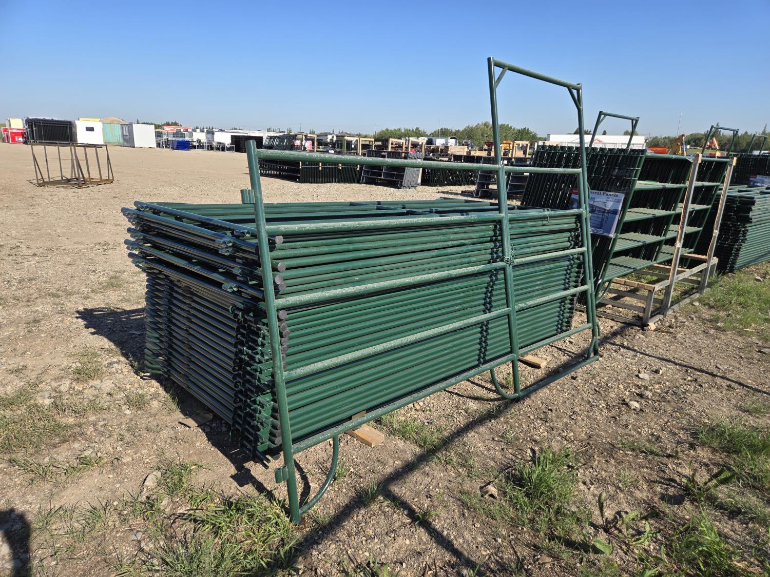3422 (27) 10 Ft 5 Bar Corral Panels and Overhead Frame Gate