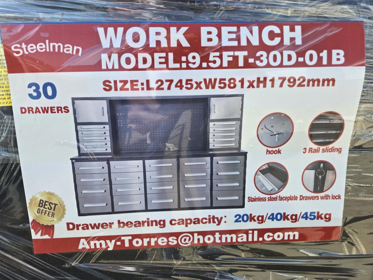 3238 2024 Steelman H9.5FT-30D 9-1/2 Ft 30 Drawer Stainless Steel Work Bench (Unused)