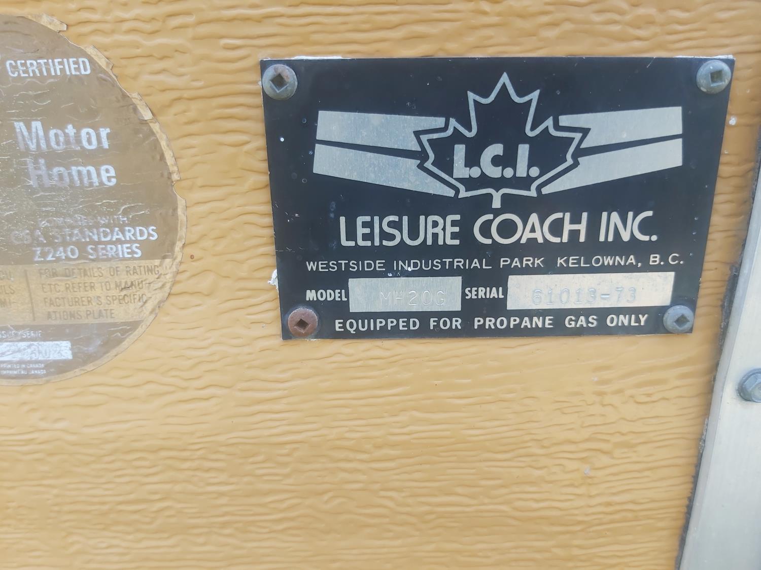 body by Leisure Coach Inc, body model MH20G s/n 61013-73, tires 8.75R16.5