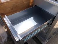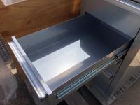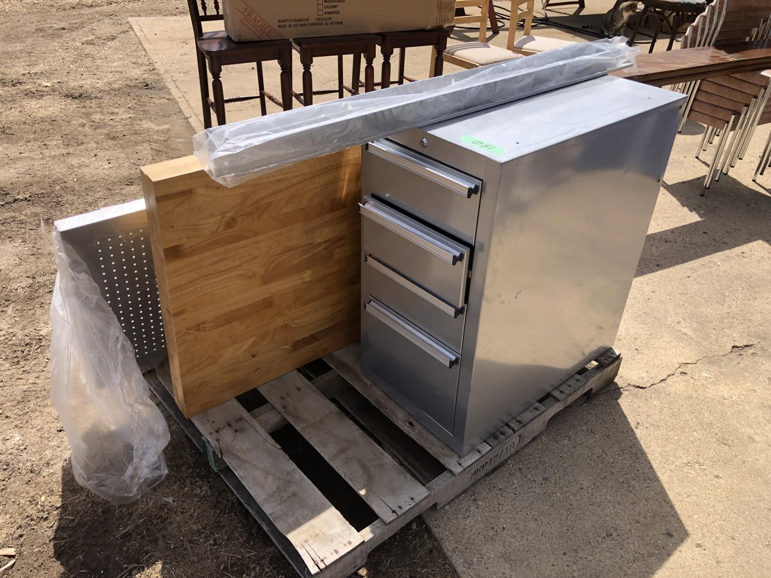 one with 4 drawer cabinet, one with aluminum peg board, 53 inches x 29 inches