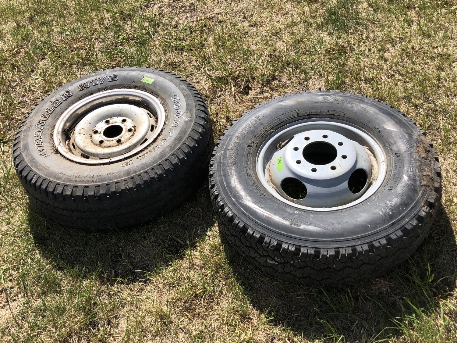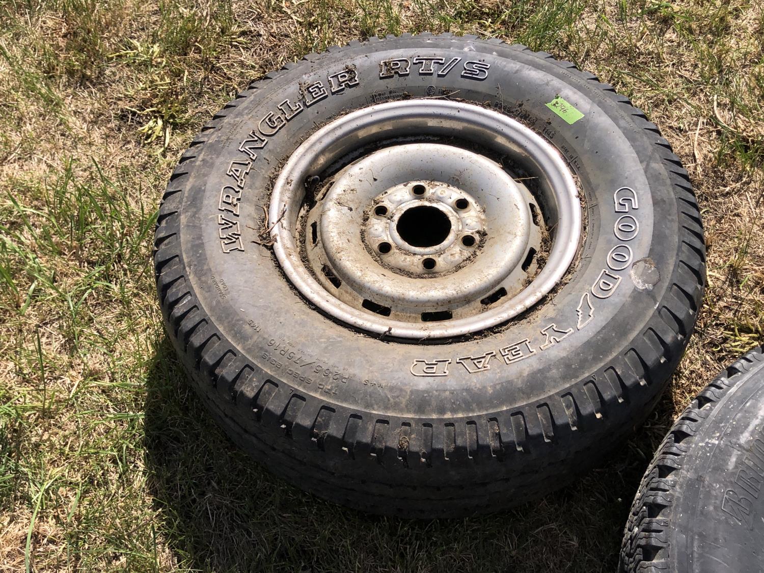 Bridgestone 235/85R16 tie and steel rim, Goodyear 265/75R16 tire and steel rim