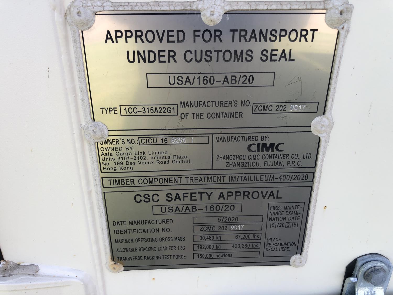 manufacture date 5/2020