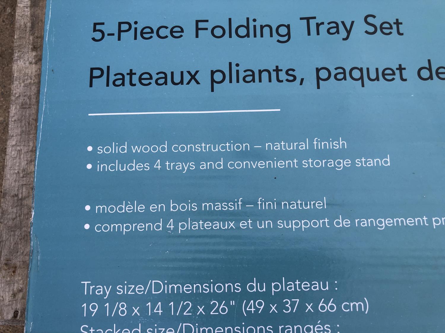 5 piece folding tray set, cork board 24 x 36 inch