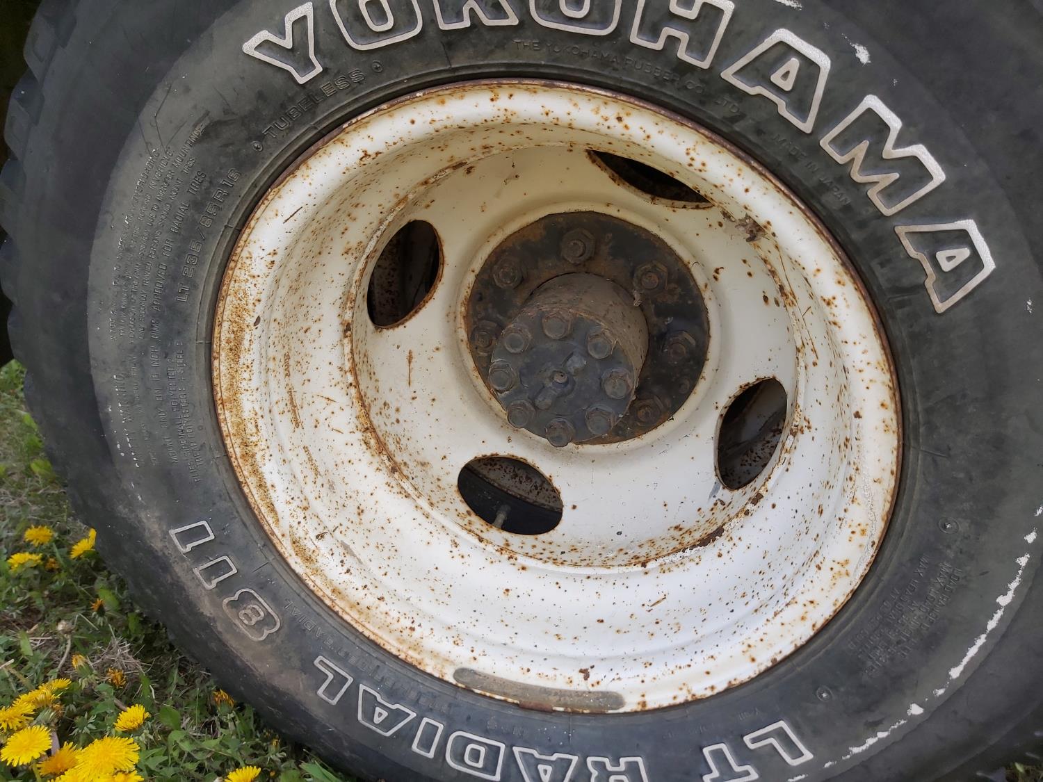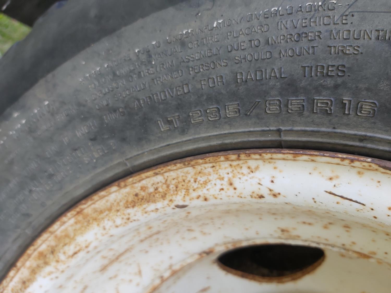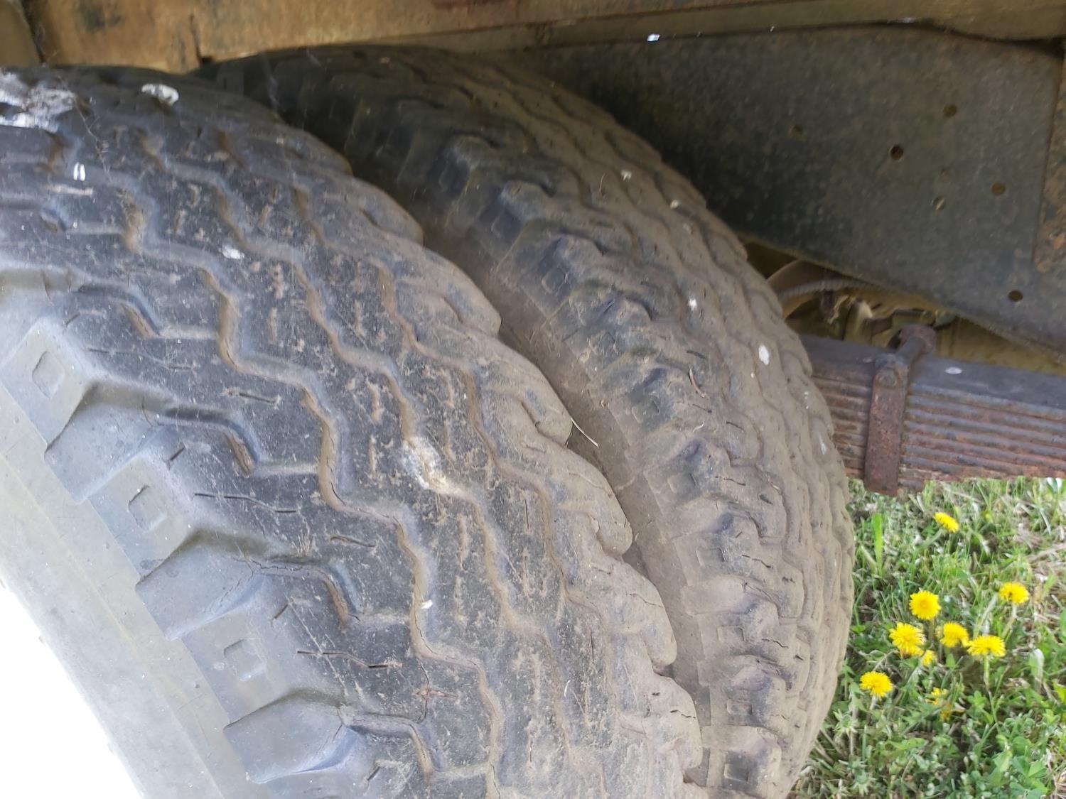 V8 engine, manual transmission, dual rear tires, size 235/85R16