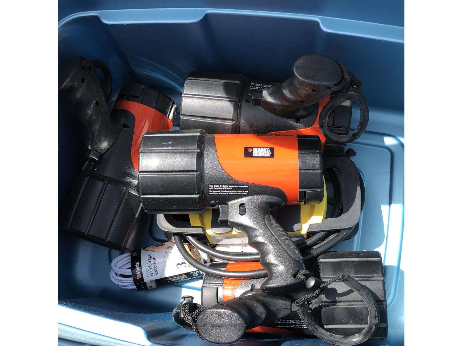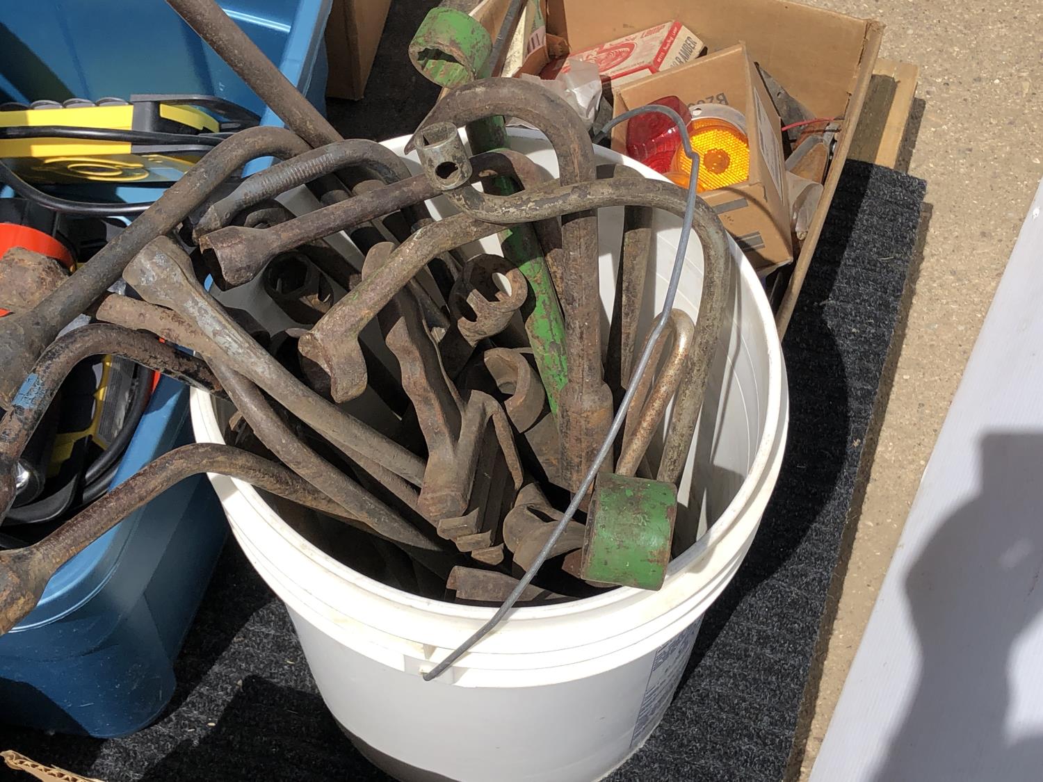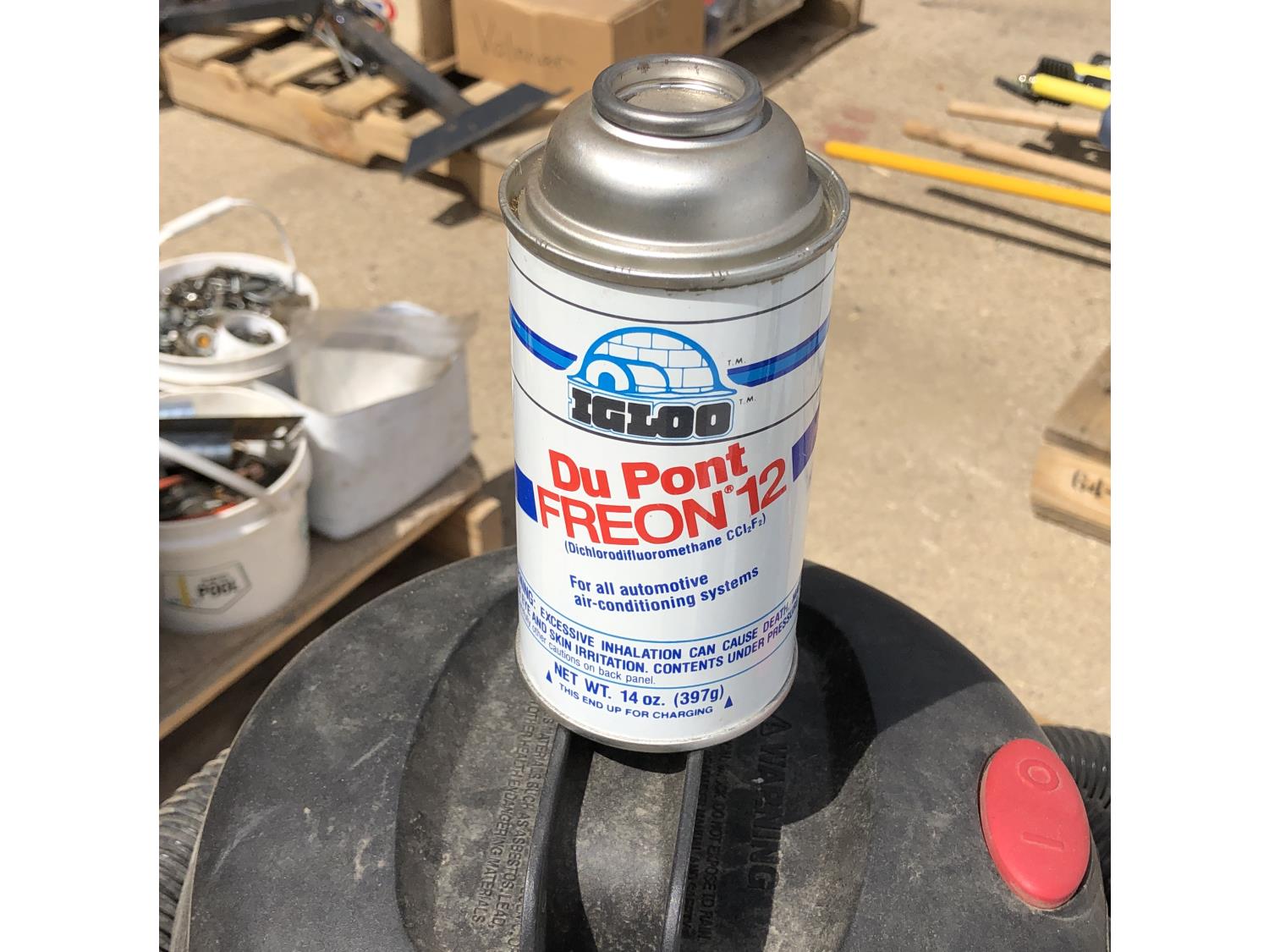 4.5 HP shop vac, (11) cans of freon, assorted bearings, assorted tire irons, various marker lights, various fasteners, o-ring kits, (4) Black & Decker flashlights (unused), (2) power bars (unused)