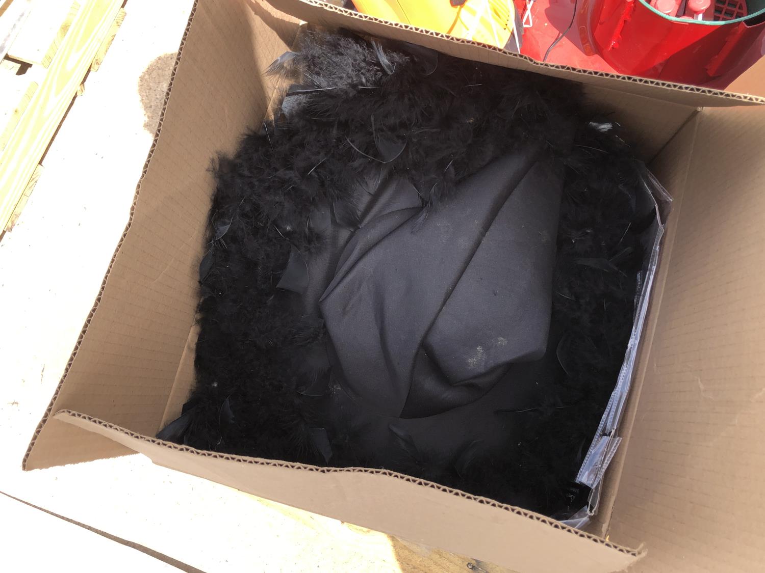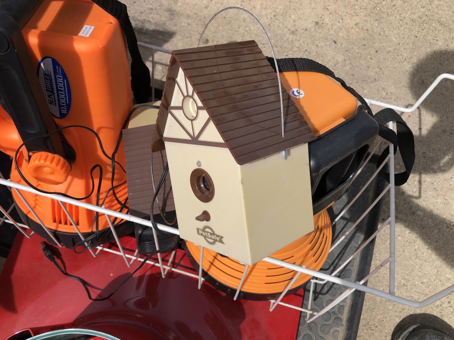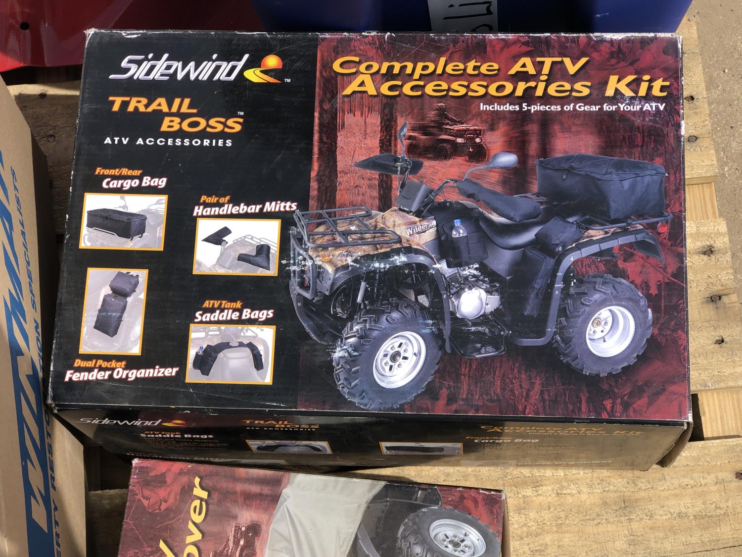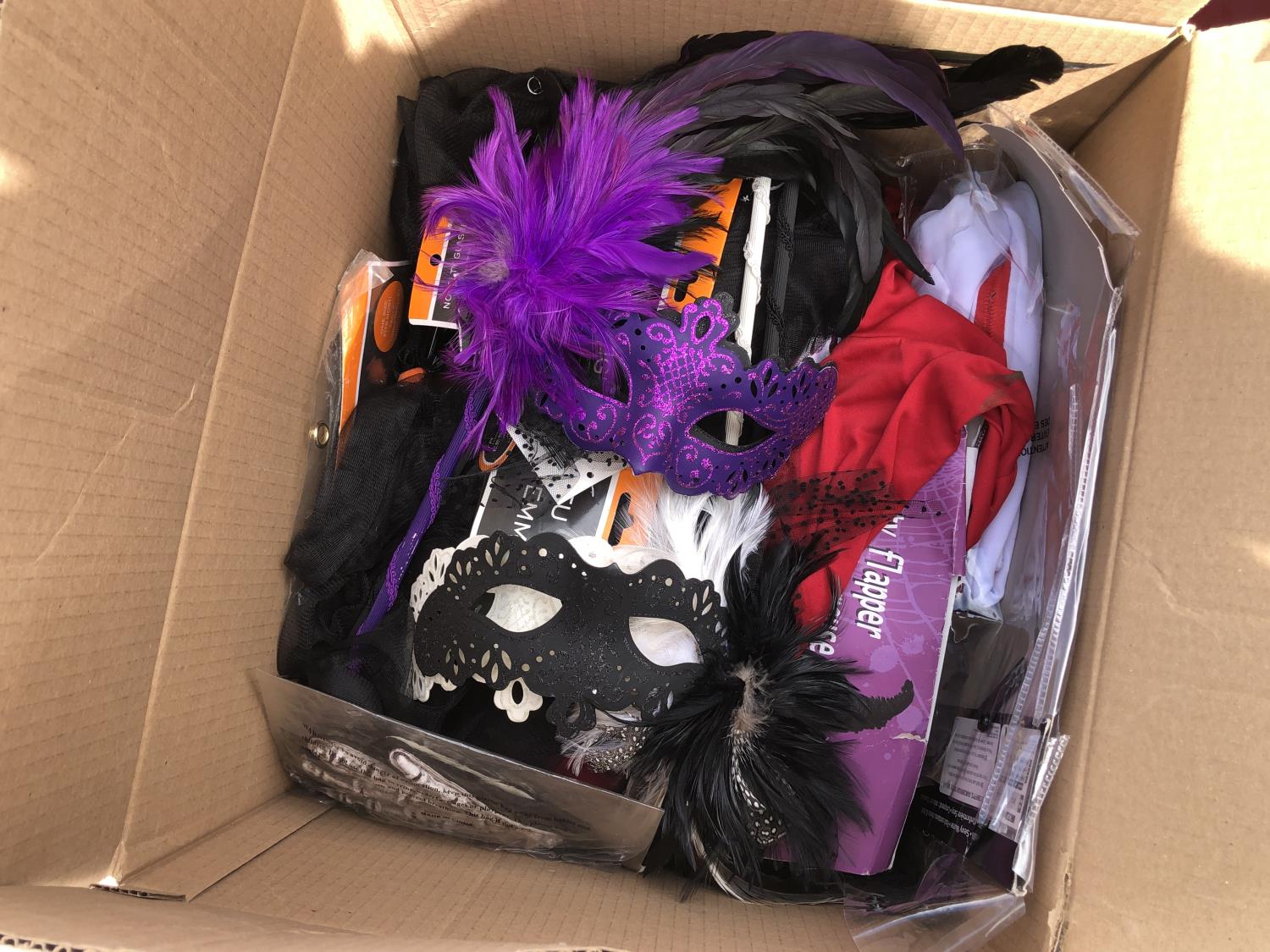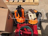ATV cover and accessory kit (unused), X-mas lights, tree stand, 1,000,000 candle power flash light, Halloween costumes, motion sensor alarm