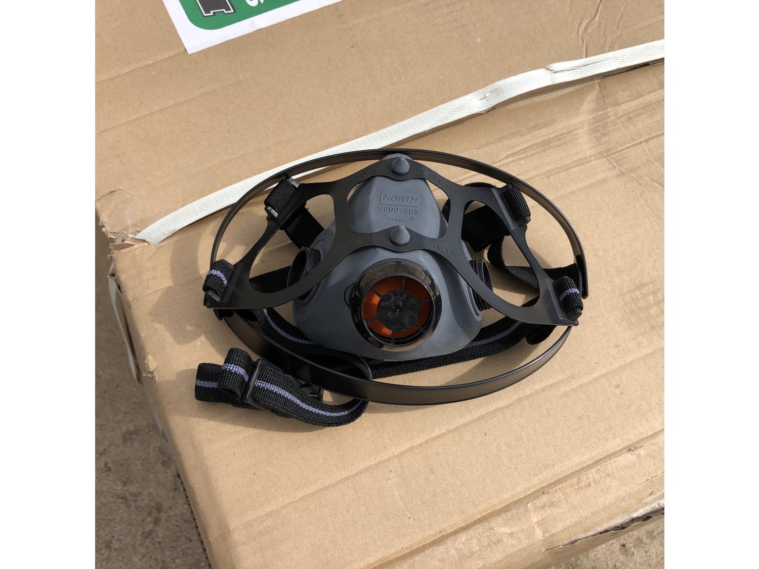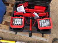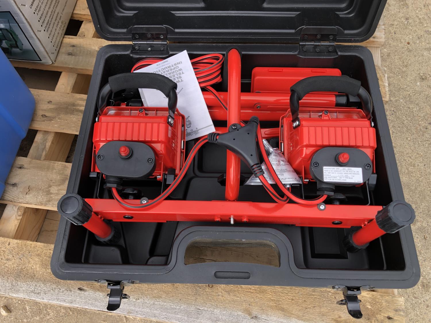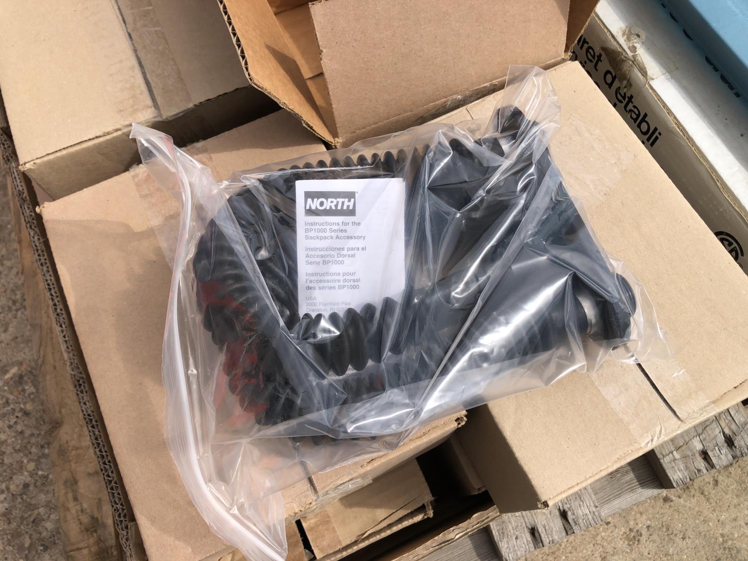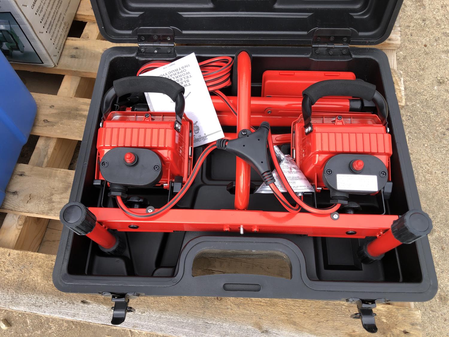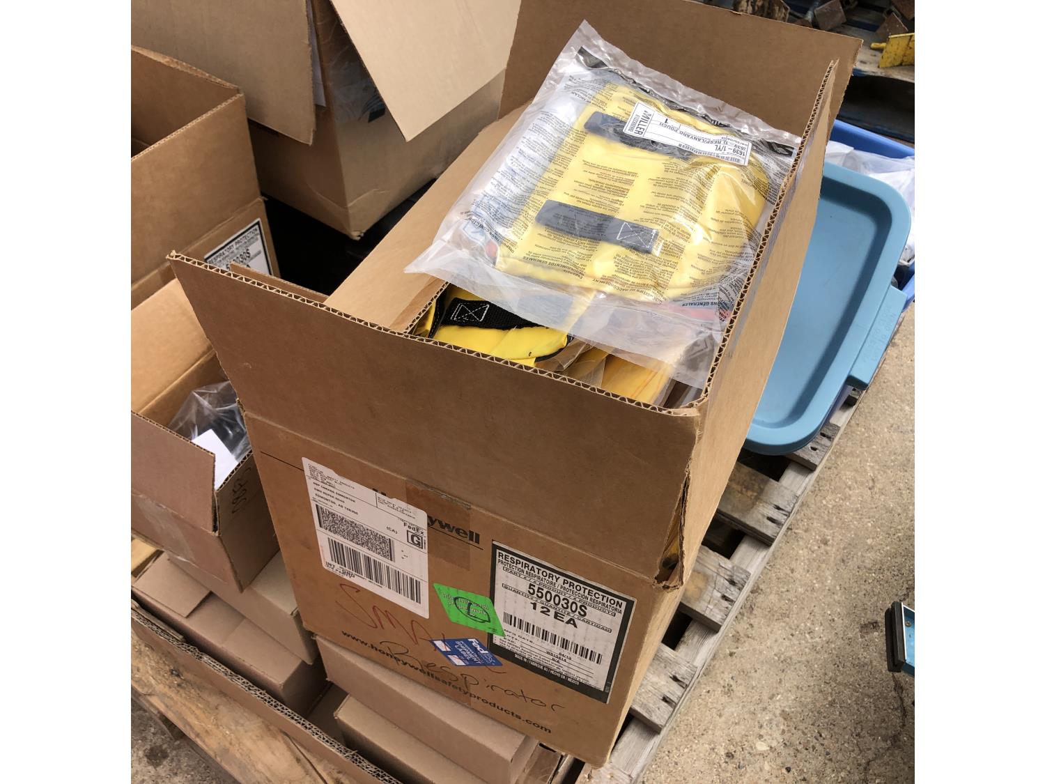 6 inch bench grinder, (2) quick support rods, quantity of lanyard pouches, assortment of respirator masks, quantity of respirator hose, respirator filters 92 styles), flood light with tri-pod and case