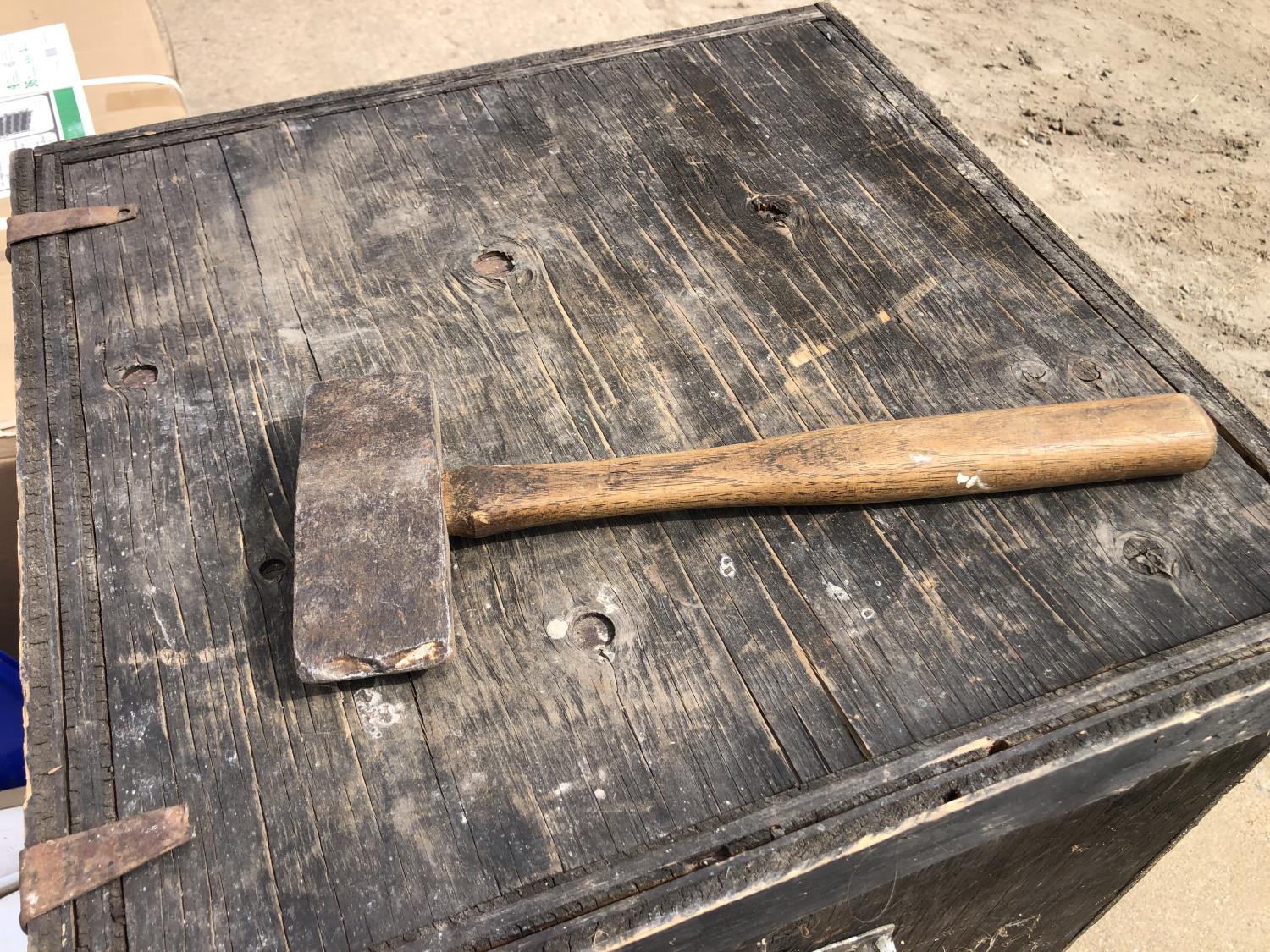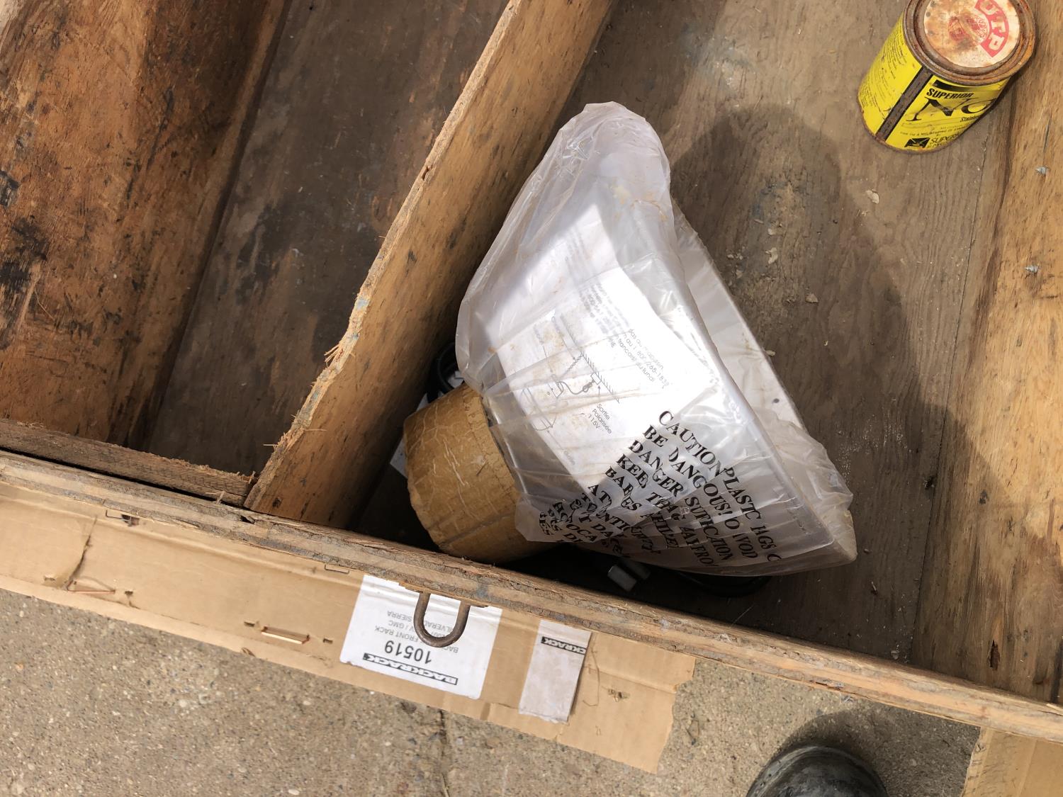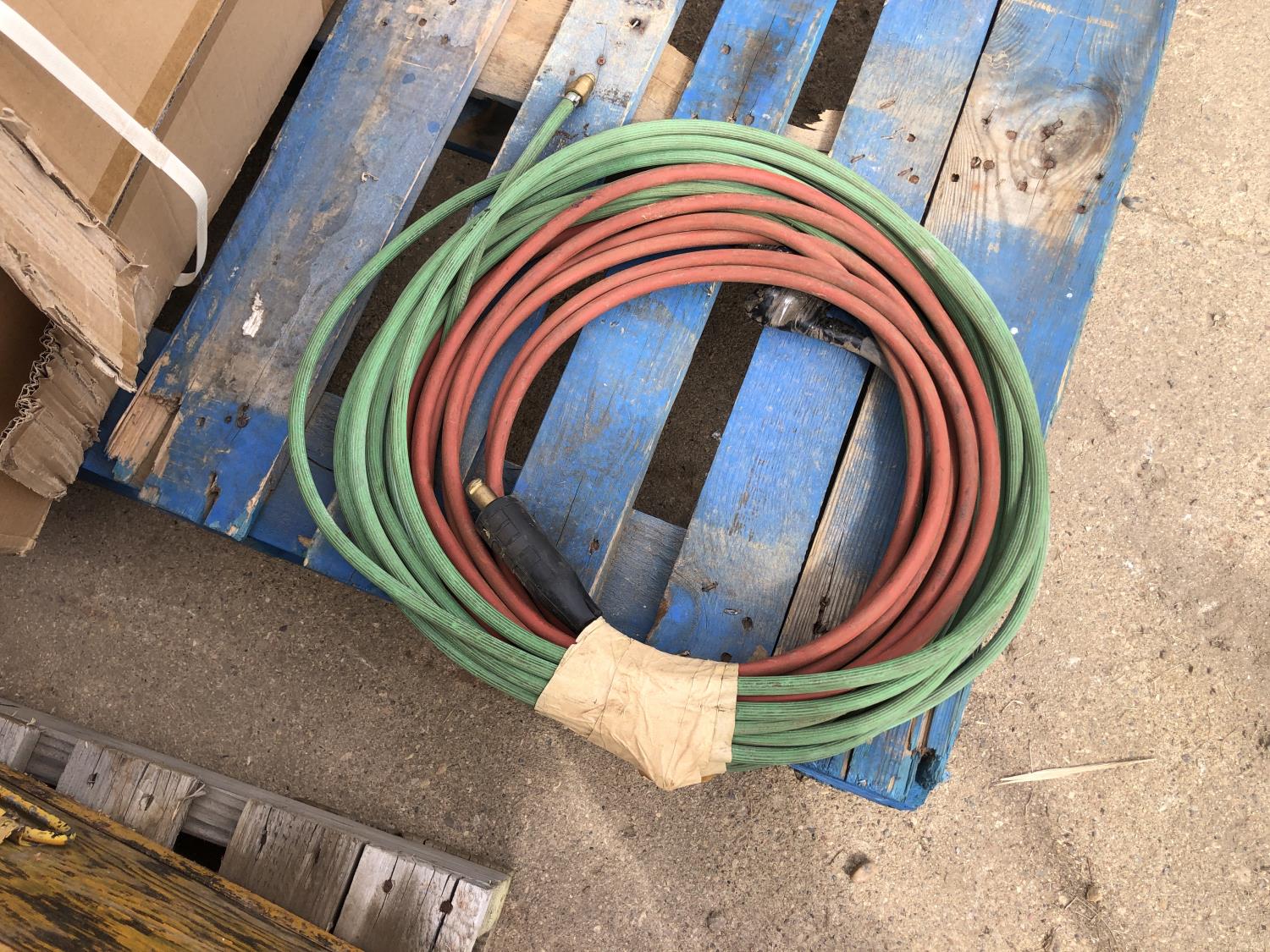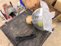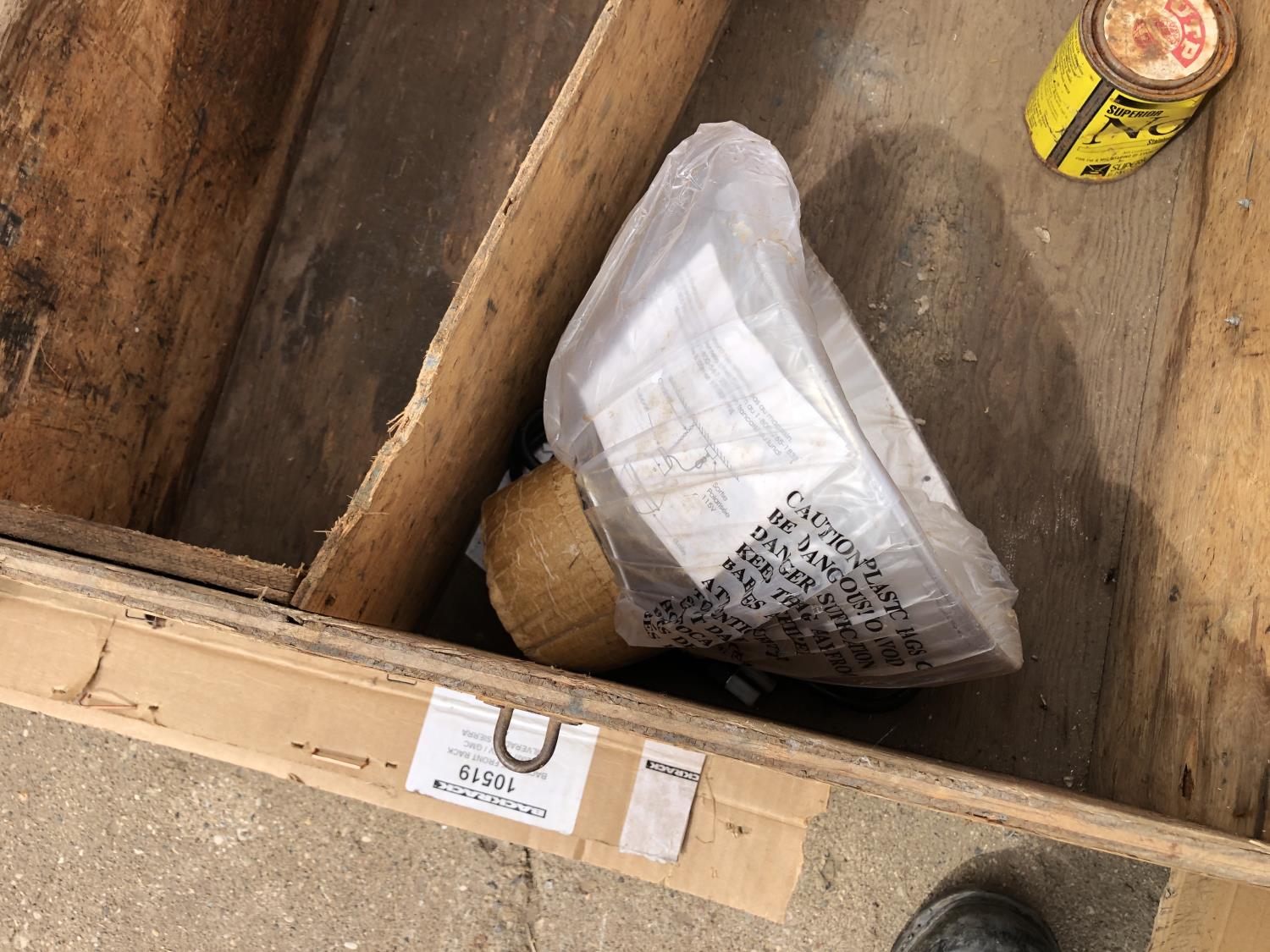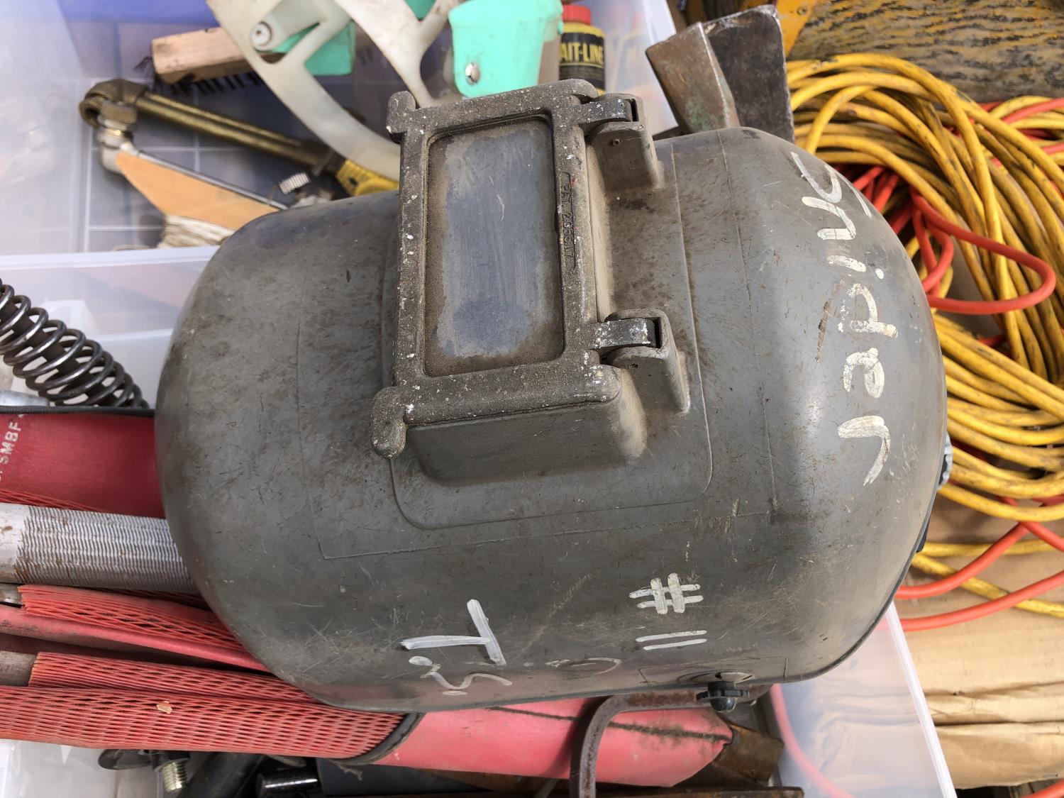 quantity of tinted goggles, welding helmet, (2) torches (missing tips), quantity of files, extension cords, assorted welding cables, (2) wooden boxes, chipping hammers, (2) heat lamps unused