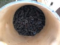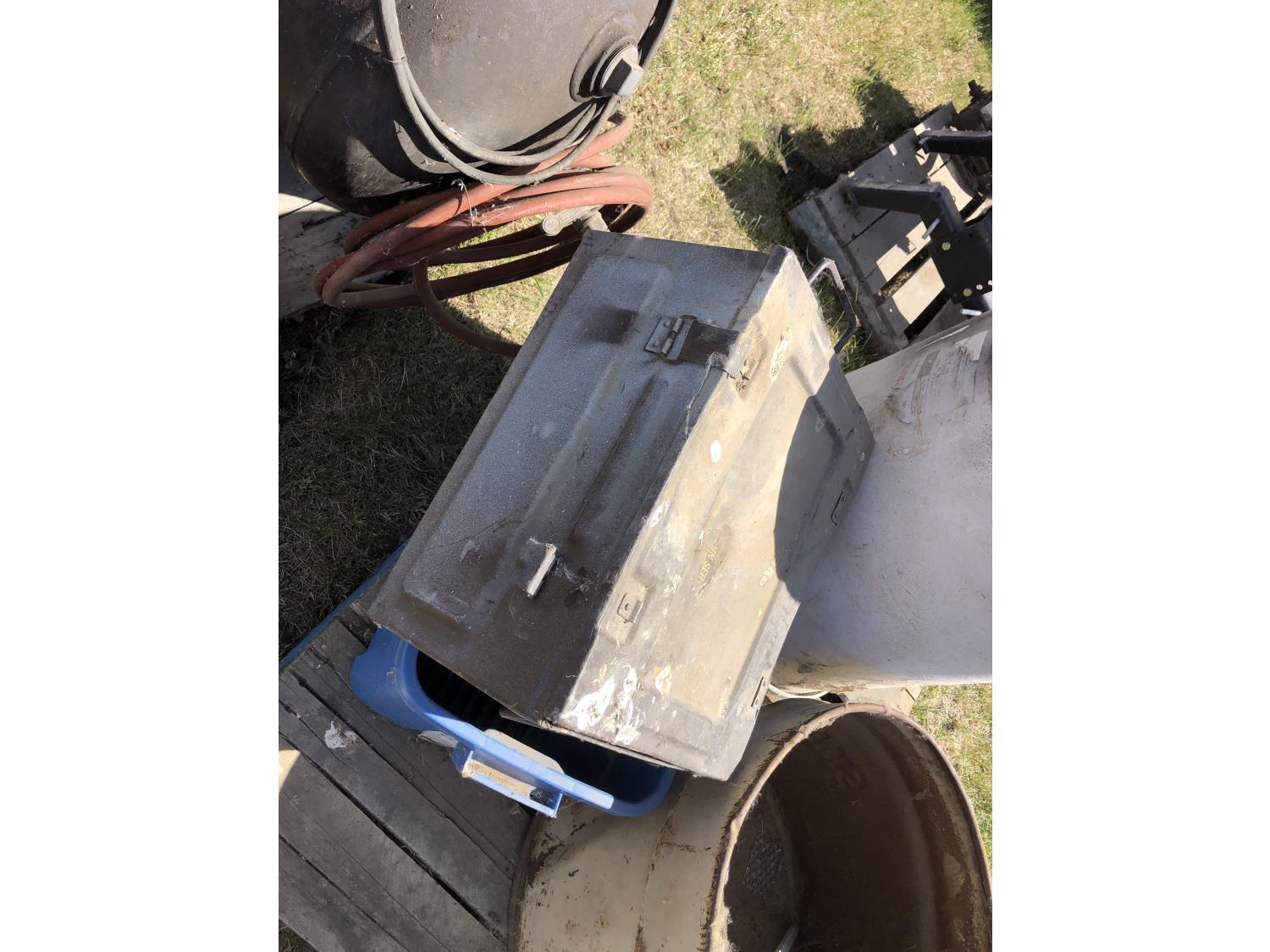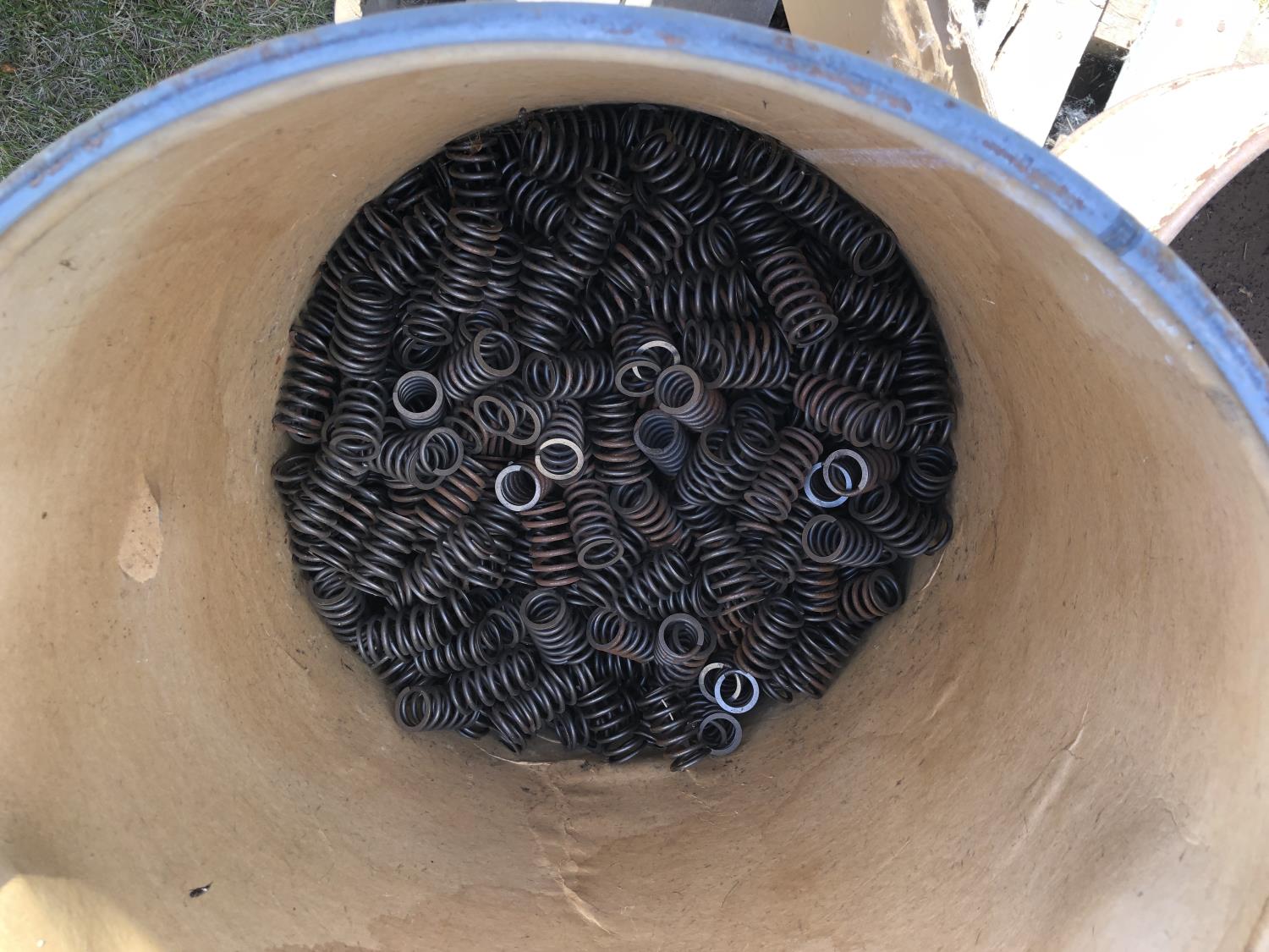 quantity of 2-1/4 inch x 1-1/4 inch springs, (2) 16 inch x 15-1/2 inch x 22 inch diameter steel tubes, 18 inch x 15-1/2 inch x 9-1/2 inch ammo tin