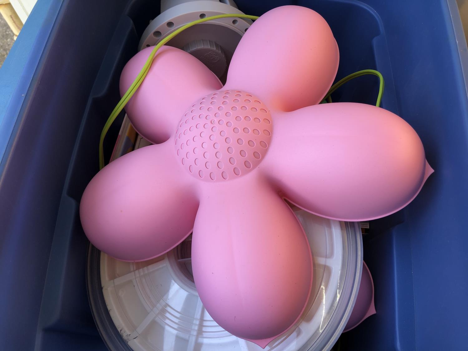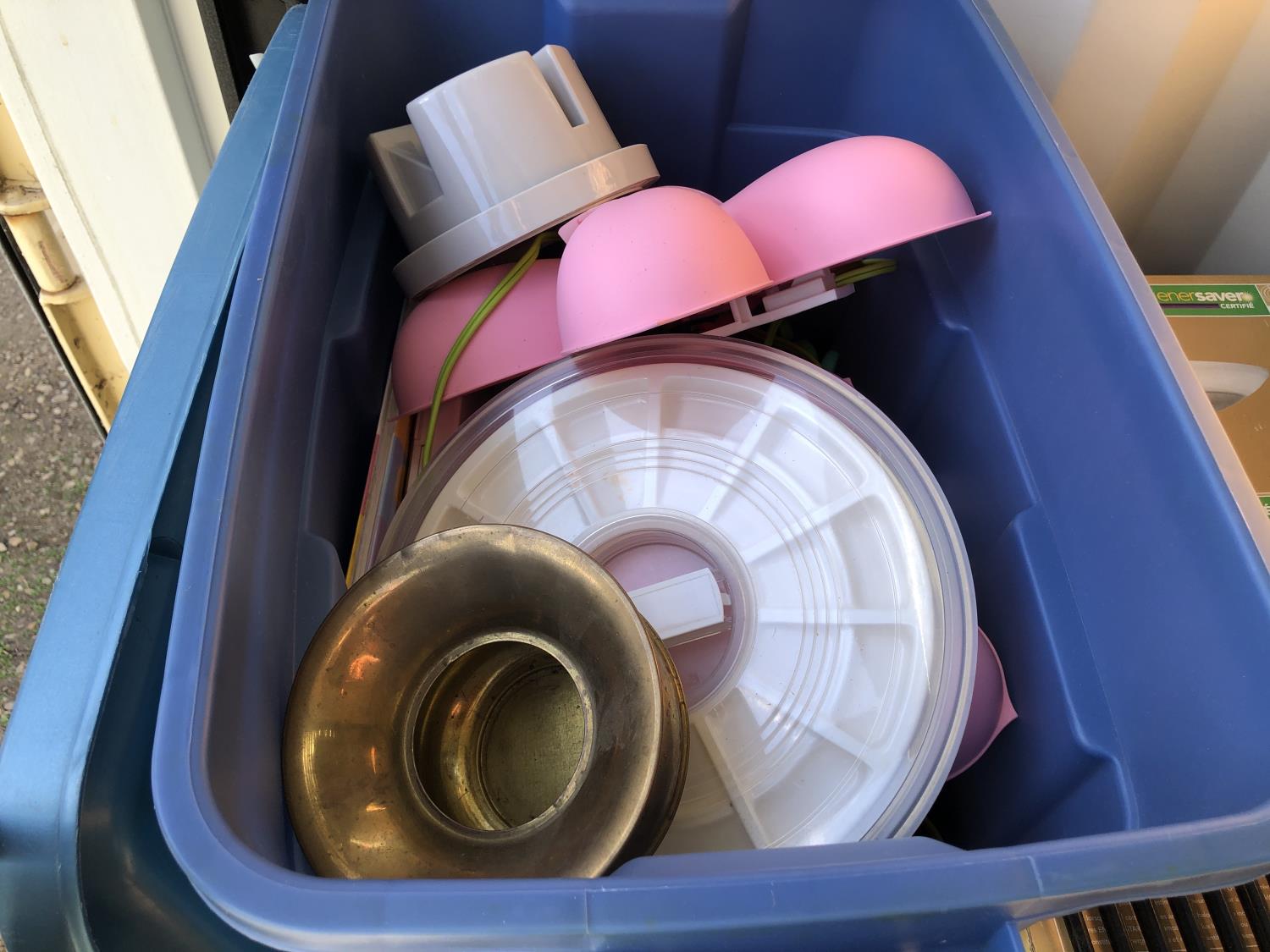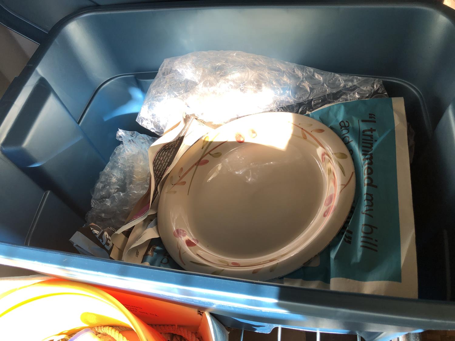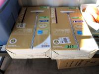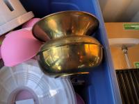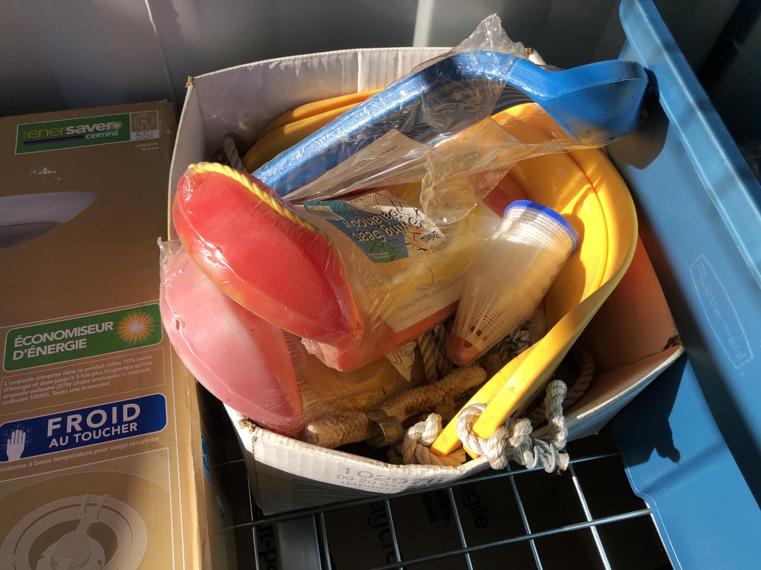 16 inch x 19 inch x 24 inch high wicker basket, (2) 72 inch high up-lights (unused), (2) wire grills 13 inch x 14 inch, (3) unused swing seats, quantity of dishes, miscellaneous houseware