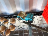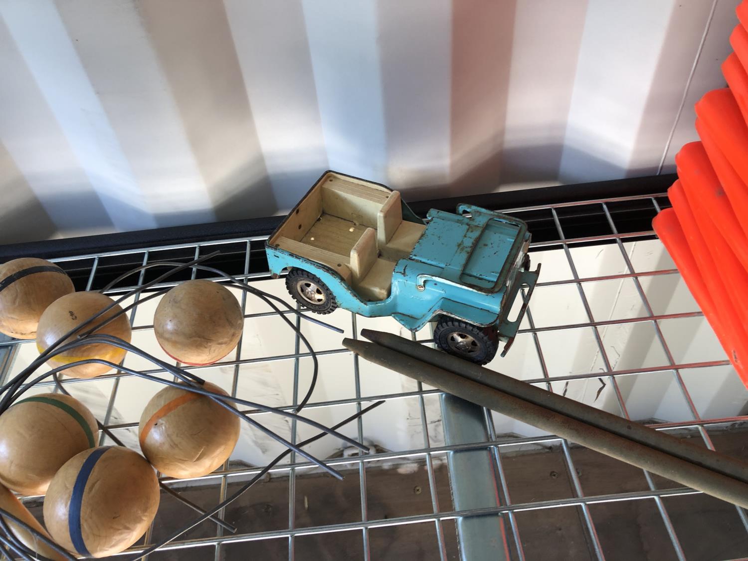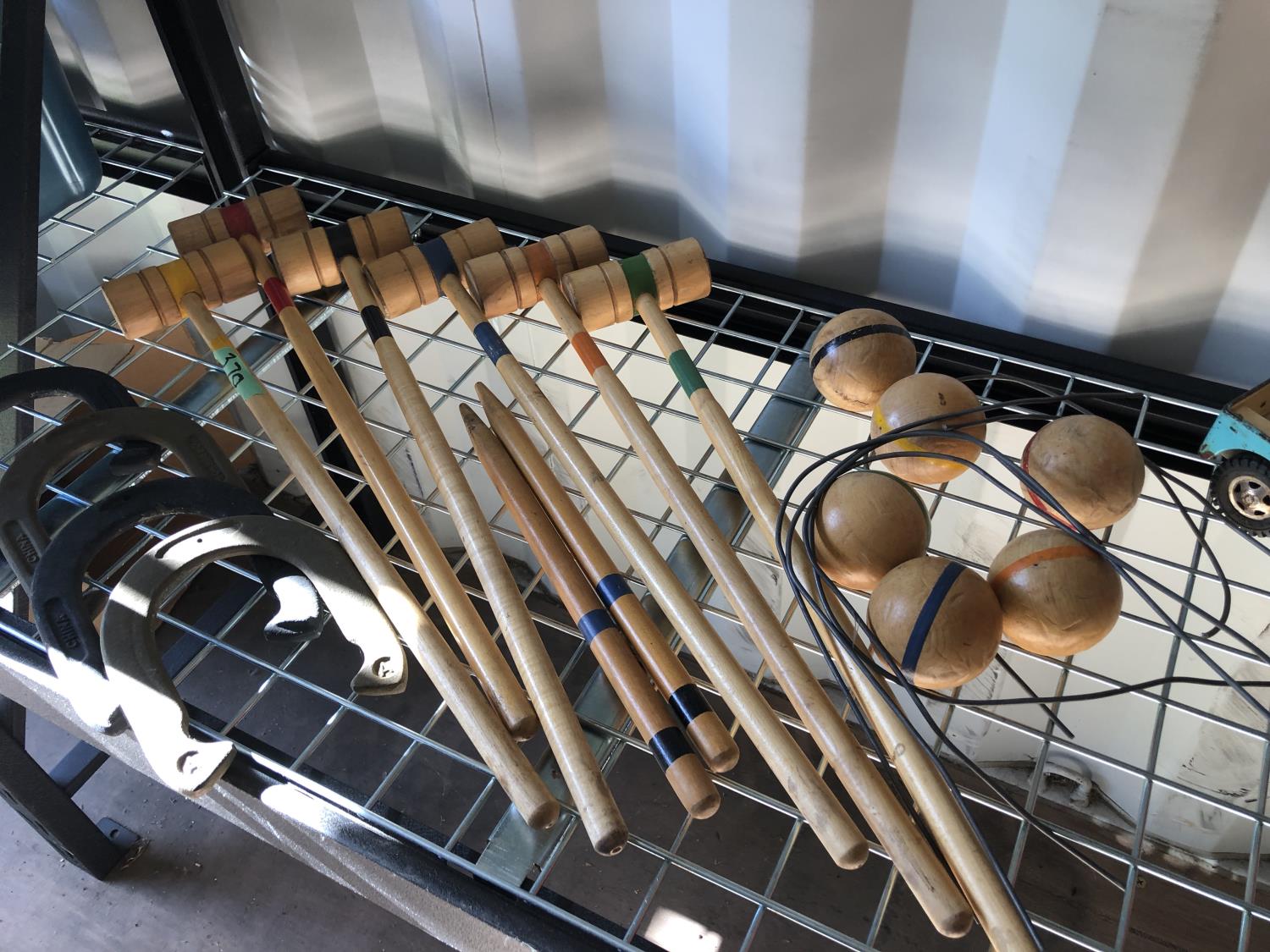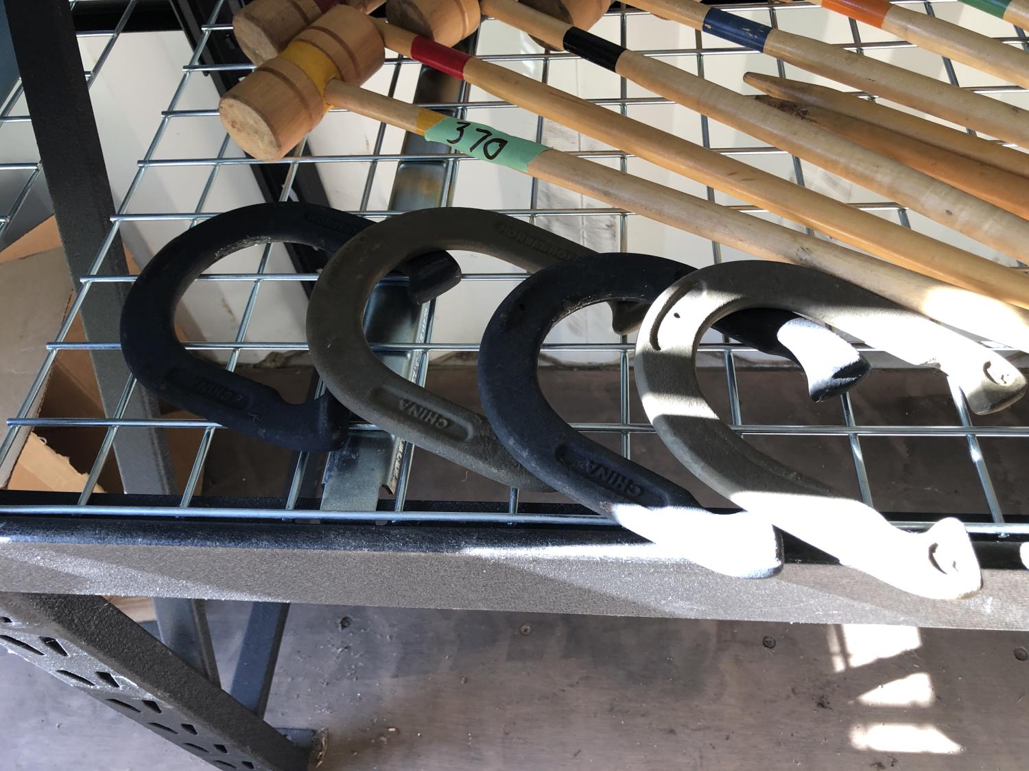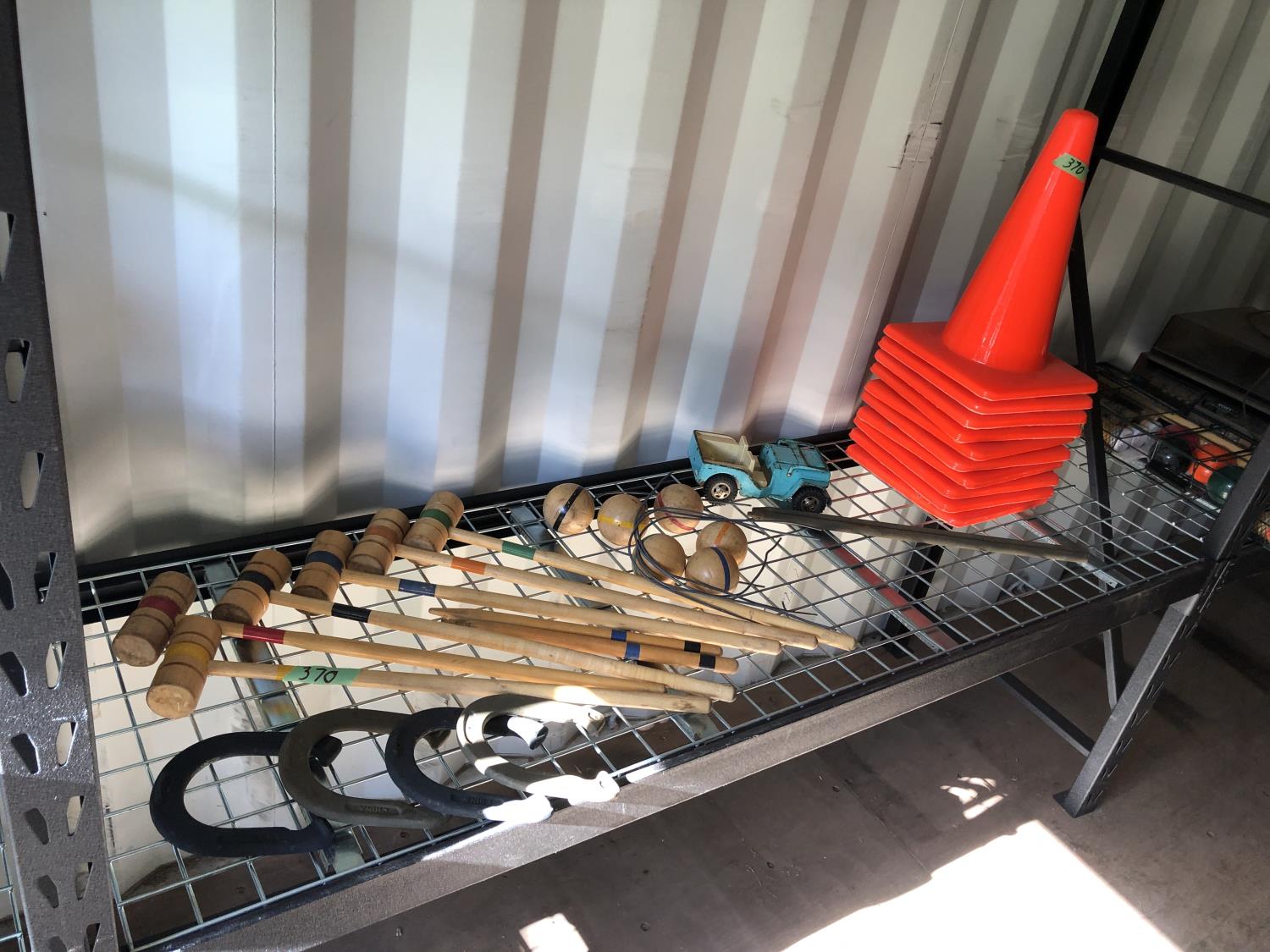 croquette set, toy car, (4) horse shoes, (10) safety cones