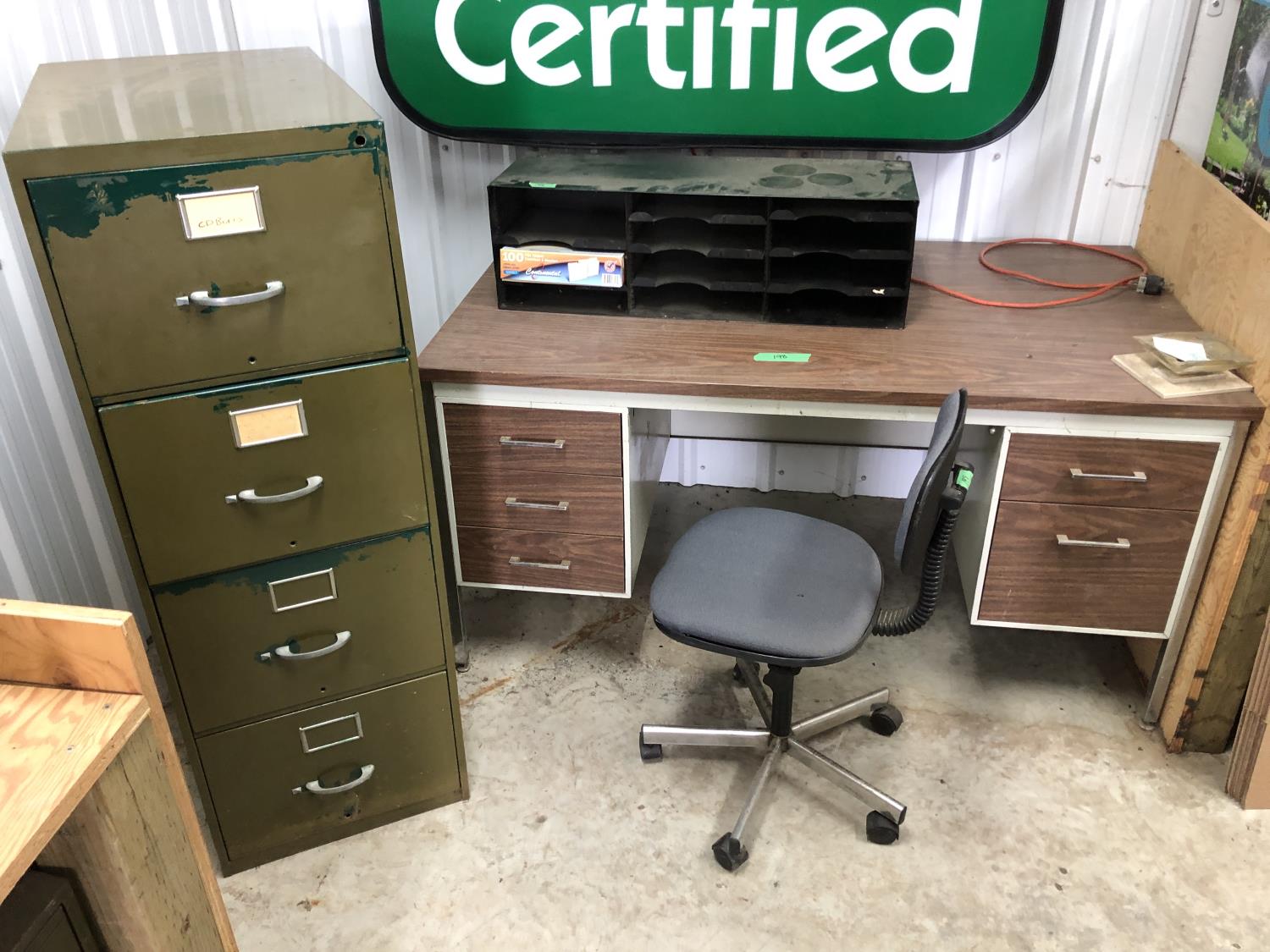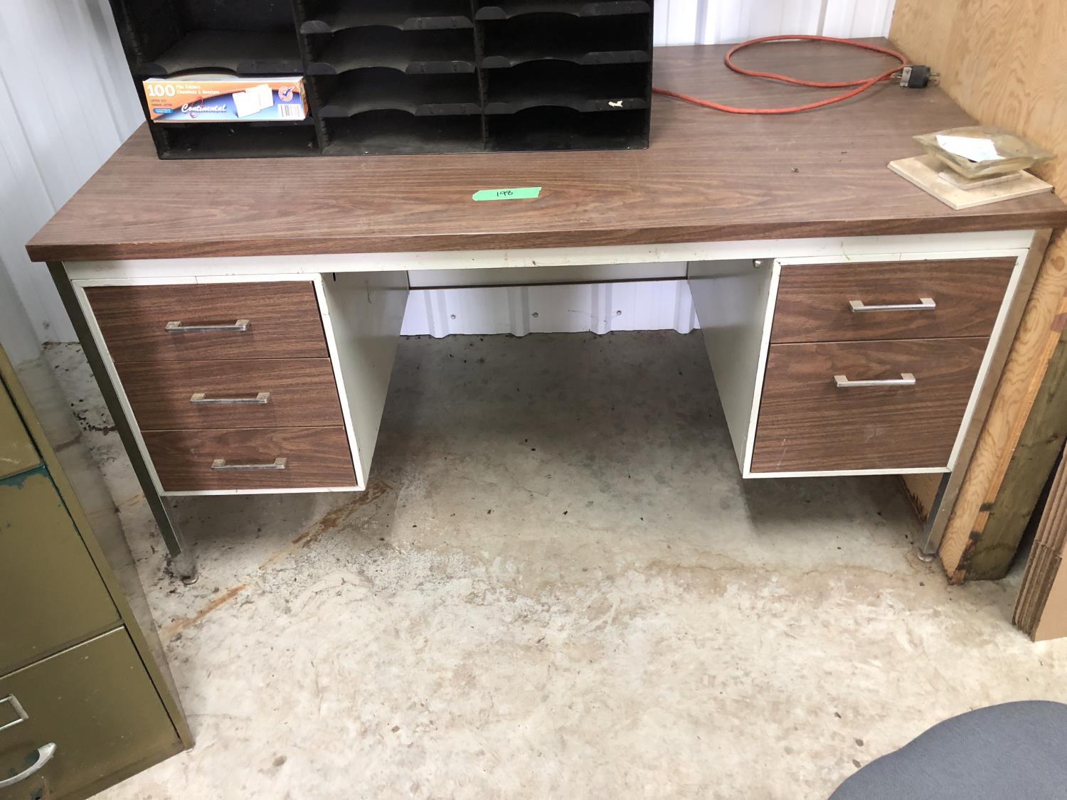 30 x 34 x 30 Inch (5) drawer desk, office chair, desktop organizer 36 x 12 x 10 inch, (4) drawer filing cabinet 18 x 28 x 51 inch