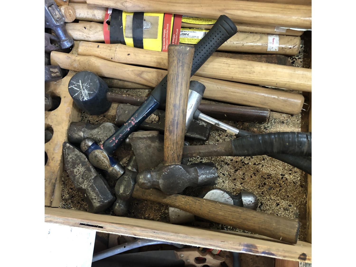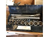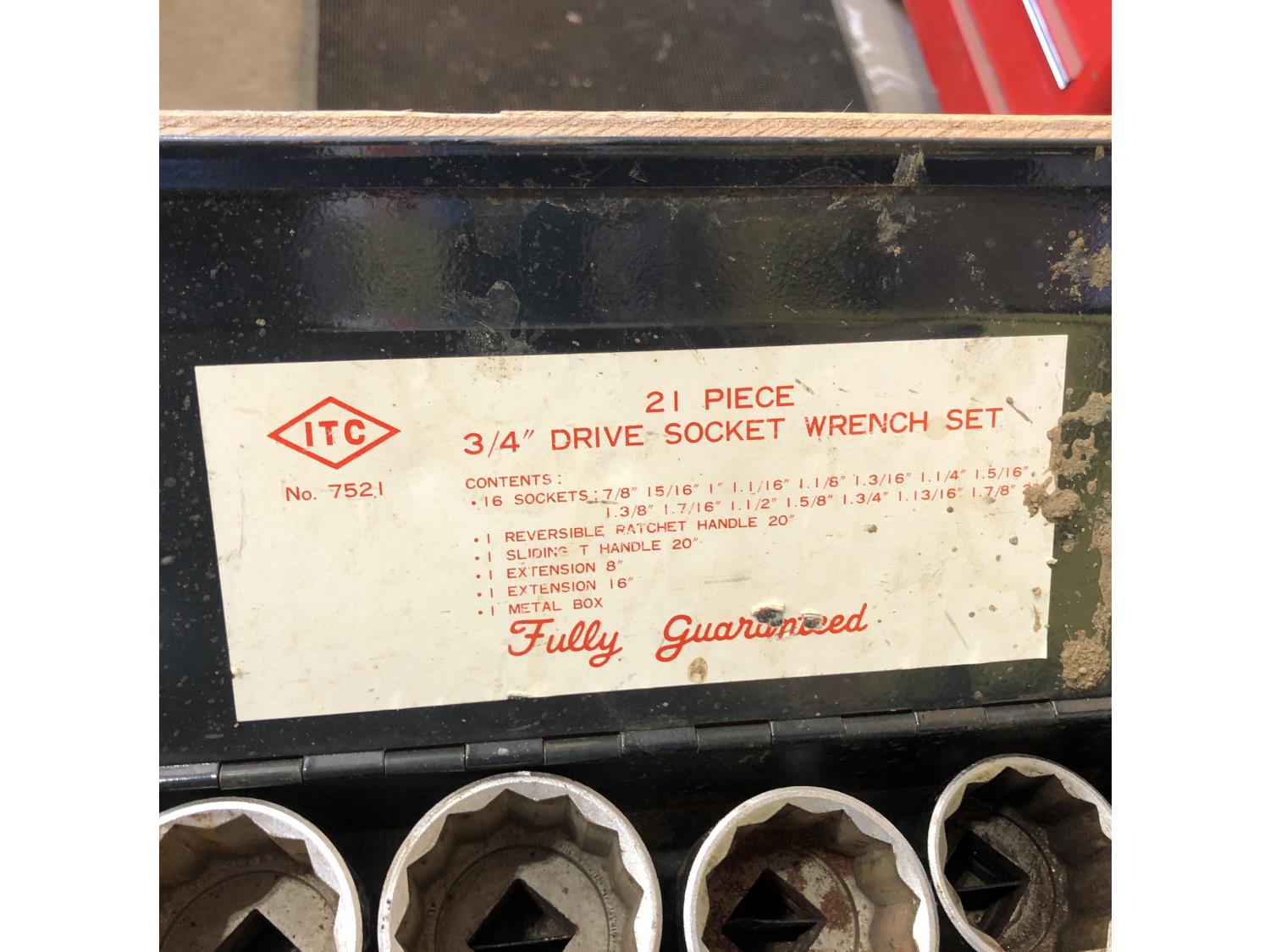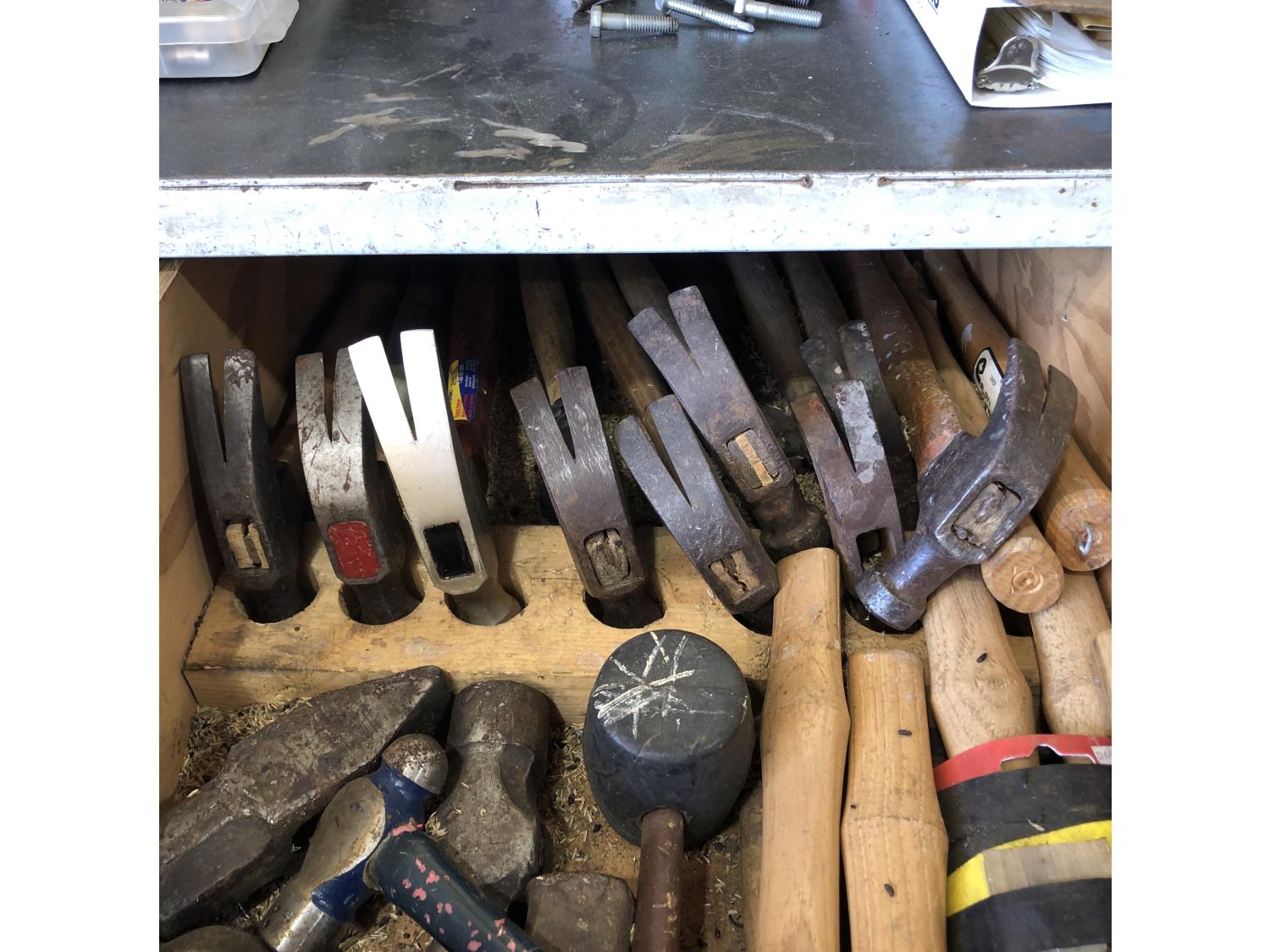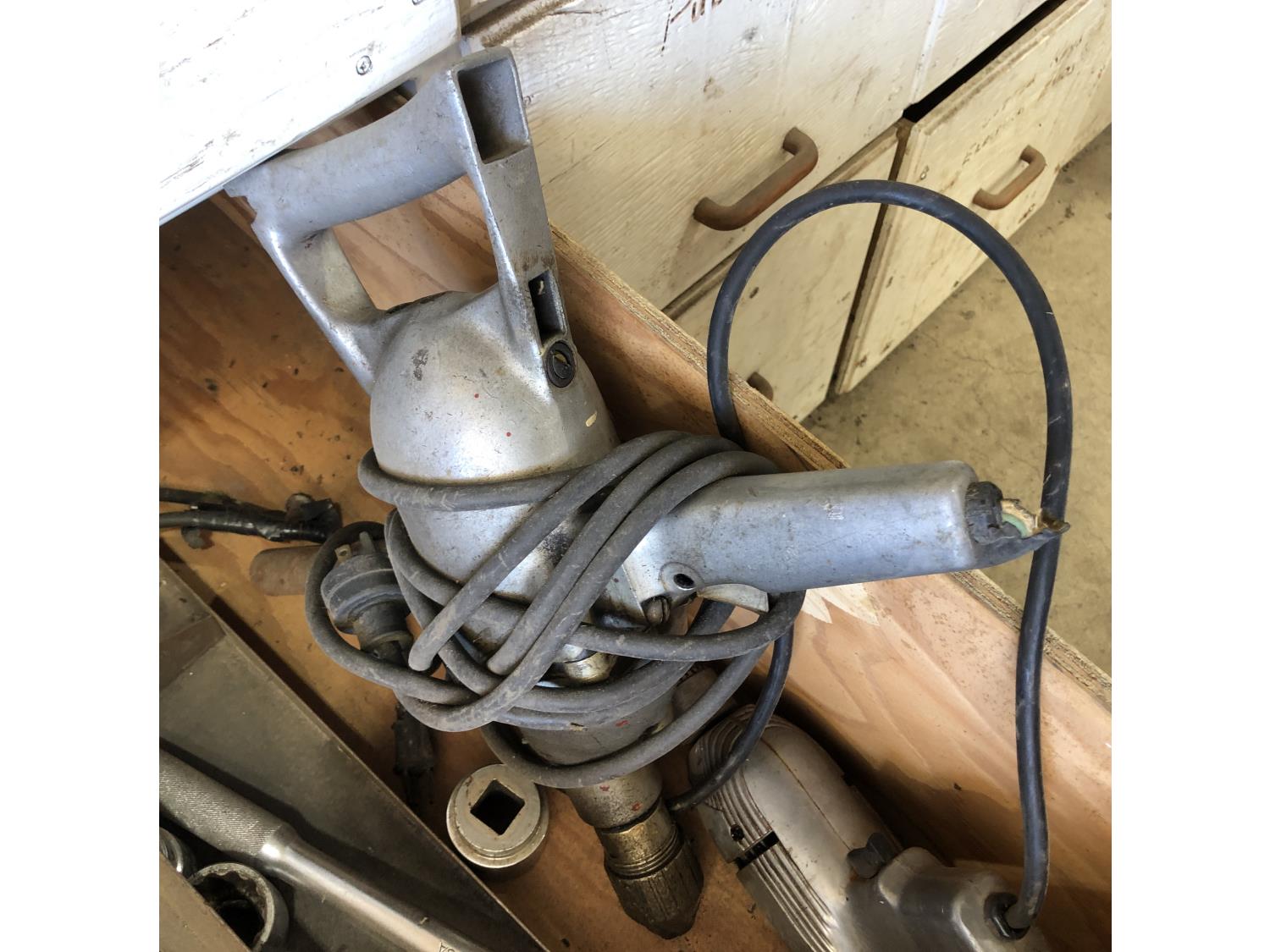 3/4 inch drive socket set, various hand saws, 3/4 inch ratchet extension and sockets, Artisan electric drill, various size shackles, Home utility 1/2 inch electric drill, various hammers **Note: drawers not included