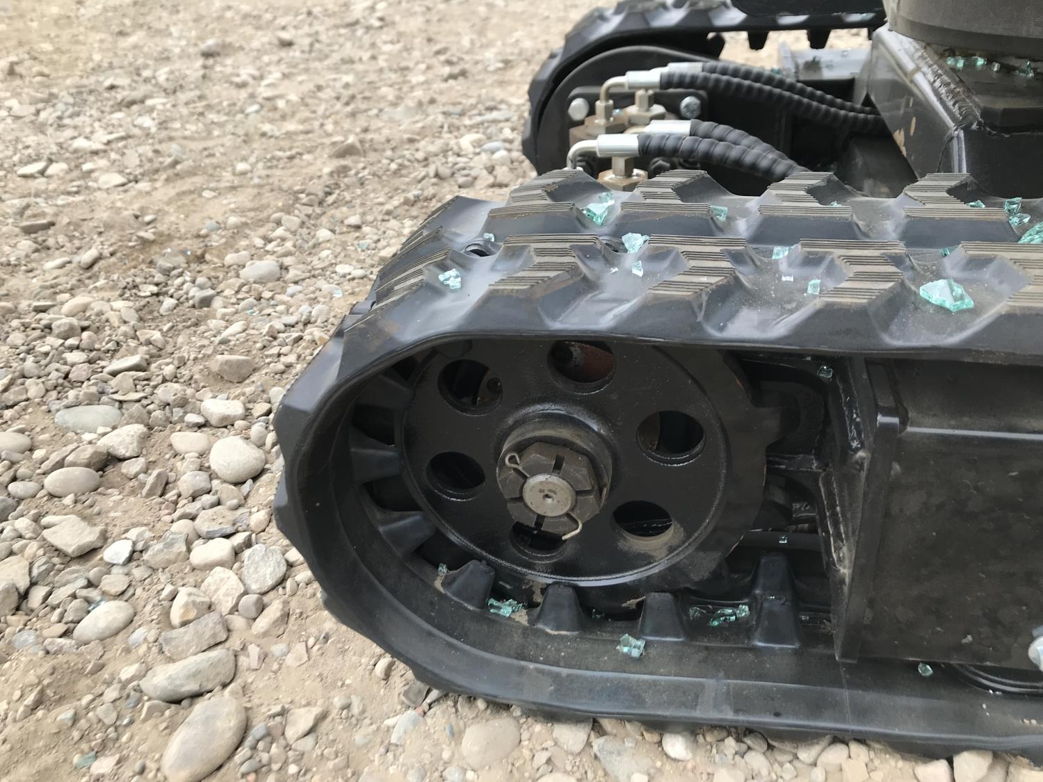 Enclosed cab, gas engine, 16 inch dig bucket, manual coupler, manual thumb, 31 inch stick, backfill blade, 7 inch rubber tracks