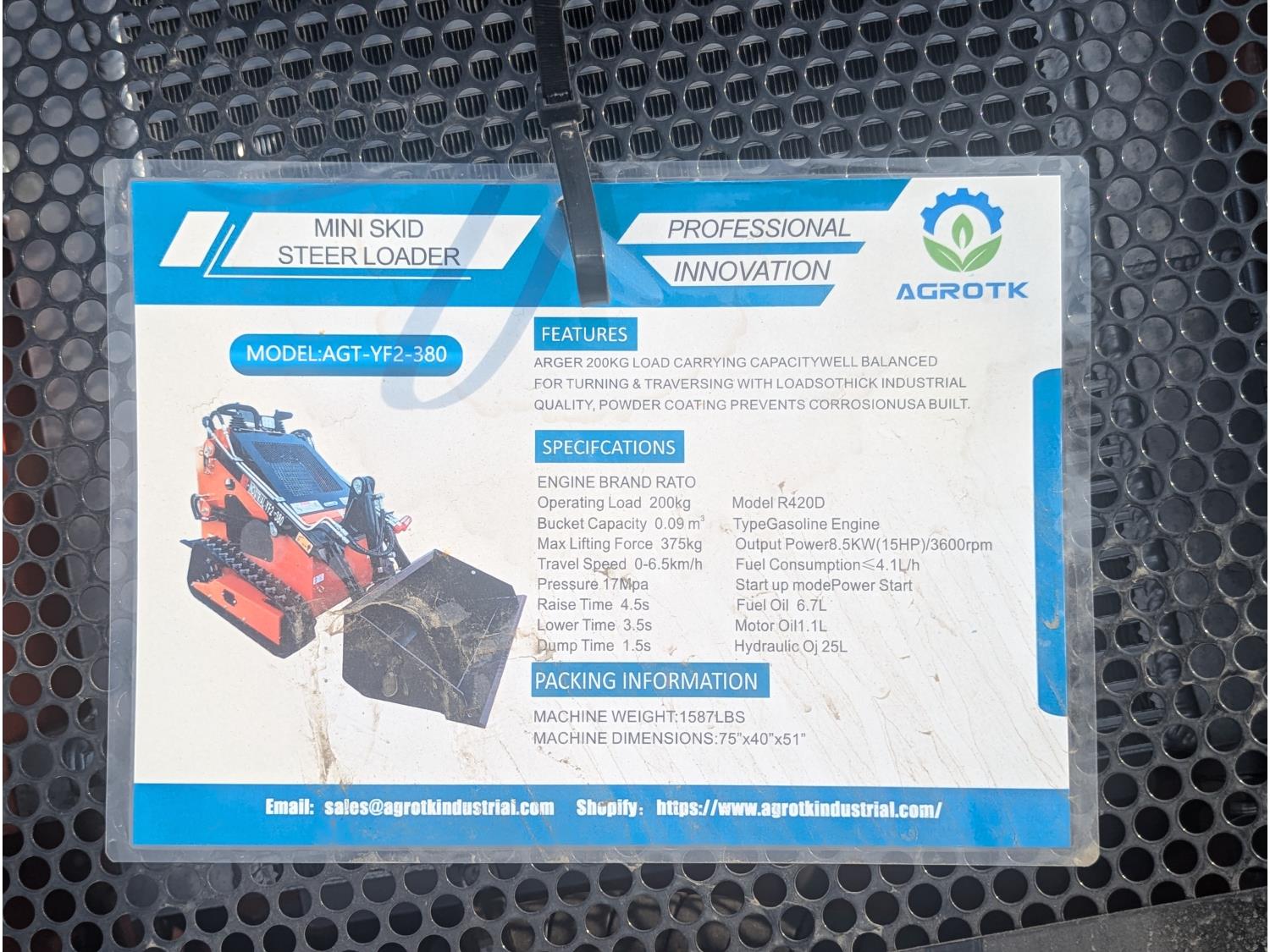1190 2024 YF2-380 Mini Stand On Tracked Skid Steer (Unused)