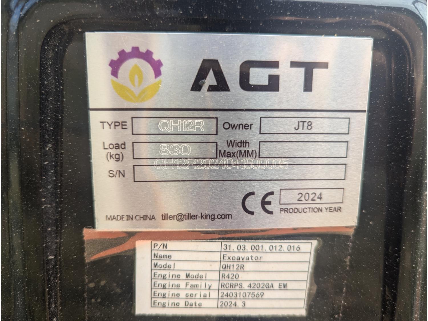 1256 2023 AGT QH12R Mini Excavator (Unused)