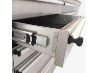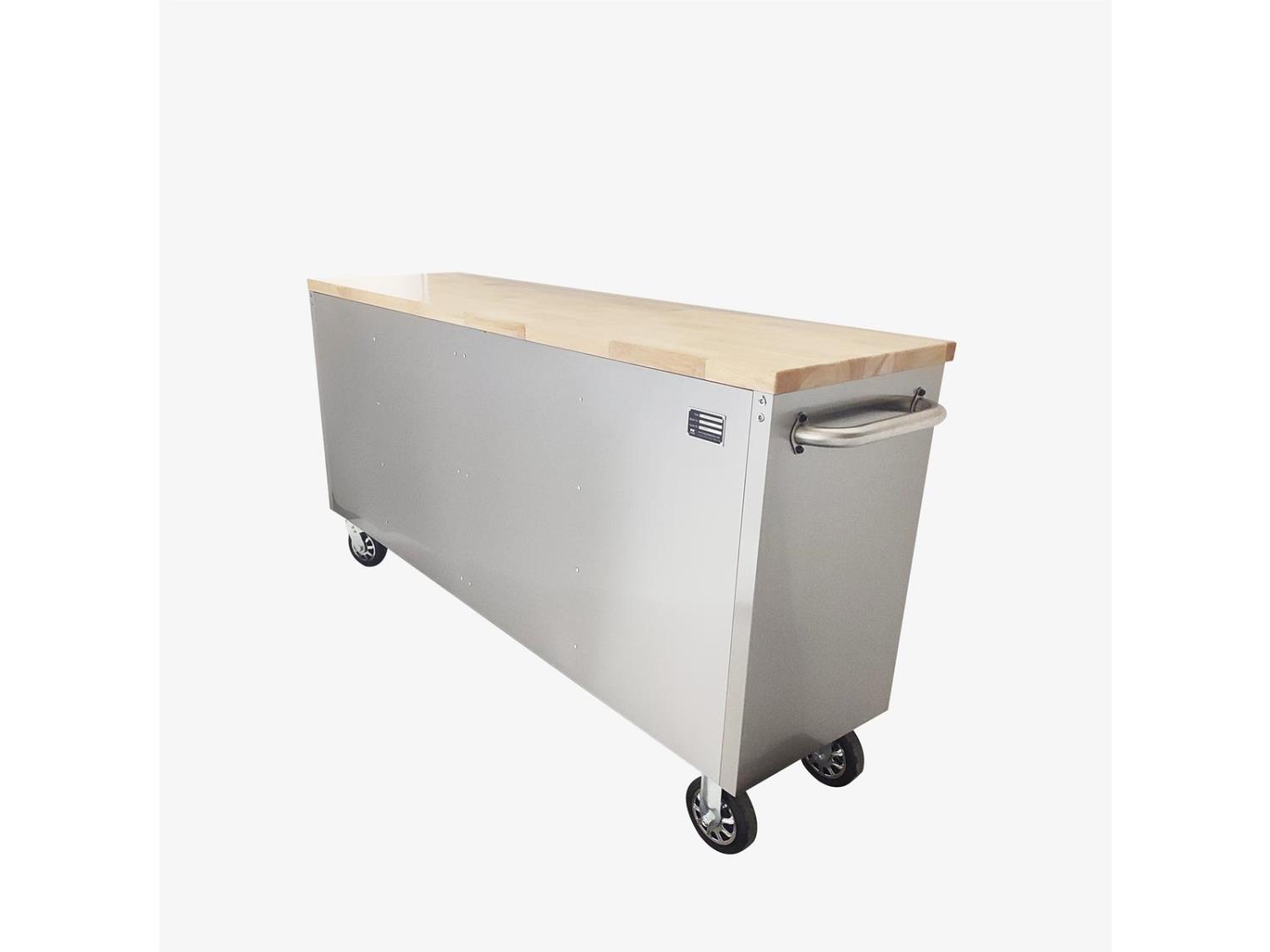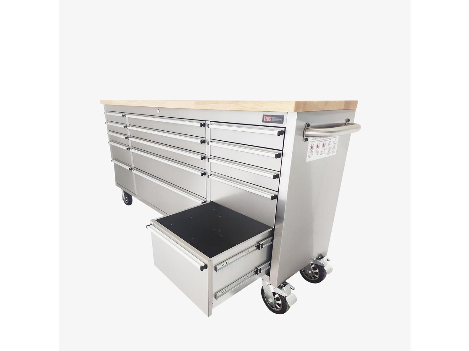 Rubberwood tabletop, 15 lockable drawers, locking wheels