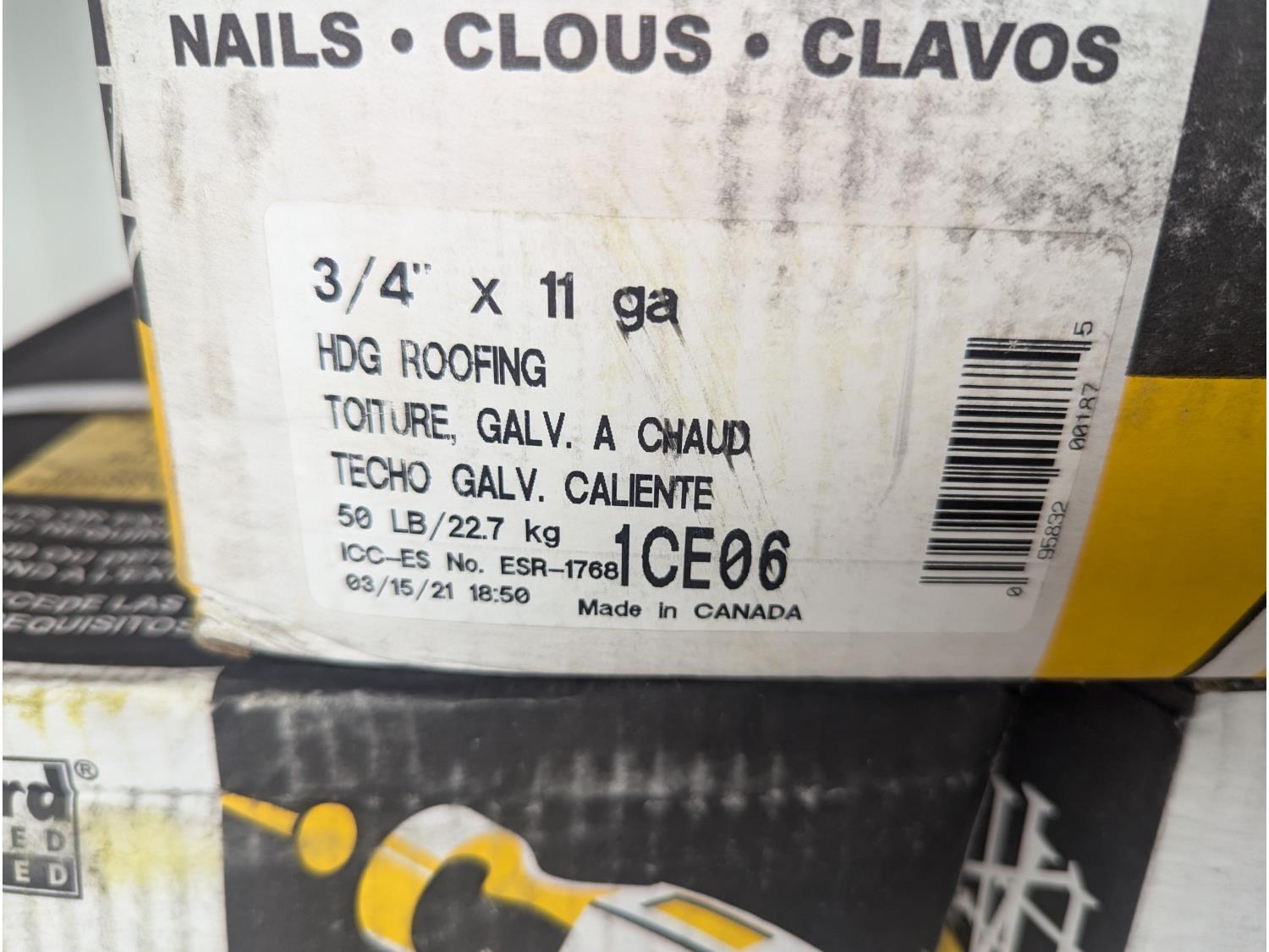 376 (3) Boxes 3/4 & 1 Inch X 11 Gauge Hdg Nails C1 (Unused)