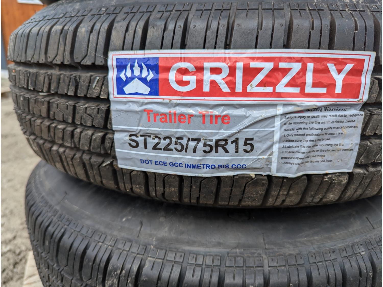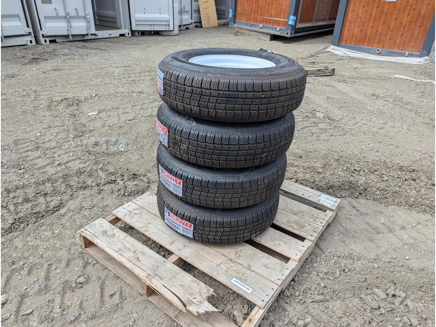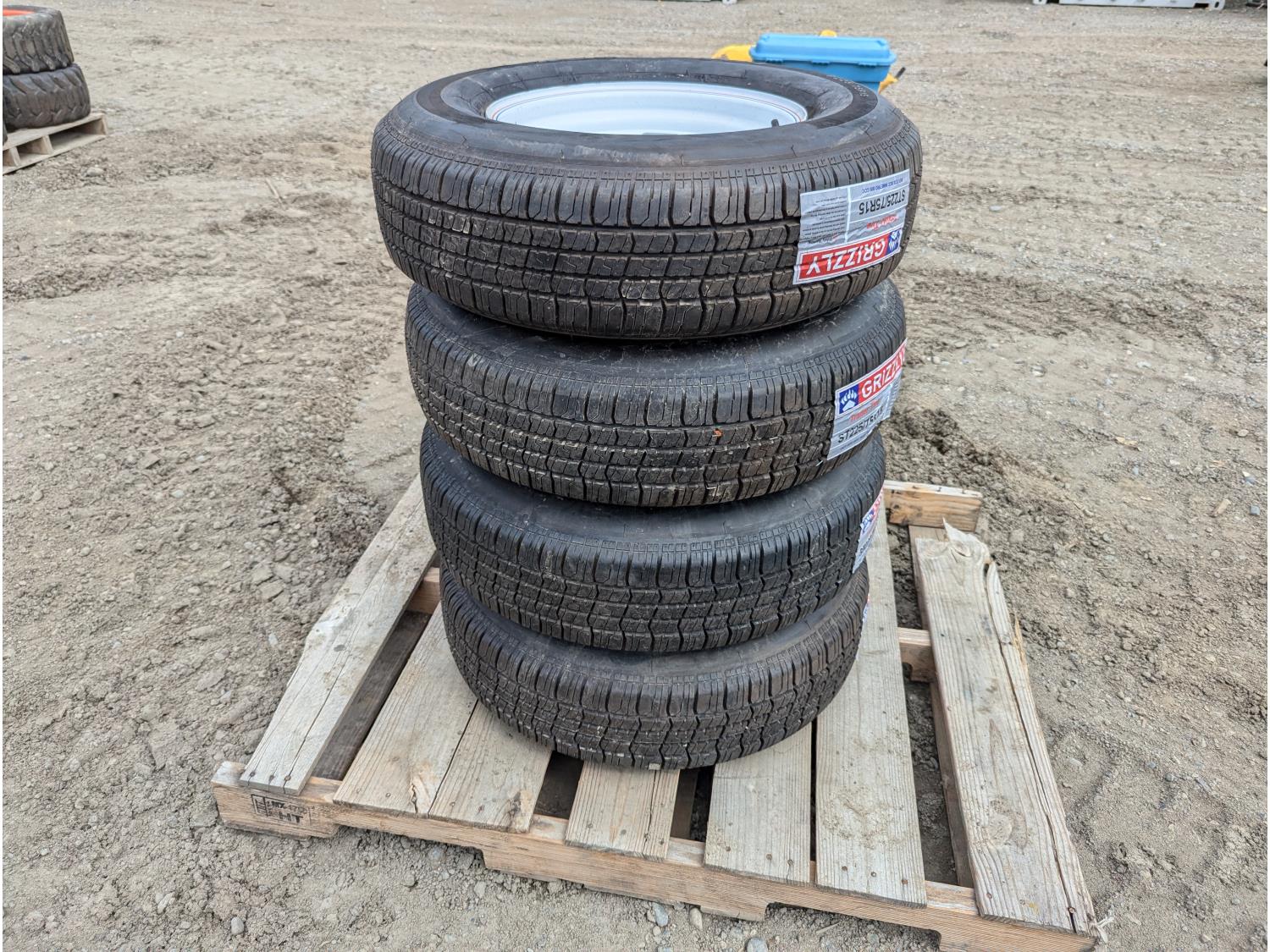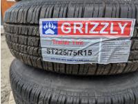 311 (4) Grizzley ST225/75R15 Trailer tires on Steel Wheels (Unused)