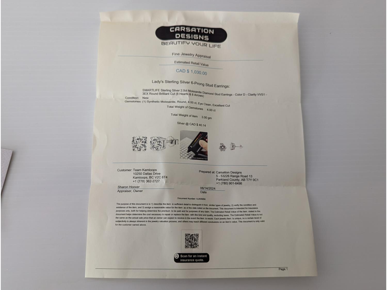 114 Smartlife 2.0Ct Moissanite Diamond Stud Earrings C4 (Unused)