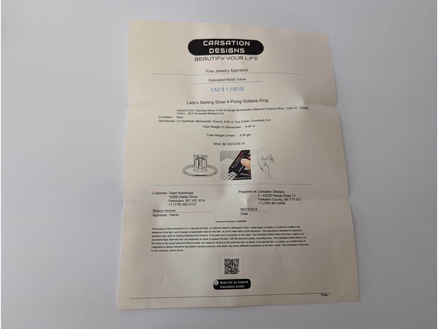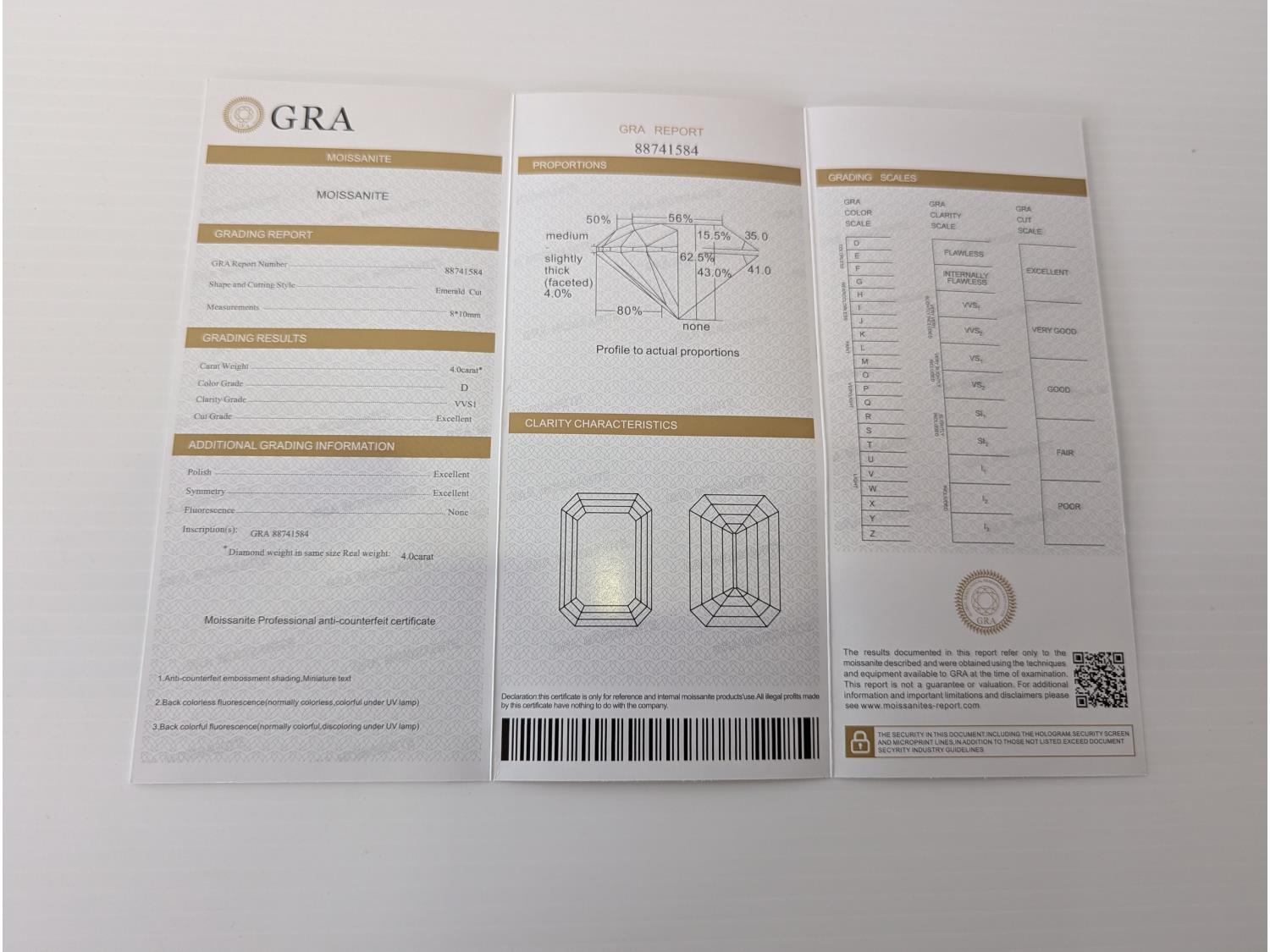 113 Smartlife 4.0Ct Moissanite Diamond Emerald Cut Ring C4 (Unused)