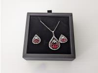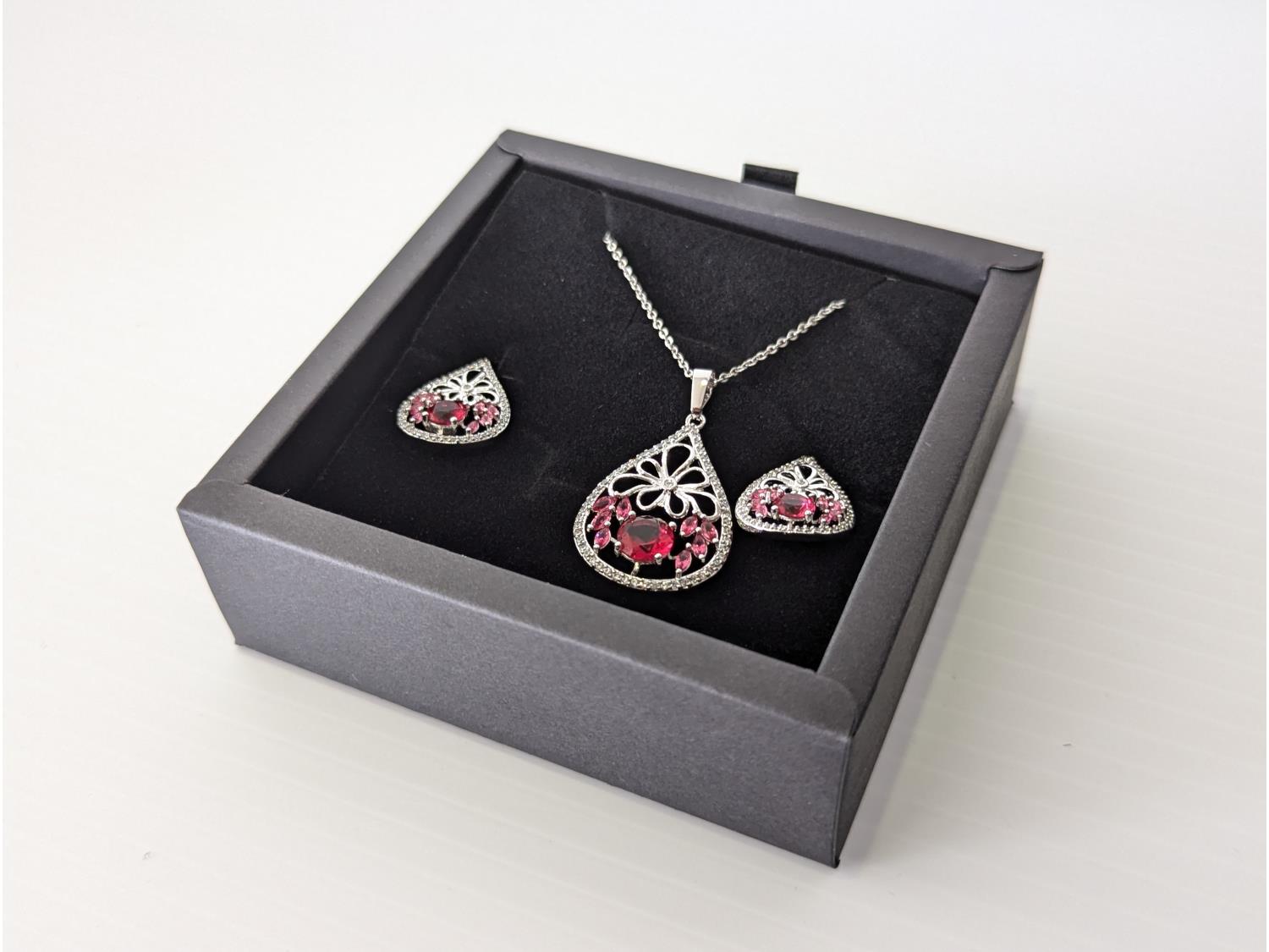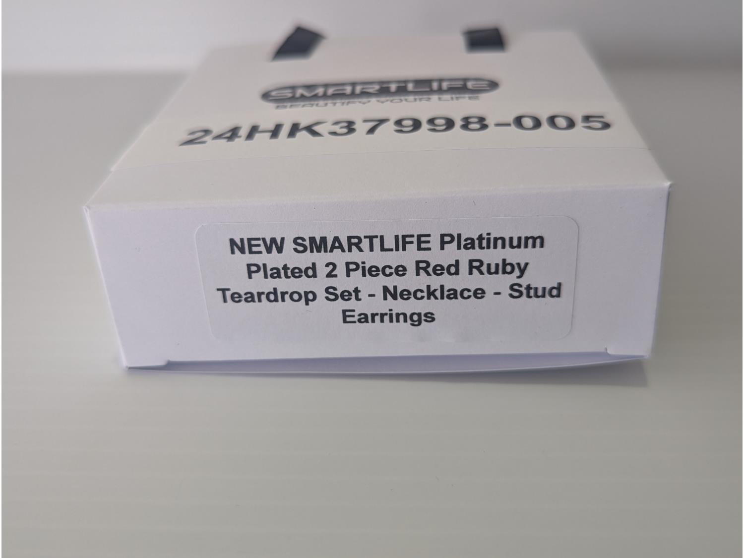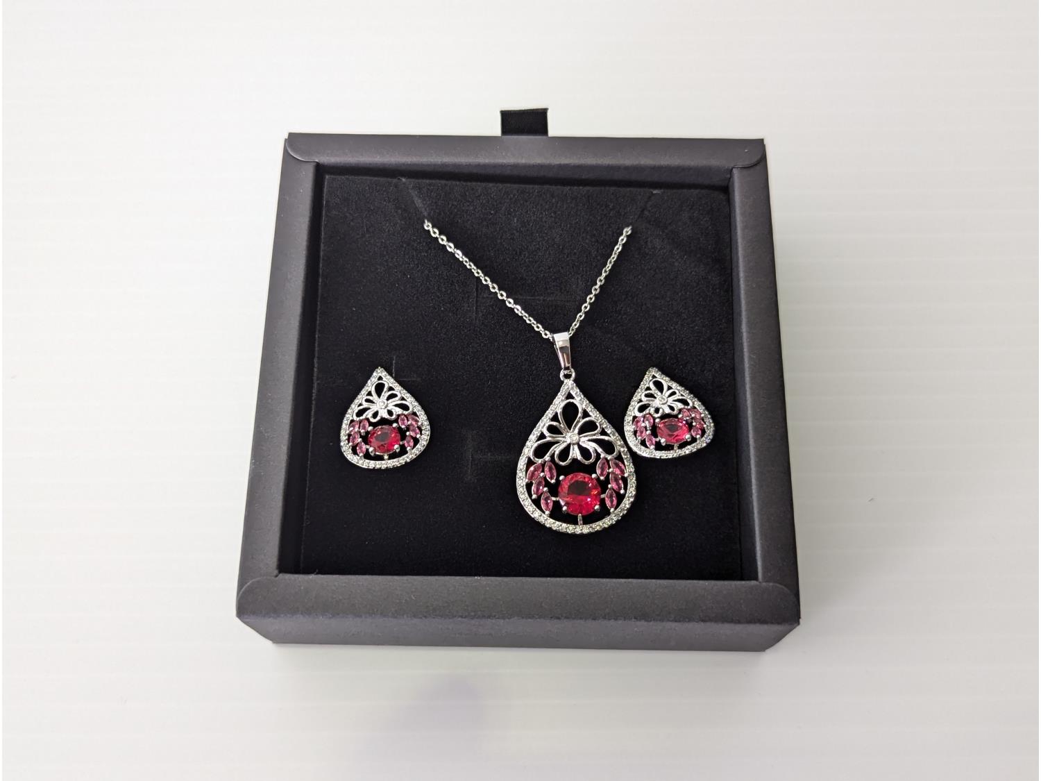 104 Smartlife Platinum Plated Red Ruby Teardrop Necklace & Stud Earrings C4 (Unused)