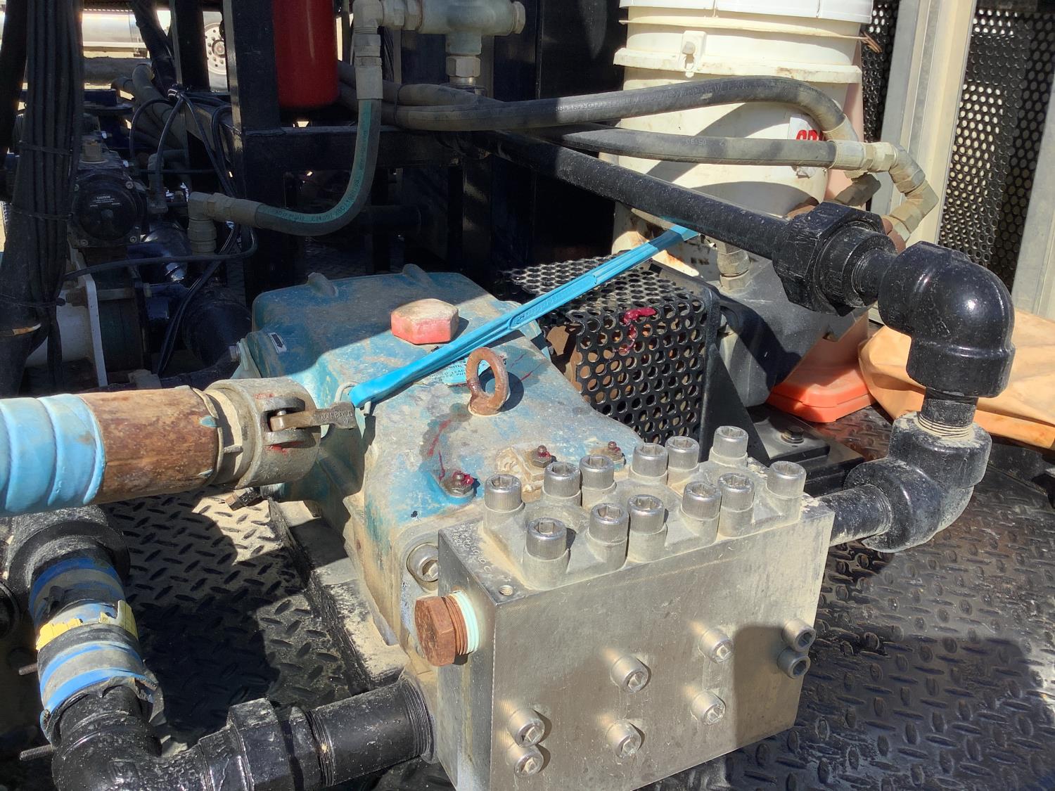 Caterpillar C-7 300 HP single turbo engine, positive air shut off, 8LL transmission, air ride suspension, 12,000 lb front axle, 40,000 rears, 3 way lockers, 11R22.5 tires, Hamms 2 compartment with 5175 liter capacity in each compartment, Roper 3 inch hydraulic drive pump 300 liters per minute, max pumping pressure 4500PSI, max testing pressure 5,000 PSI, max pumping pressure with CAT pump 60 liters per minute