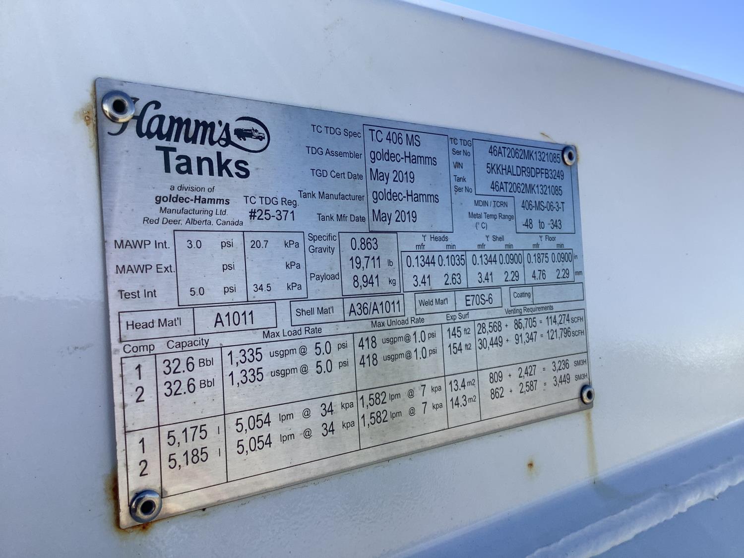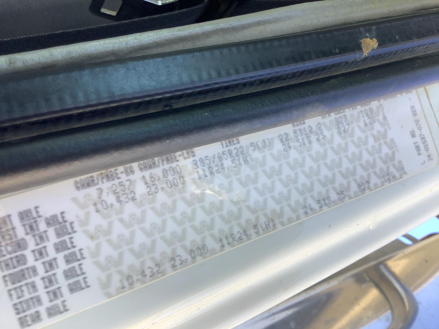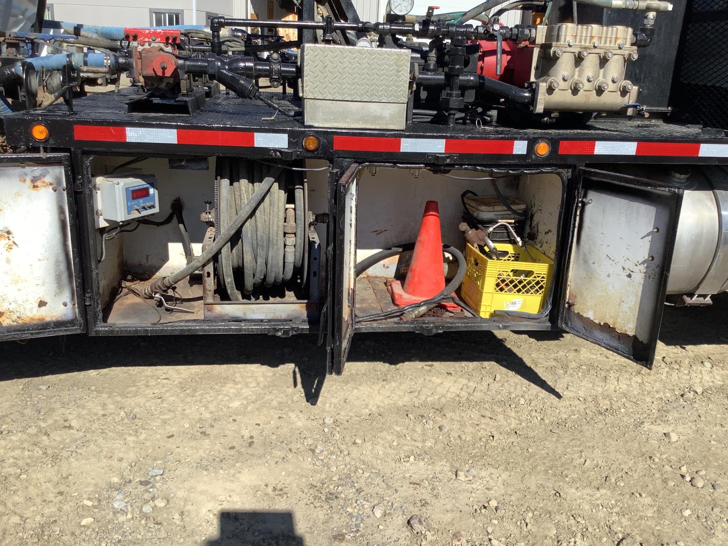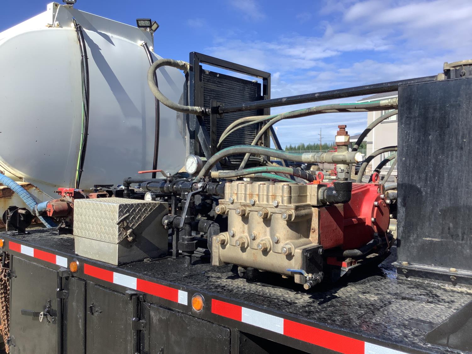 DD15 Detroit engine, positive air shut off, 18 speed transmission, air ride suspension, 16,000 lb front axle, 46,000 rears, full lockers, all aluminum rims, 285/65R22.5 front and 11R24.5 rear tires, current CVIP, Hamms 2 compartment 10,000 Liter tank TC406 code max pump pressure for giant pump 4500 PSI, max pumping rate for the big pump is 180 Liter/ minute, max test pressure for little giant pump 10,000 PSI, max pumping rate for little giant pump 30-Liter per minute, max pumping rate for 3- inch roper pump 300-Liter per minute