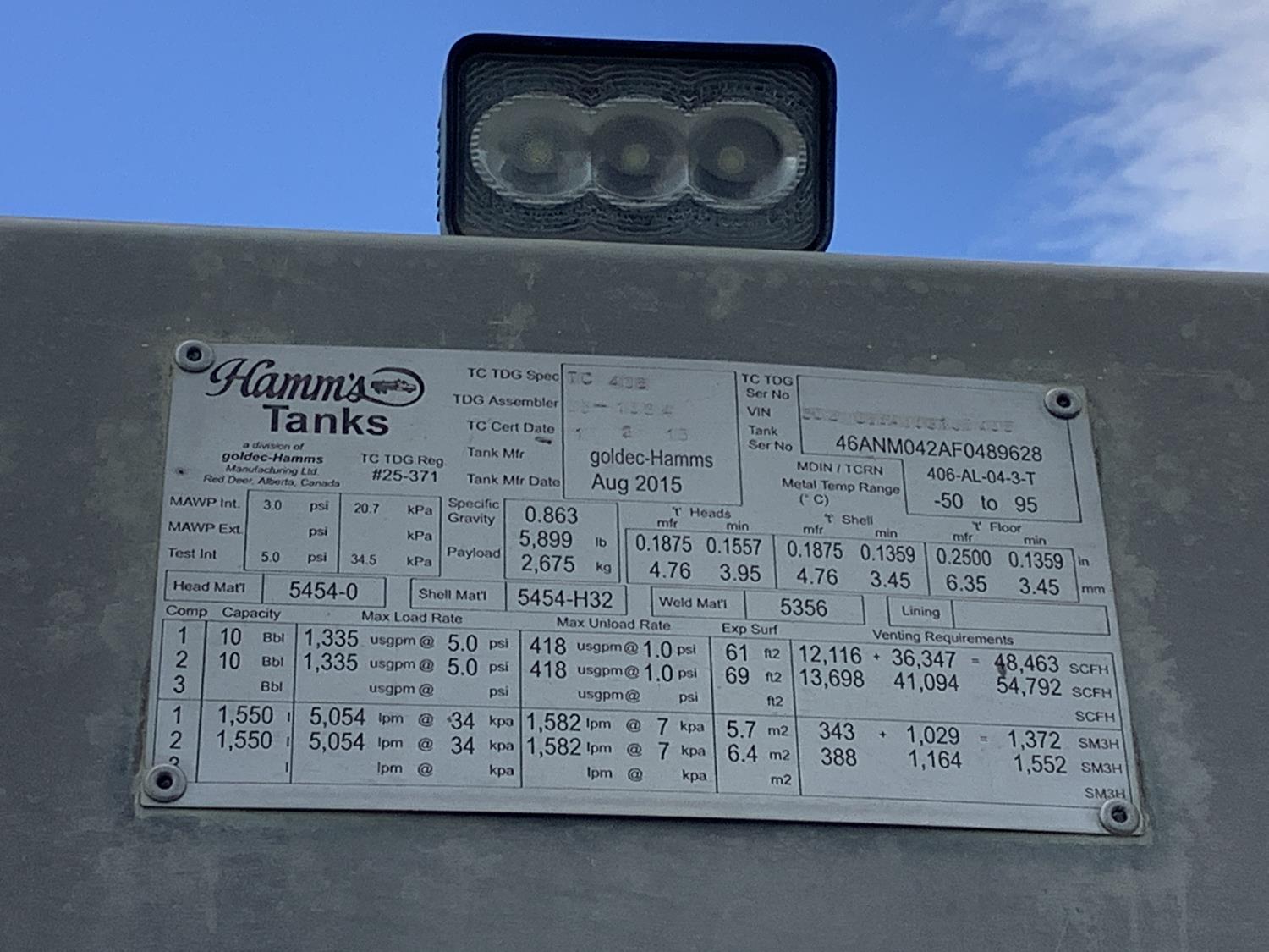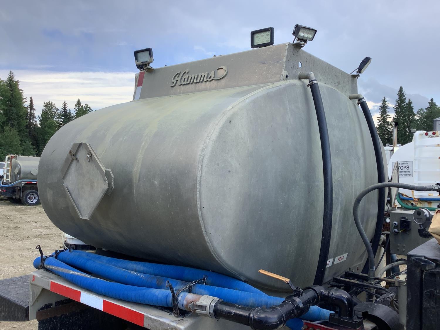 Cummins 6.7 Diesel engine, automatic transmission, Hamms 2 compartment 3000 liter aluminum TC-406 tank, max pressure 45000 PSI, testing pressure 5000 PSI, maximum pumping rate with Cat 60 liters/min, 2 inch Roper pump with 200 liters/min245/70R19.5 tires