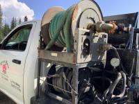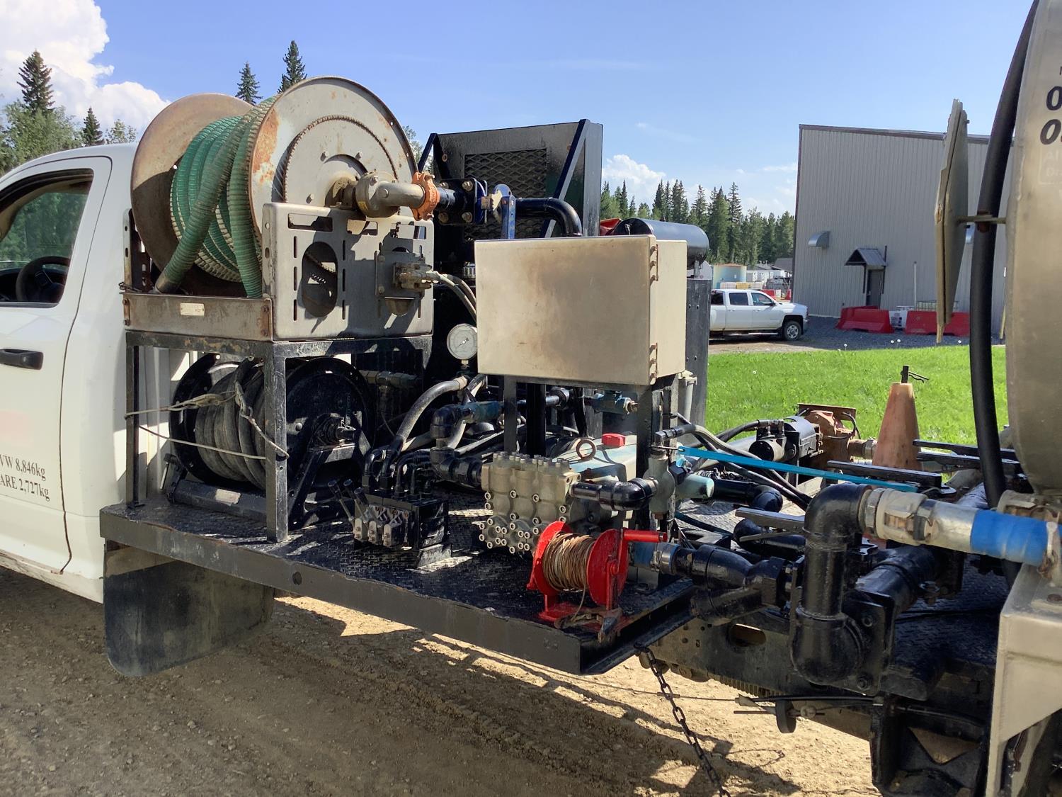 Cummins 6.7 liter diesel engine, automatic transmission, Hamms TC406 aluminum tank 2 compartment 3,000 Liter capacity, Max pump pressure 4500 PSI, max testing pressure 5,000 PSI, cat pumping rate 60 liters per minute, Roper 2 inch hydraulic drive pump 200 Liter per minute, tool boxes, 255/70R19.5 tires