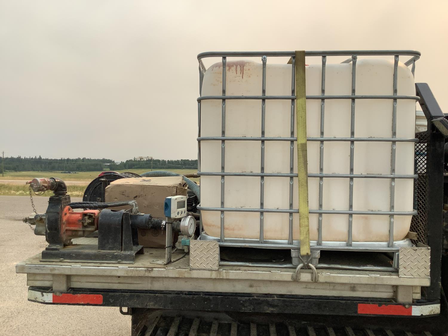 Specs are Max pumping pressure of cat pump 4000PSI, max testing pressure for cat pump 5000 PSI, pumping rate 60 Liter per minute, Hydraulic drive 2 inch roper pump 200 liters per minute, water capacity 2000 liters.