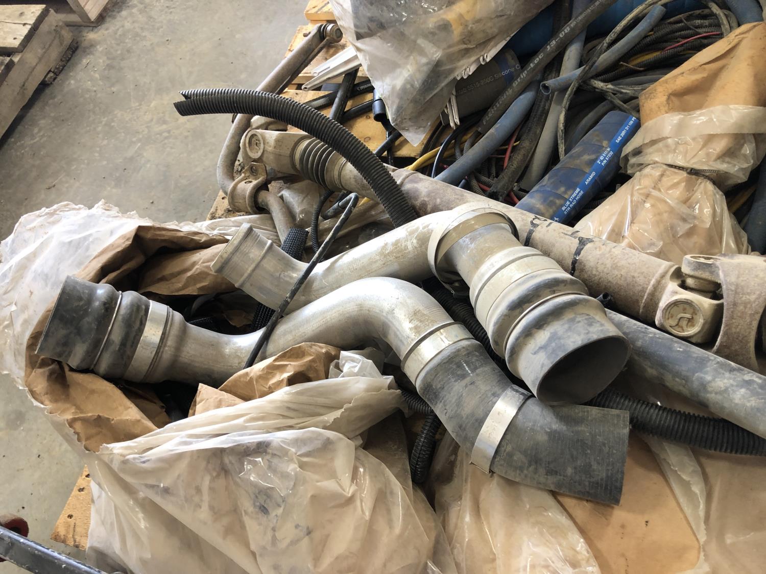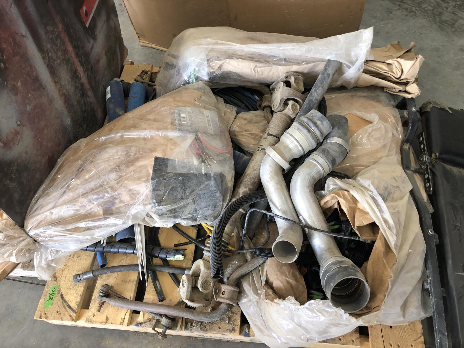 Mechanic's creeper, exhaust and hose fittings, right angle brackets, drive shaft, miscellaneous hardware