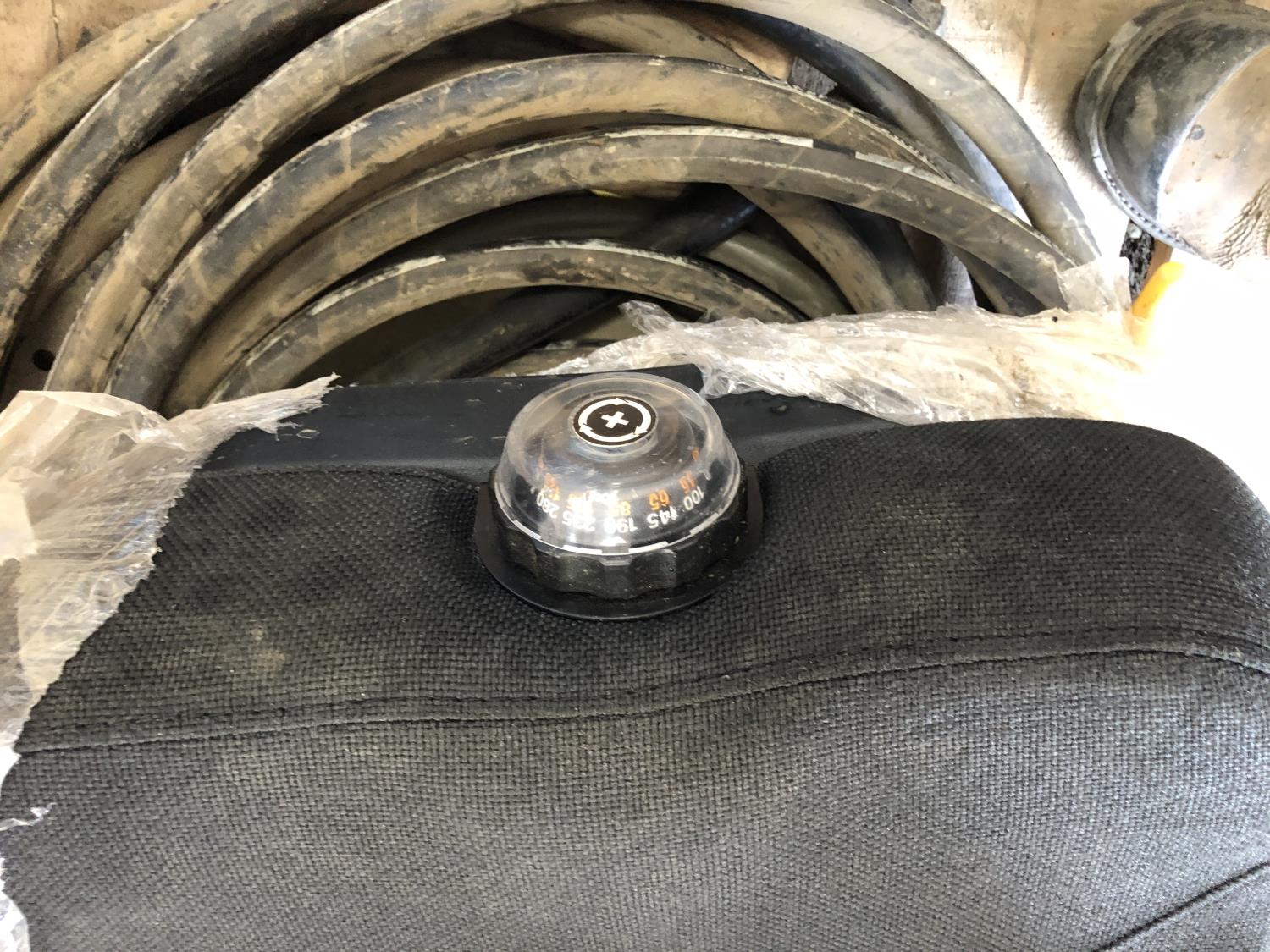 (11) Microclip X3 chargers, (2) 30 inch x 24 inch heavy duty mud flaps, 1/2 inch hydraulic hose, Ardco vehicle seat, seat covers, (2) adjustable links