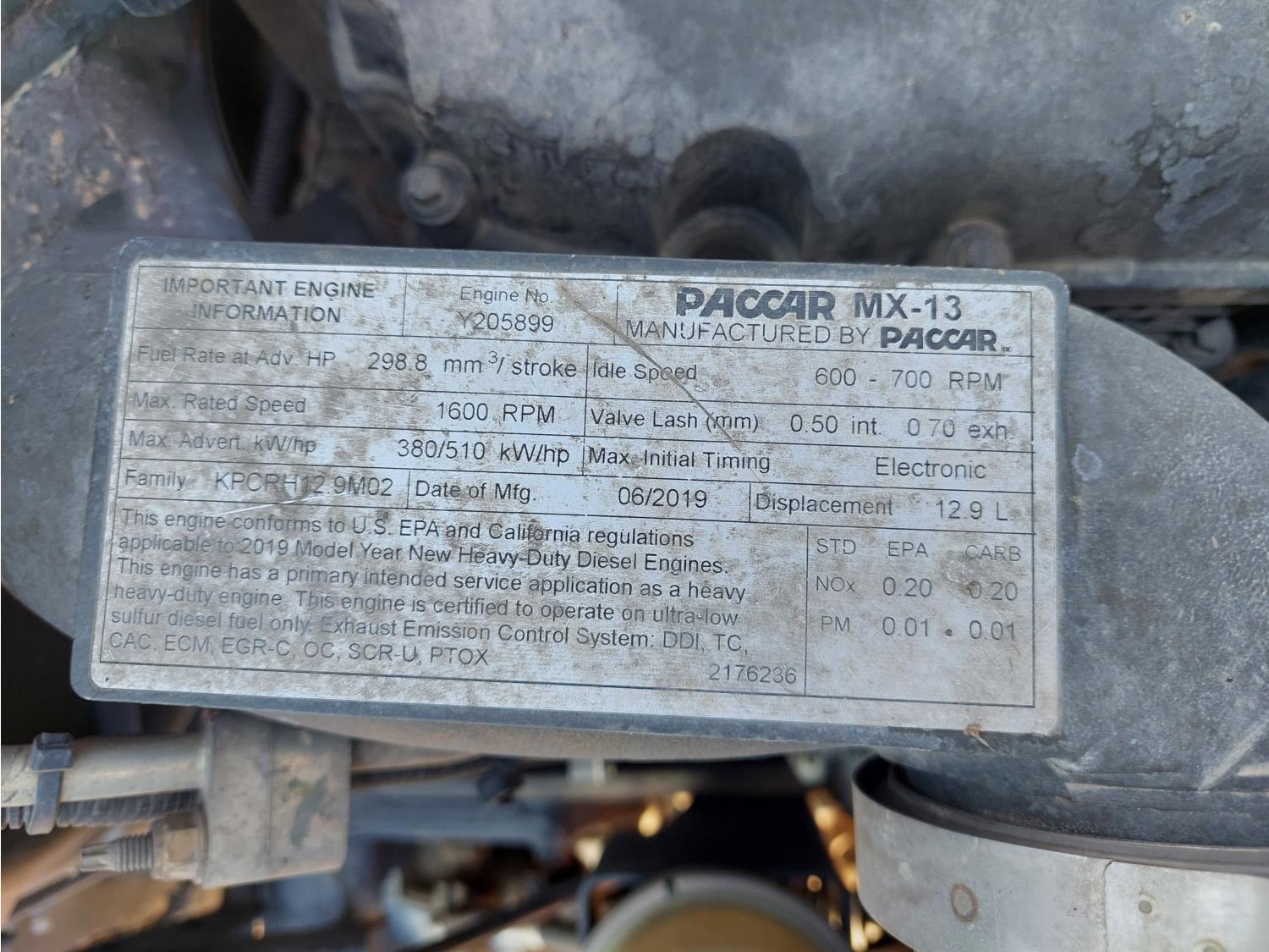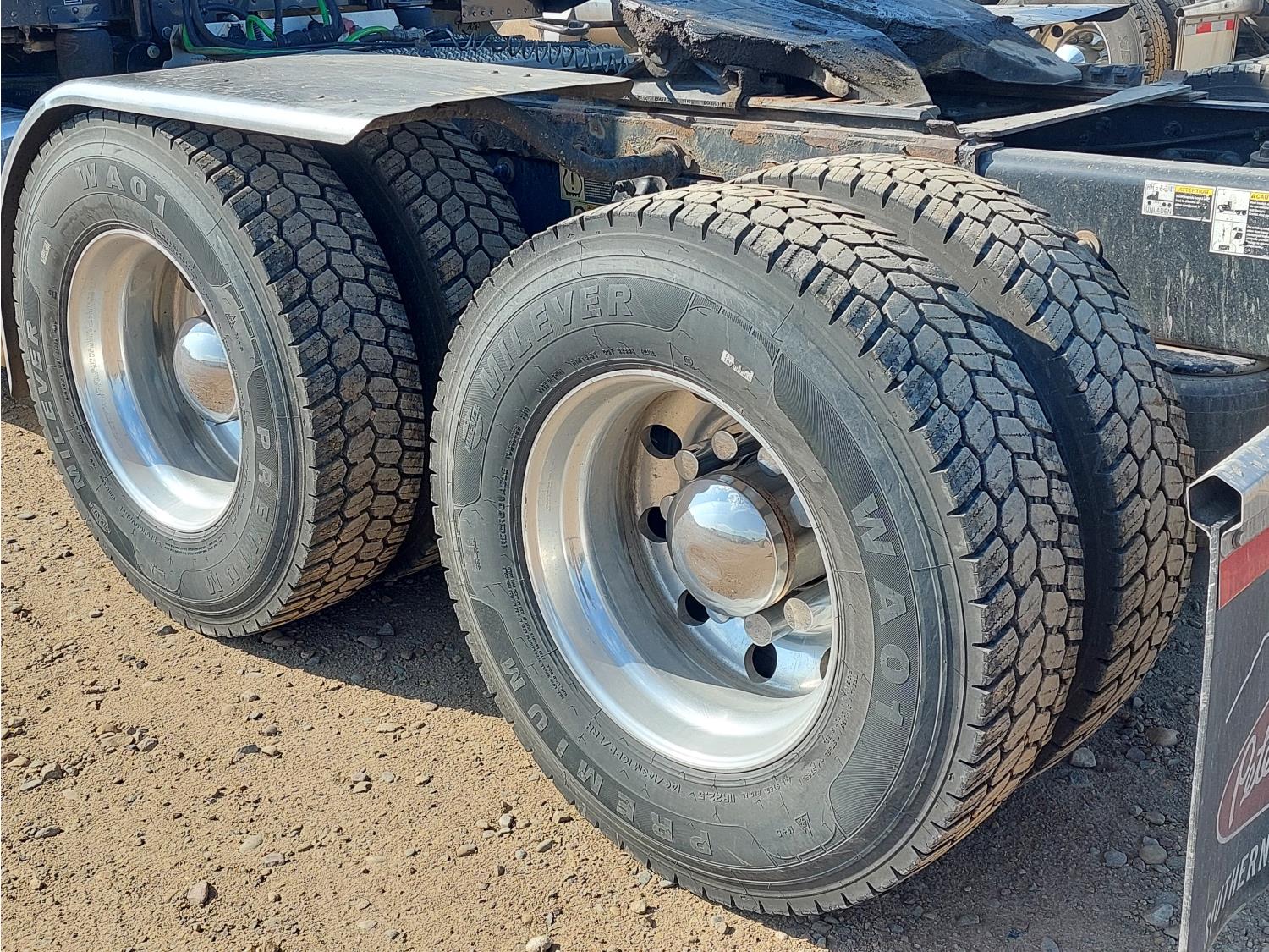 Paccar 12.9 L 6 cylinder 510 HP engine, DEF required, Webasto engine heater, engine brake, engine block heater, Eaton Fuller 18 speed manual transmission, cab heater, mid rise 60 inch sleeper, fridge, A/C, cruise control, leather interior, air ride seats, CB radio, stereo, air ride cab, power inverter, air ride cab, air ride suspension, 13,200 lb front axle, 40,000 lb rear axles, full lockers, 240 inch WB, single frame, all aluminum wheels, 11R22.5 tires