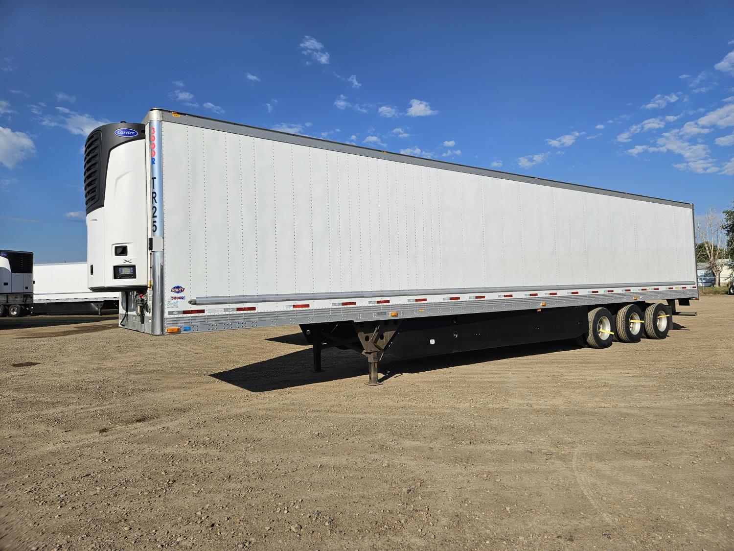 8 ft 6 inch van width, 114 inch height, Carrier reefer, reefer chute, rear swing doors, 2 speed landing gear, air scales, skirt, insulated, air brakes, air ride suspension, 20,000 lb axles, all aluminum wheels, 11R22.5 tires
