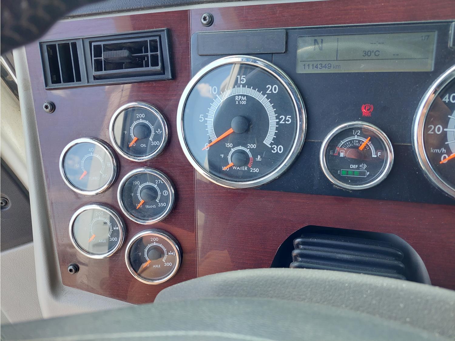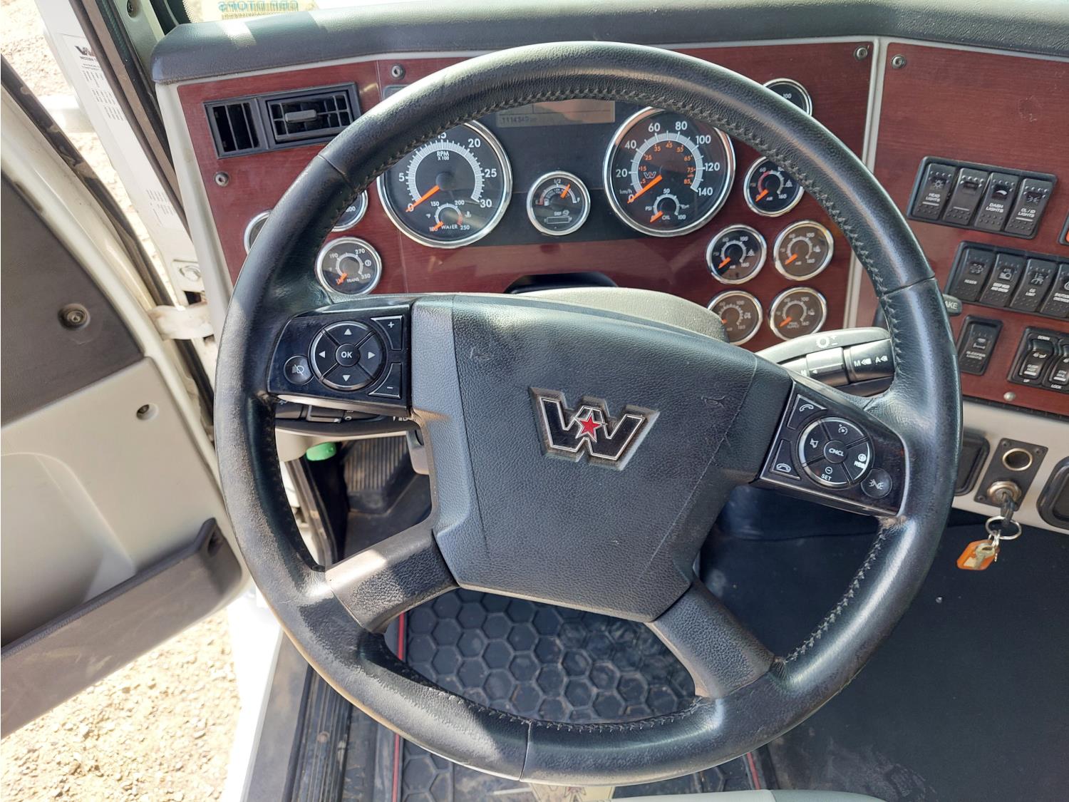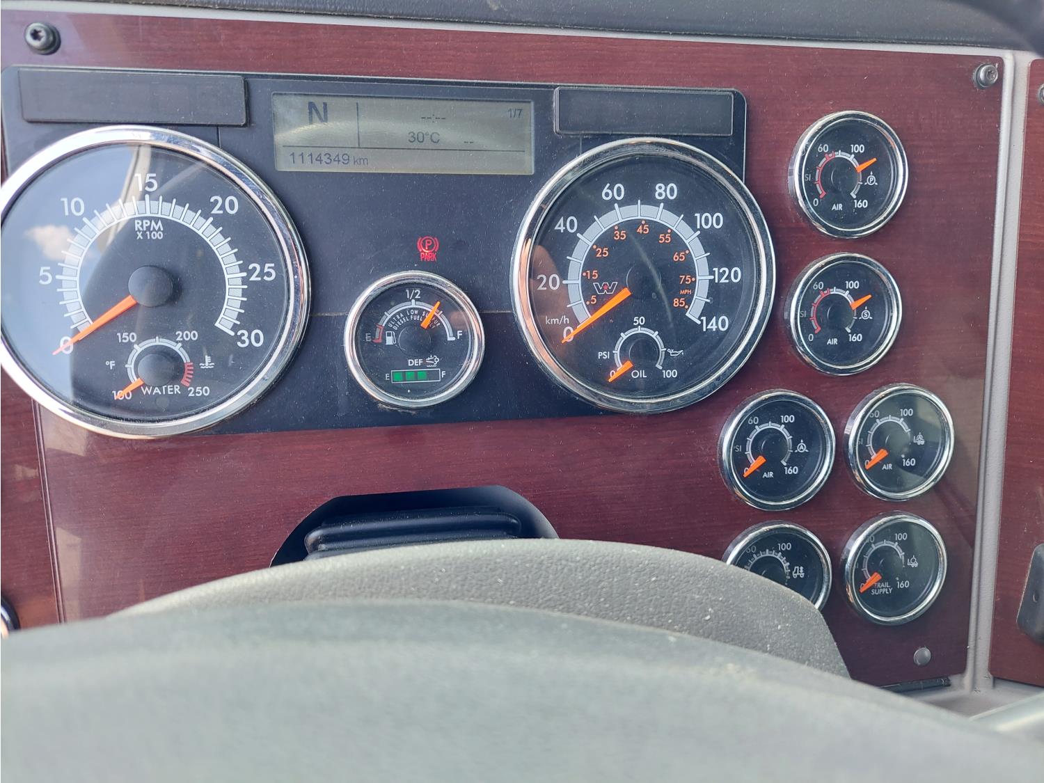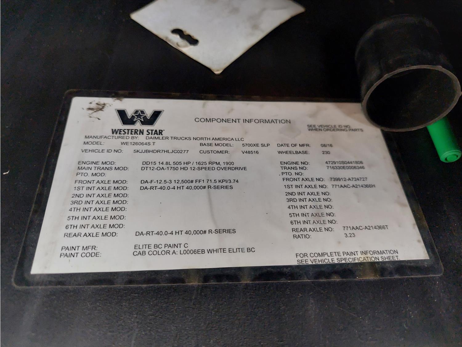 Detroit DD15 14.8 L 6 cylinder 505 HP engine, DEF deleted, engine brake, engine block heater, emissions deleted, Detroit DT12 12 speed automatic transmission, cab heater, mid rise 60 inch sleeper, fridge, bunk beds, A/C, cruise control, leather interior, air ride seats, 2-way radio, air ride cab, power inverter, air ride cab, Air Liner air ride suspension, 12,350 lb front axle, 40,000 lb rear axles, full lockers, 3.23 ratio, 230 inch WB, all aluminum wheels, 11R22.5 tires