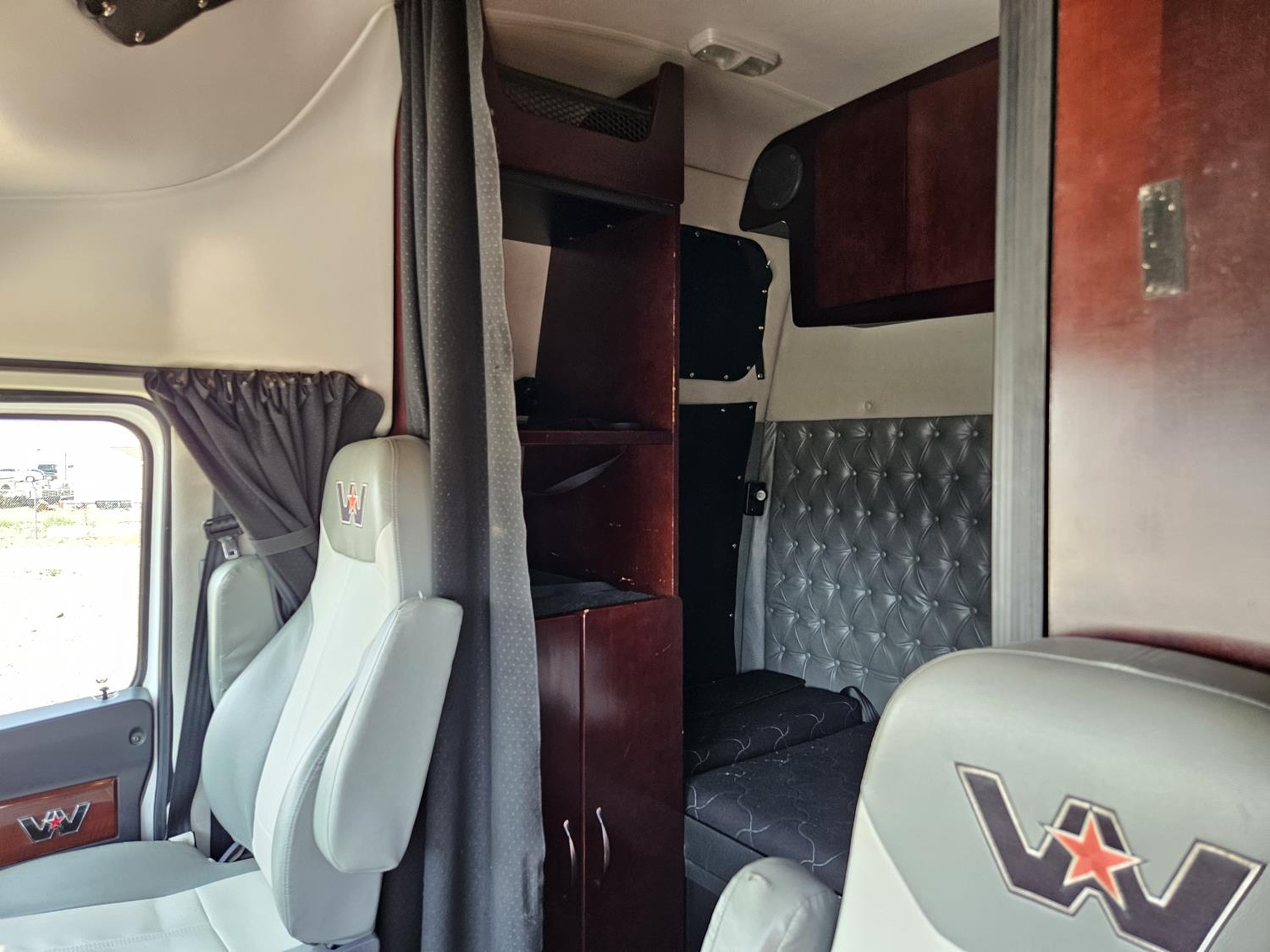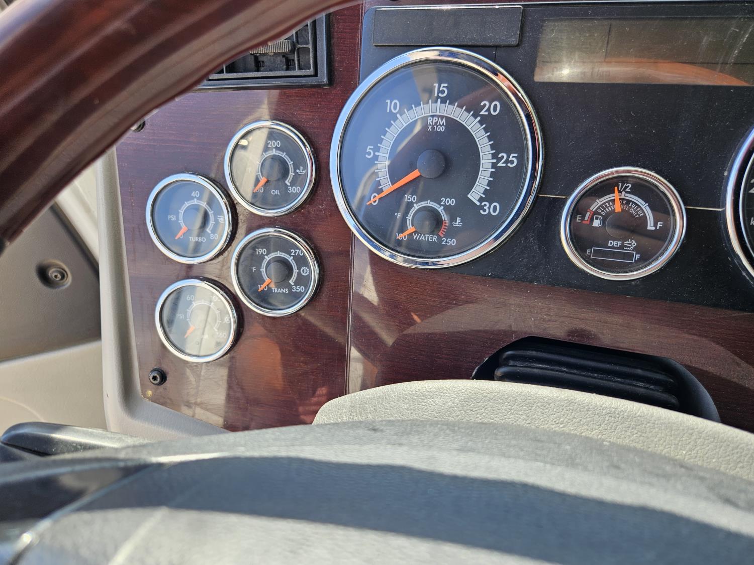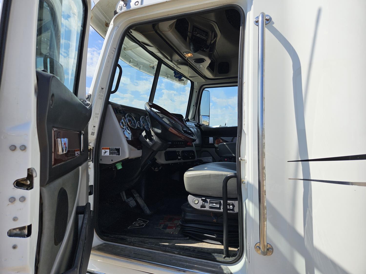 Detroit DD15 14.8 L 6 cylinder 505 HP engine, DEF required, engine brake, engine block heater, DT12 12 speed automatic transmission, Webasto cab heater, high rise 64 inch sleeper, fridge, A/C, cruise control, leather interior, air ride seats, radio, CB radio, stereo, air ride cab, air ride suspension, 12,500 lb front axle, 40,000 lb rear axles, full lockers, 3.08 ratio, 225 inch WB, all aluminum wheels, 11R22.5 tires