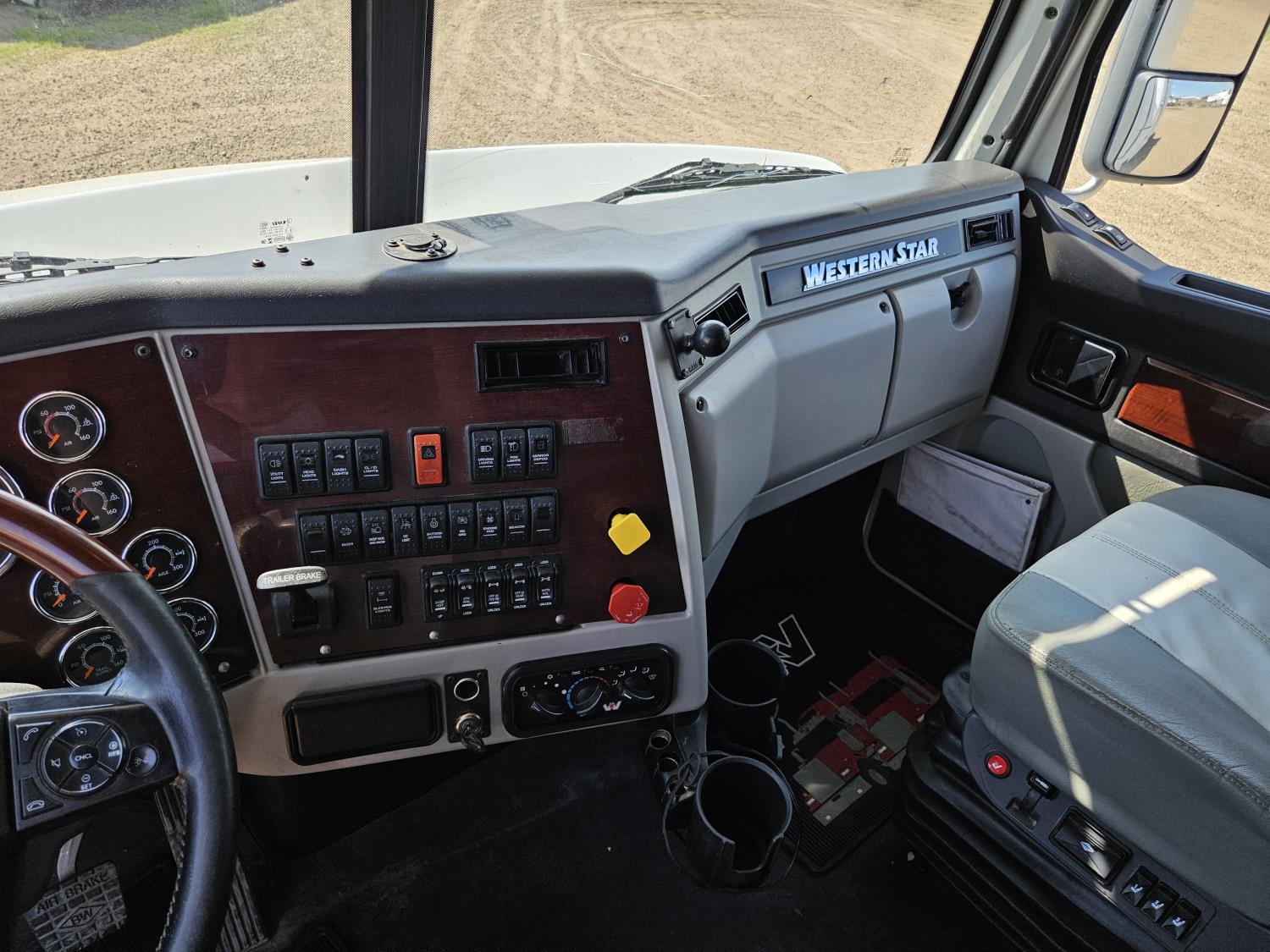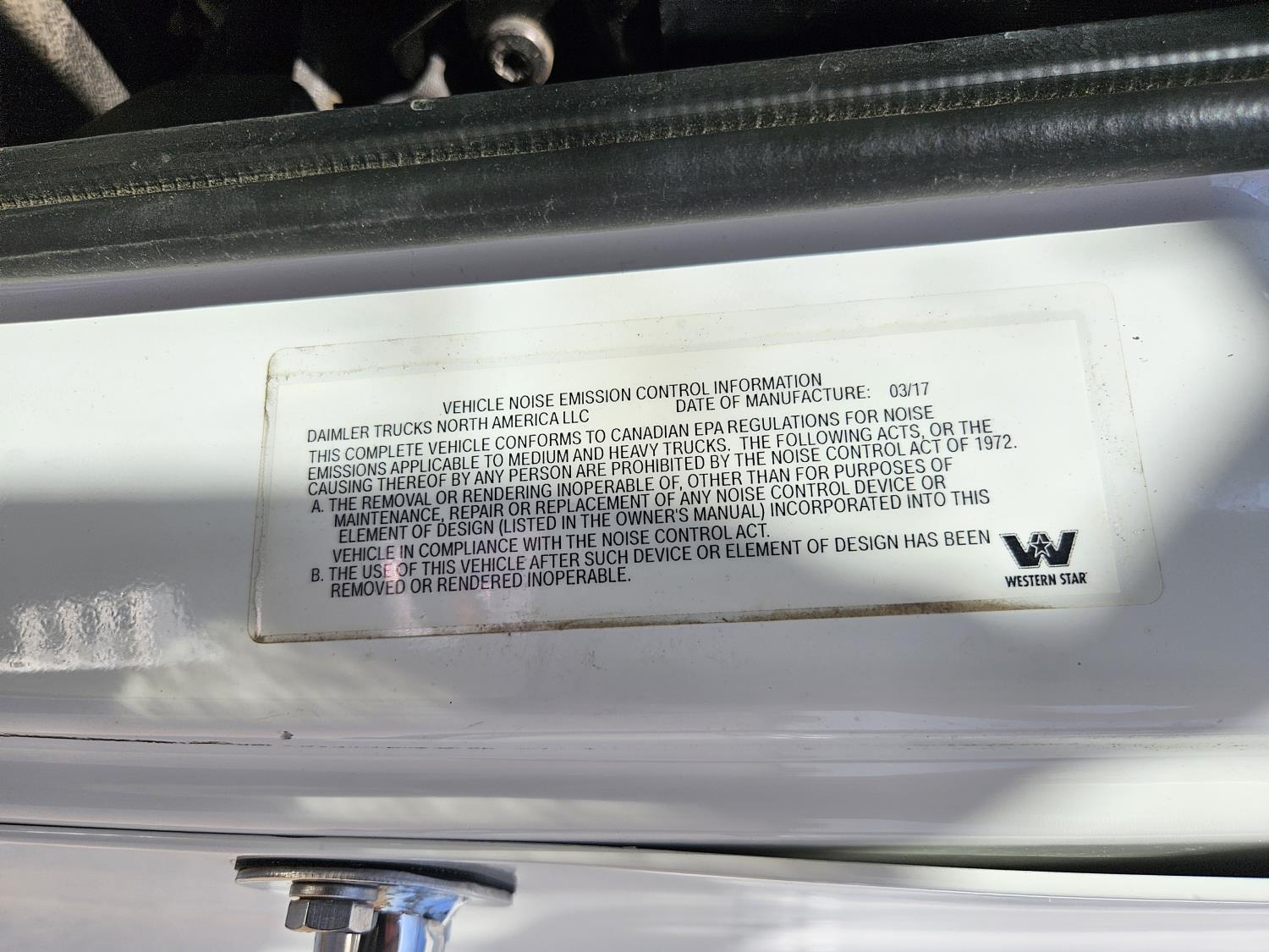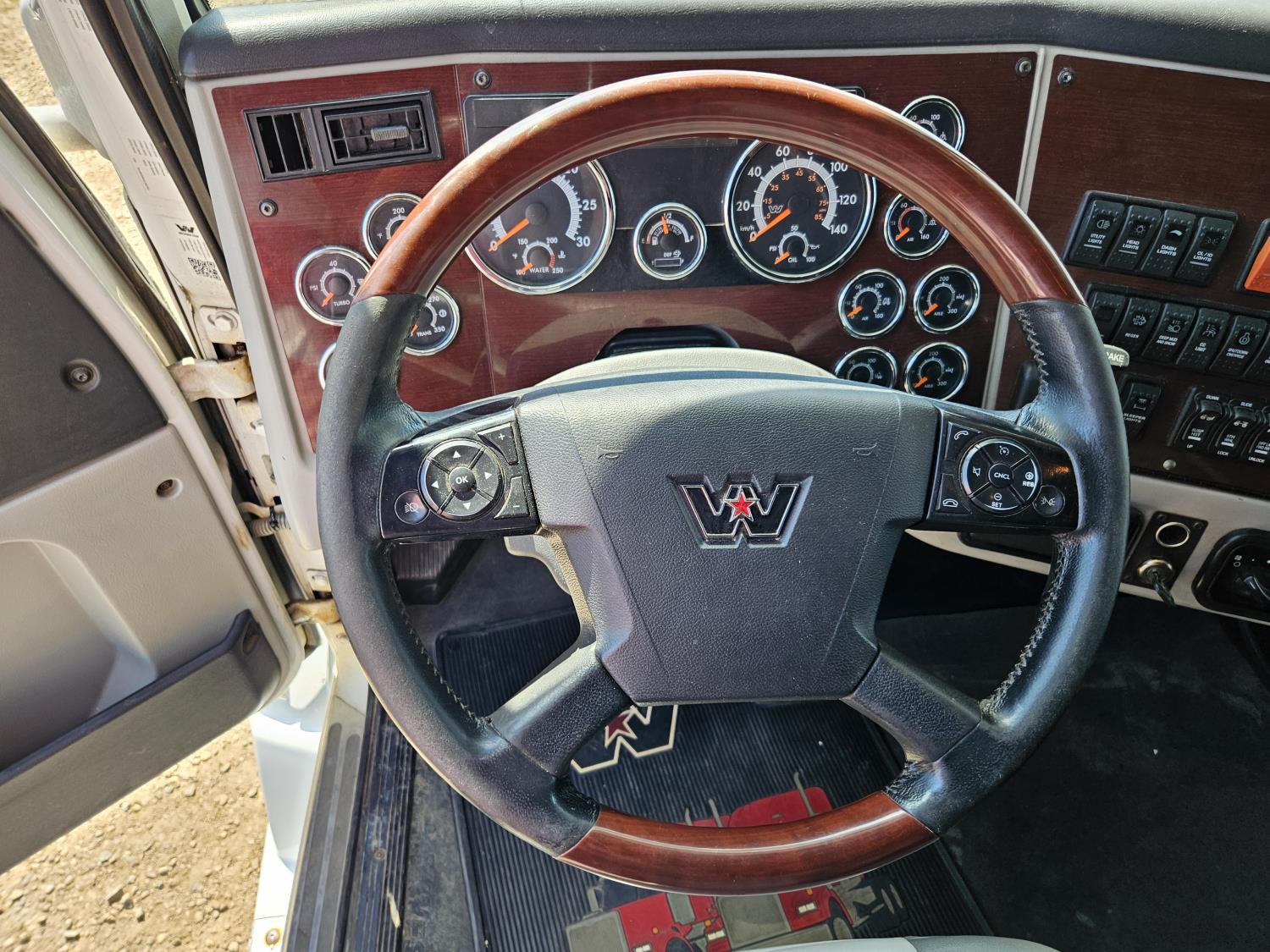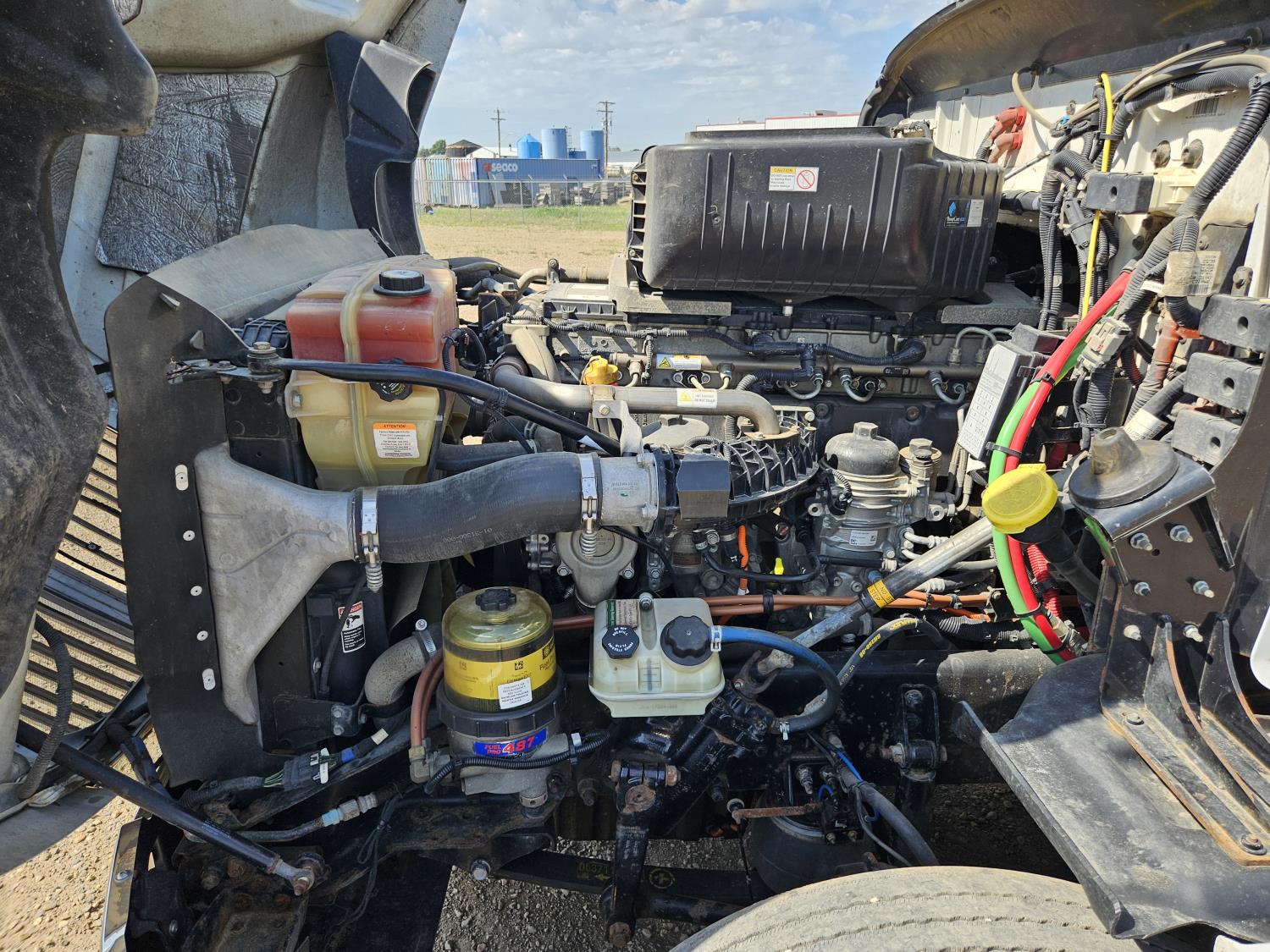 Detroit DD15 14.8 L 6 cylinder 505 HP engine, DEF required, engine brake, engine block heater, DT12 12 speed automatic transmission, Webasto cab heater, high rise 64 inch sleeper, fridge, A/C, cruise control, leather interior, air ride seats, radio, CB radio, stereo, air ride cab, air ride suspension, 12,500 lb front axle, 40,000 lb rear axles, full lockers, 3.08 ratio, 225 inch WB, all aluminum wheels, 11R22.5 tires