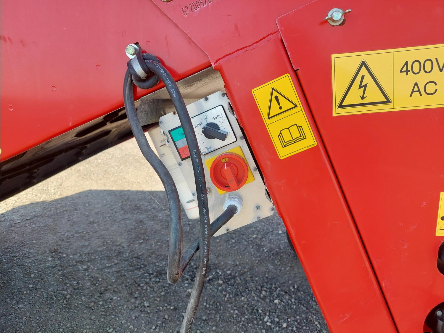 6 roller pickup cleaner, hydraulic drive, 480V, 3 ph, straight discharge for main product, dirt cross belt