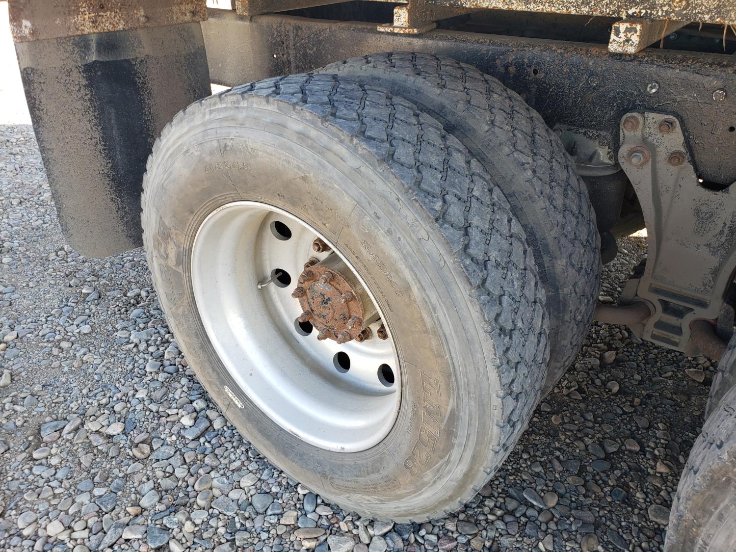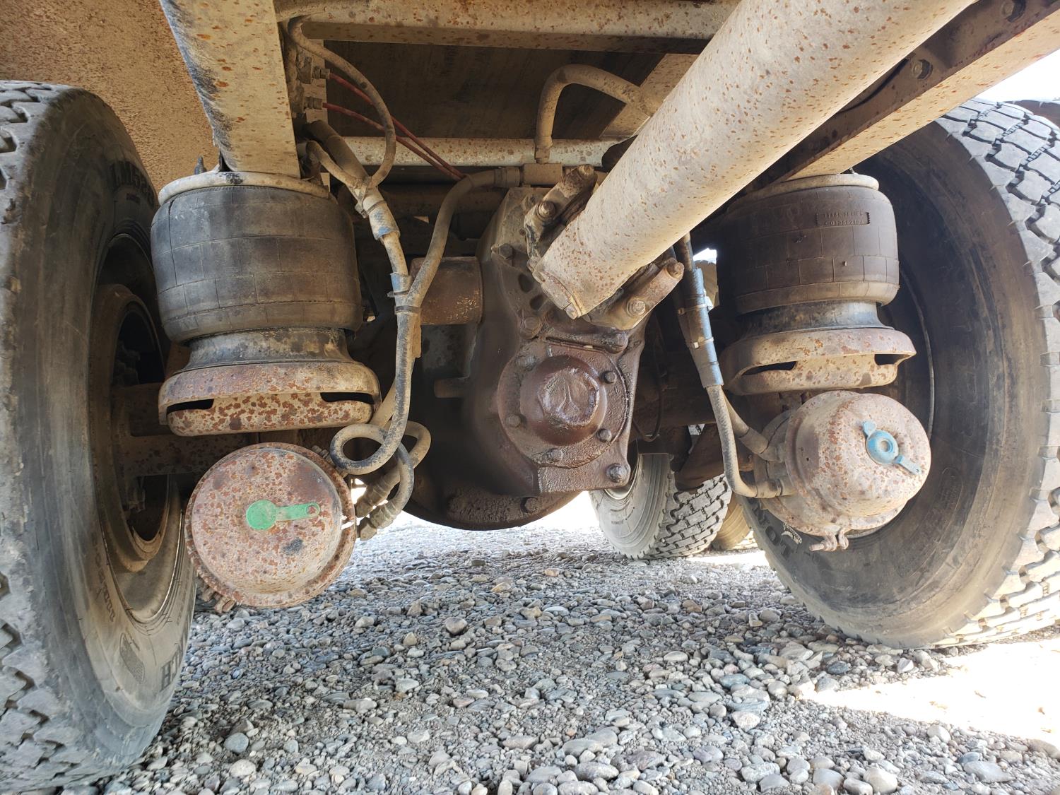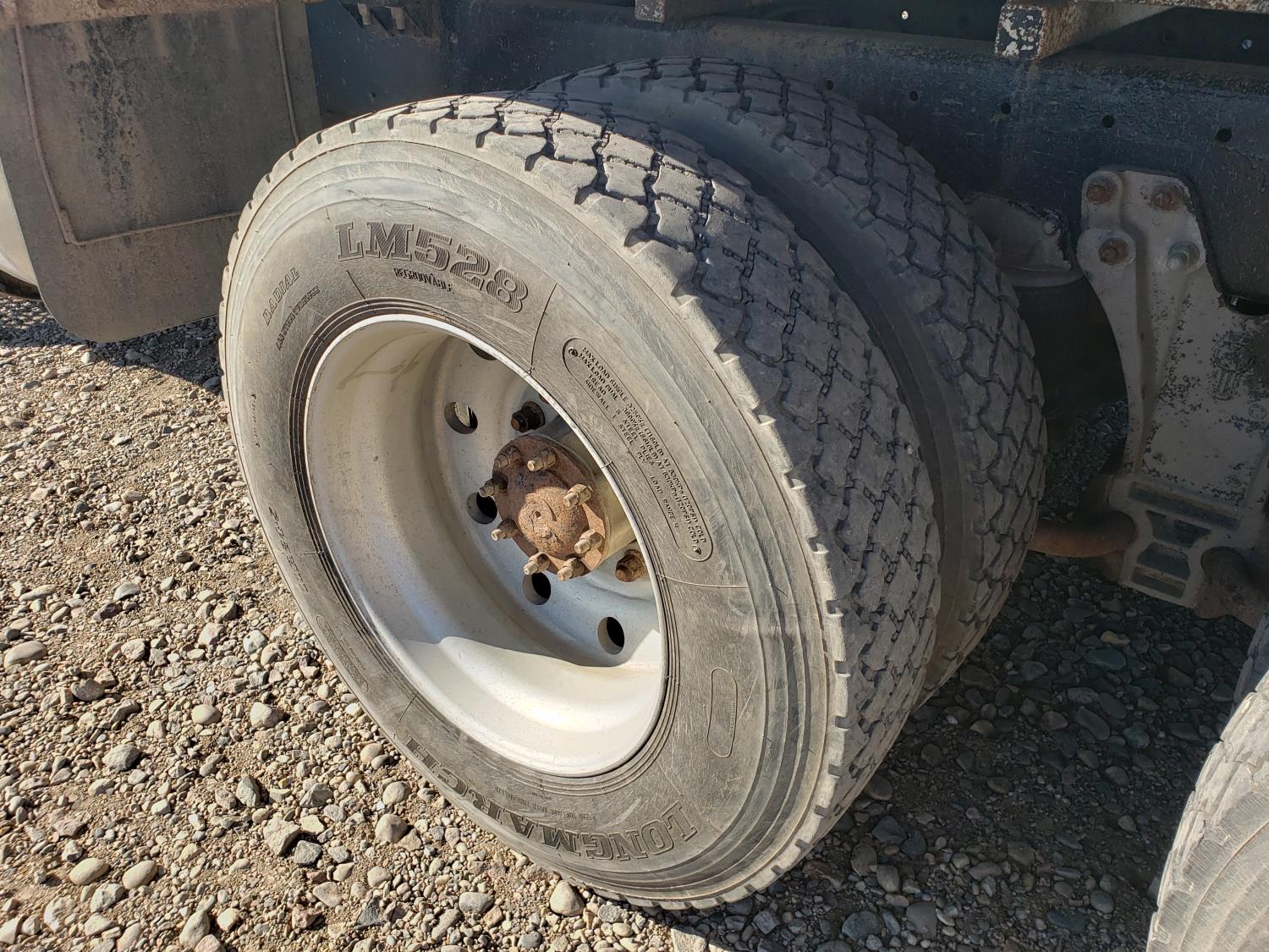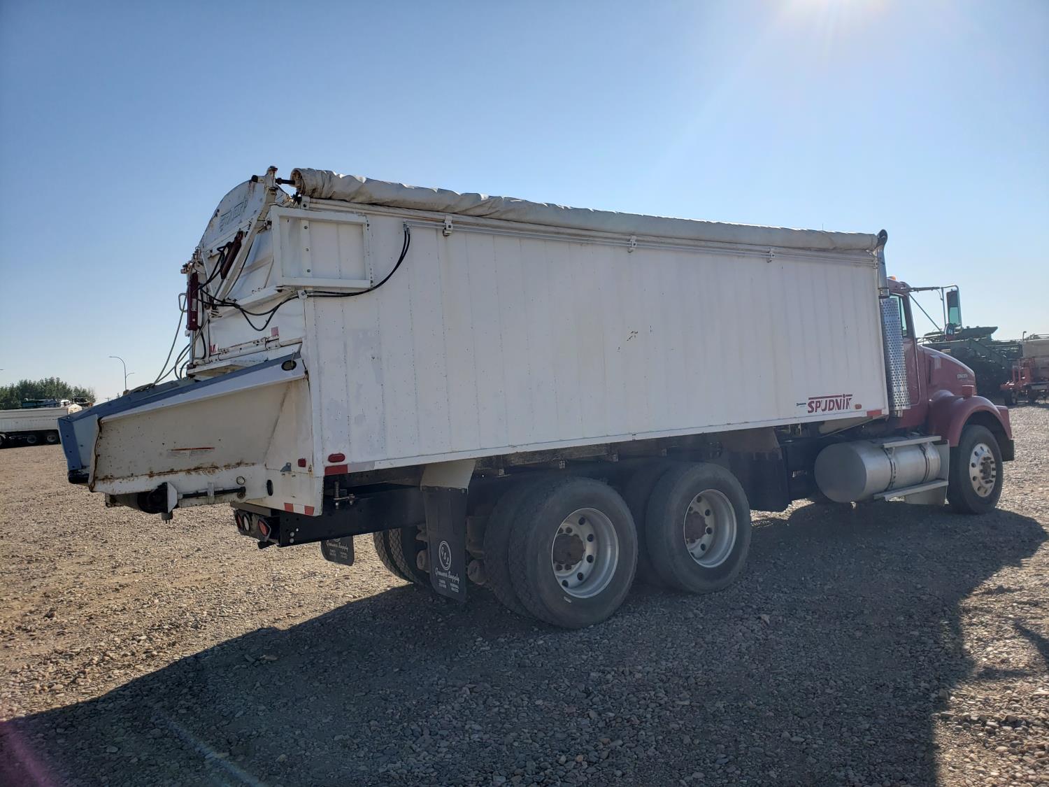Cummins N14 engine, Eaton Fuller 18 speed manual transmission, roll tarp, Spudnik 20 ft live bottom box, 30 inch belt width, 220 inch WB, 8-bag suspension, full lockers, air ride suspension, 11R24.5 tires